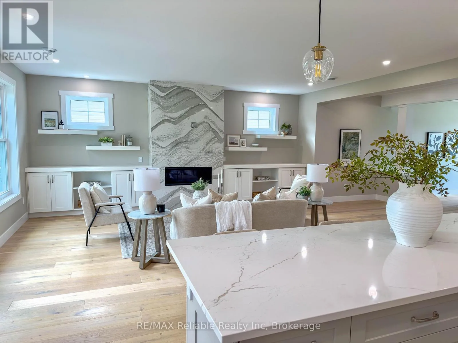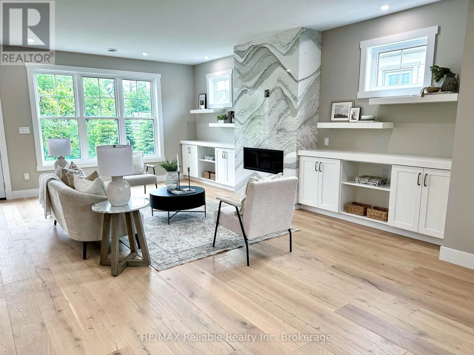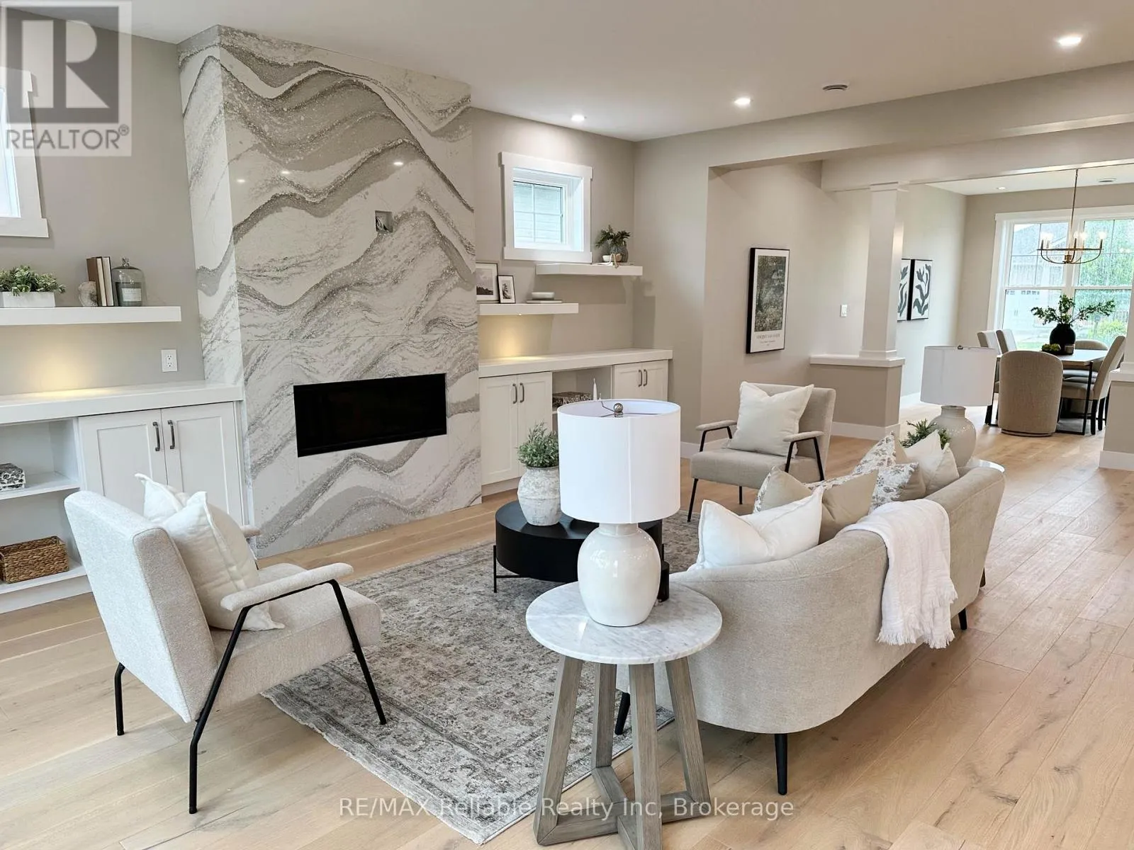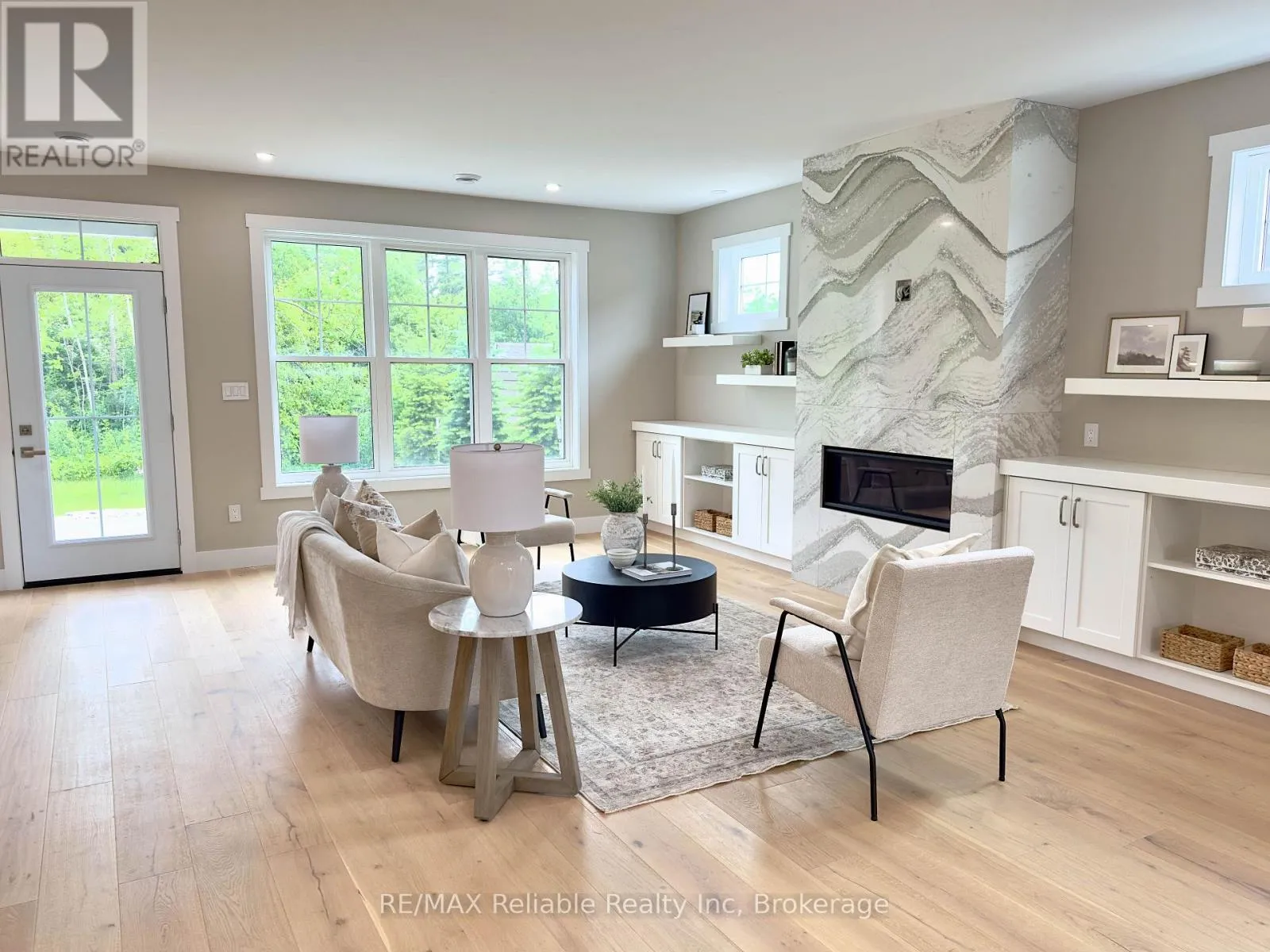 Cross Streets: Thimbleweed and Lidderdale. ** Directions: South on Lidderdale, turn right onto Thimbleweed Dr, lot on left. NEW BUILD IN BAYFIELD MEADOWS!! This stunning 2-storey home, completed in 2023, offers over 2800 sq ft of luxury living just steps from Lake Huron. Thoughtfully designed with high-end finishes and exceptional craftsmanship throughout. The open-concept main floor features 9' ceilings, a spectacular custom kitchen with large island, quartz countertops, and a spacious great room with quartz-surround gas fireplace. Separate formal dining room perfect for entertaining. The main-floor primary bedroom includes a spa-like ensuite and generous walk-in closet. Upstairs offers another fabulous secondary family room with gas fireplace, two additional large bedrooms, and a 3-piece bath ideal for family or guests. Enjoy efficient in-floor heating, natural gas furnace, and A/C for year-round comfort. The exterior boasts a mix of wood and stone, concrete driveway, covered front porch, and rear patio perfect for outdoor enjoyment. Double garage provides plenty of space for vehicles and storage. Located just a block from the beach in a quiet, upscale neighbourhood surrounded by quality homes built by the same developer. A short walk takes you to Bayfield's historic Main Street, filled with shops, dining, and lakeside charm. Whether you're looking for a full-time residence, family getaway, or the perfect place to retire, this home delivers lifestyle, location, and luxury. Includes Tarion warranty. Don't miss your chance to own in one of Lake Hurons most desirable communities! EXCELLENT VALUE!! (id:27476)