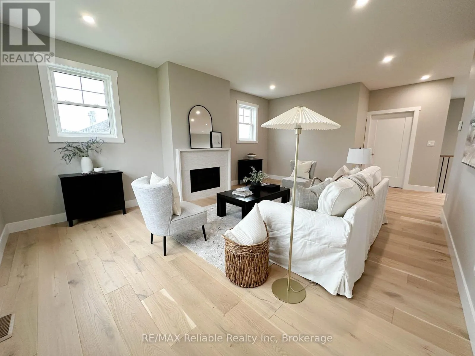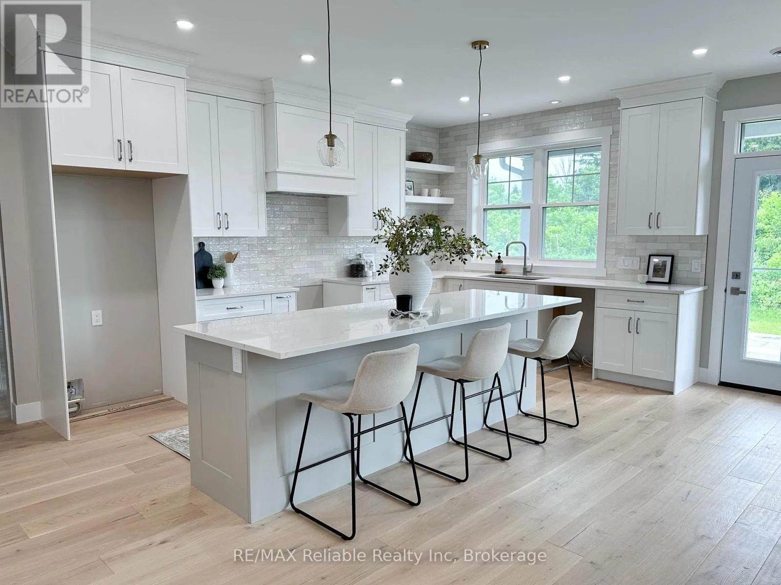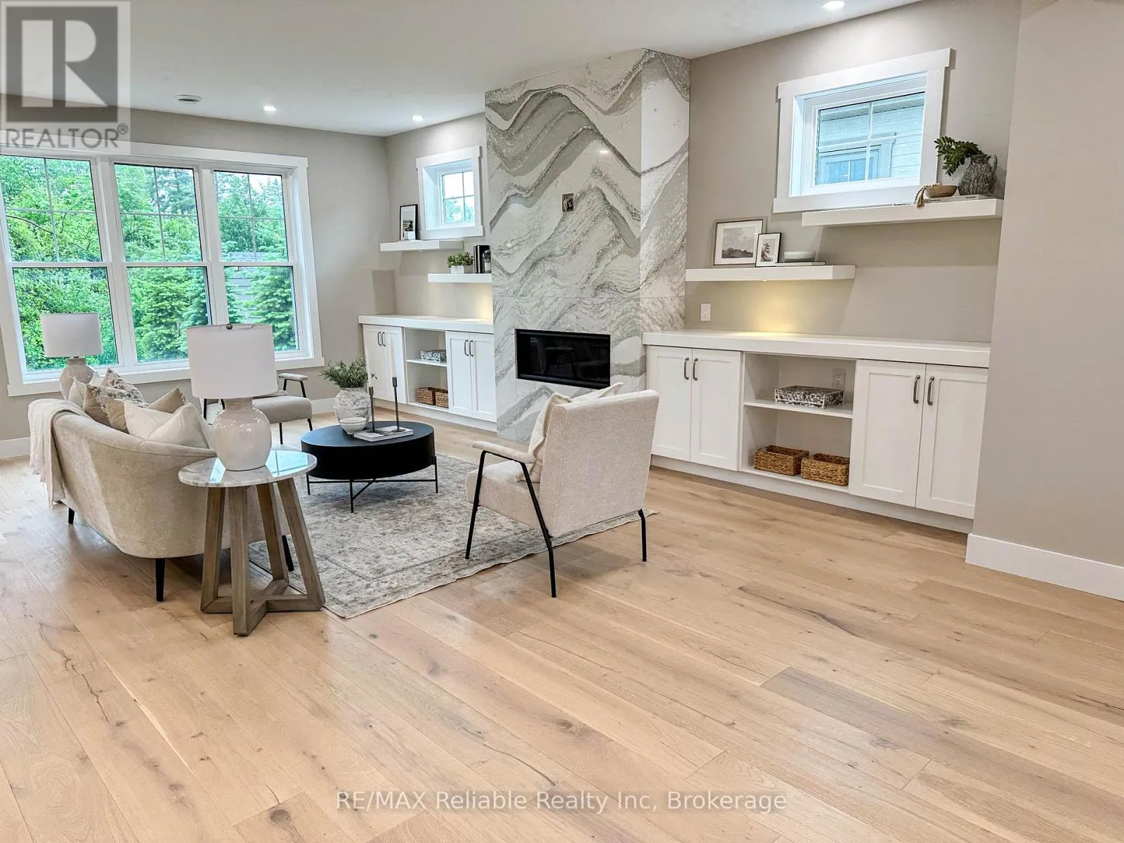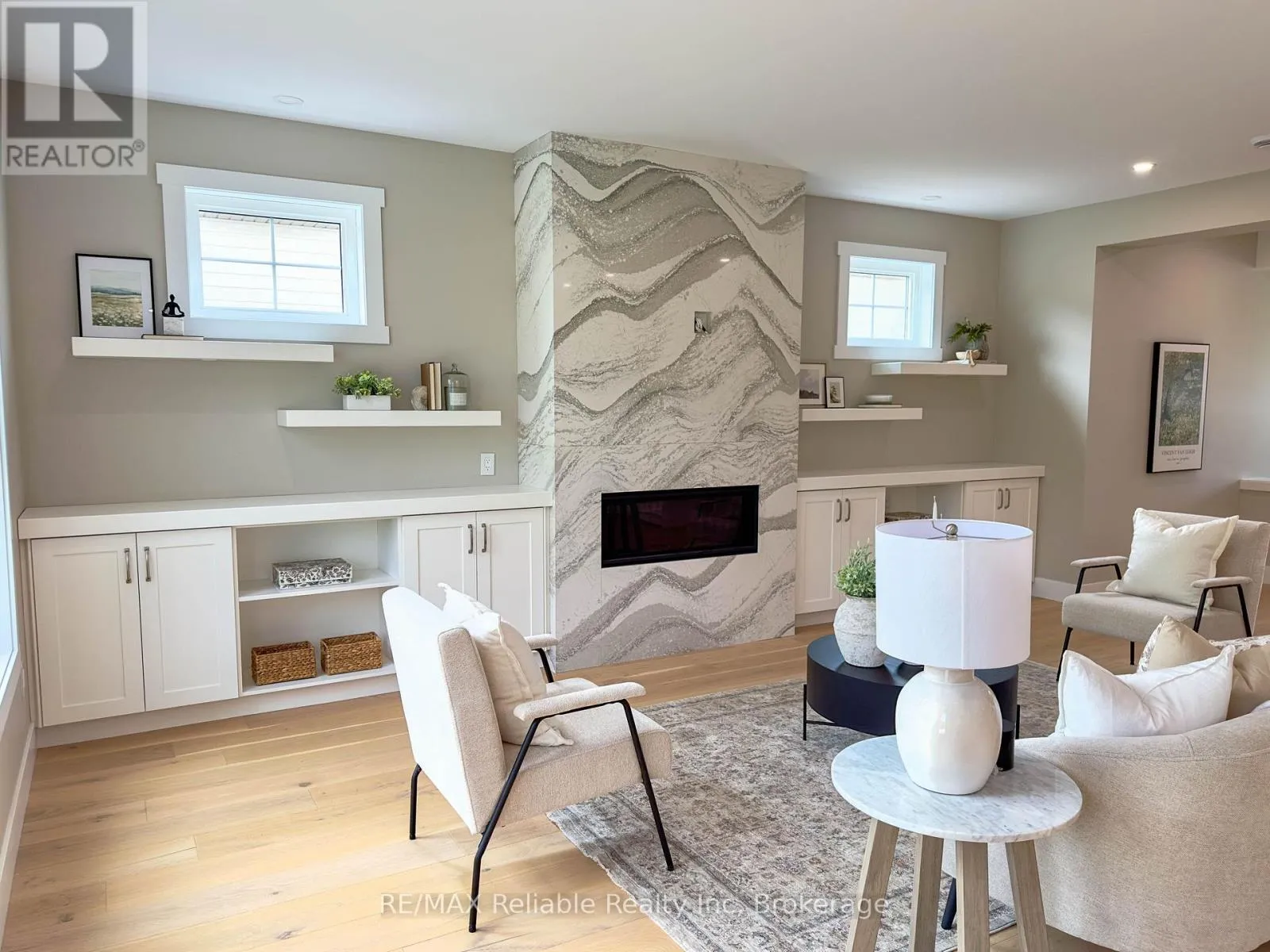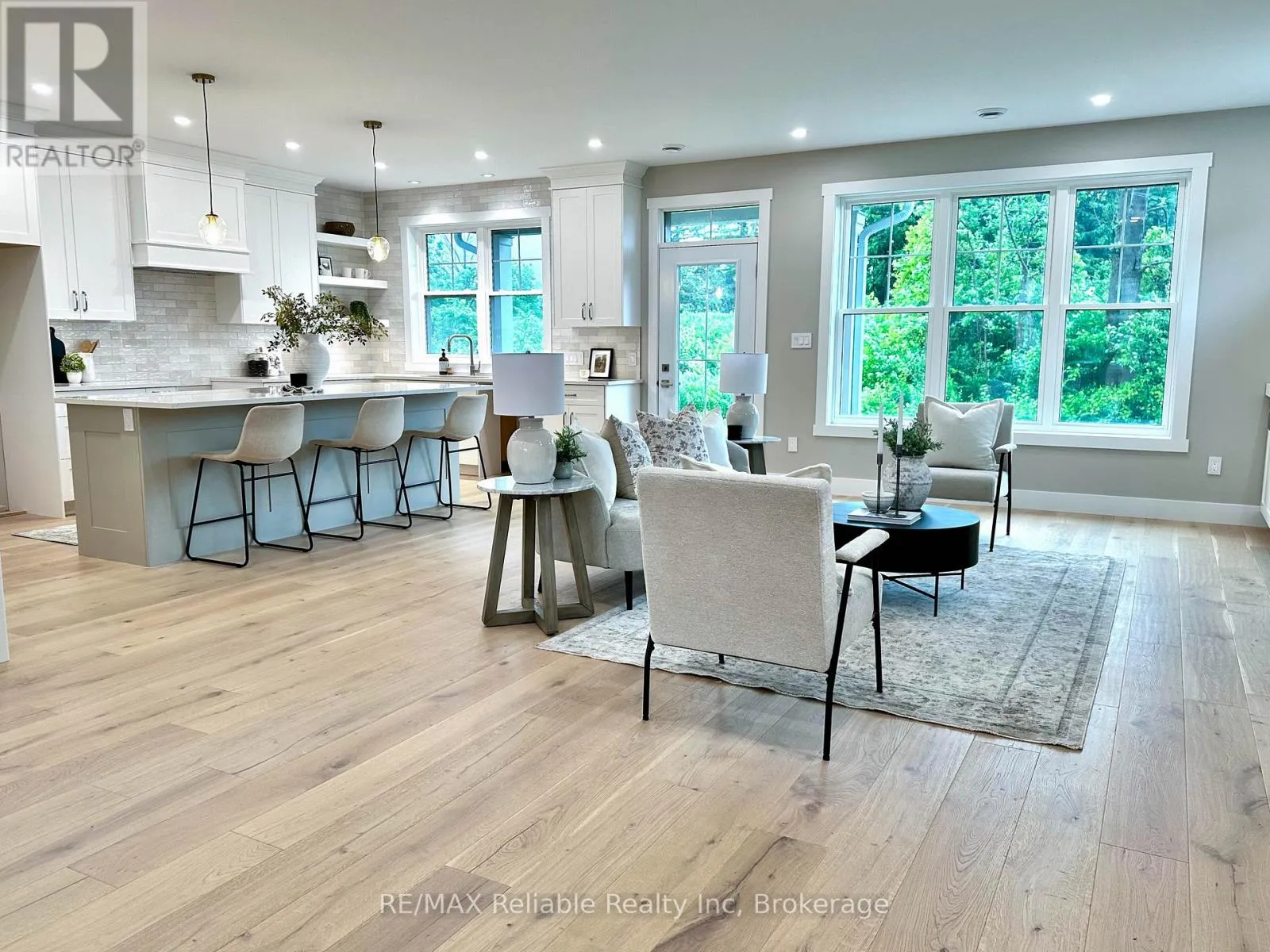 Cross Streets: Thimbleweed and Lidderdale. ** Directions: South on Lidderdale, turn right onto Thimbleweed Dr, lot on left. NEW BUILD IN BAYFIELD MEADOWS!! This stunning 2-storey home, completed in 2023, offers over 2800 sq ft of luxury living just steps from Lake Huron. Thoughtfully designed with high-end finishes and exceptional craftsmanship throughout. The open-concept main floor features 9' ceilings, a spectacular custom kitchen with large island, quartz countertops, and a spacious great room with quartz-surround gas fireplace. Separate formal dining room perfect for entertaining. The main-floor primary bedroom includes a spa-like ensuite and generous walk-in closet. Upstairs offers another fabulous secondary family room with gas fireplace, two additional large bedrooms, and a 3-piece bath ideal for family or guests. Enjoy efficient in-floor heating, natural gas furnace, and A/C for year-round comfort. The exterior boasts a mix of wood and stone, concrete driveway, covered front porch, and rear patio perfect for outdoor enjoyment. Double garage provides plenty of space for vehicles and storage. Located just a block from the beach in a quiet, upscale neighbourhood surrounded by quality homes built by the same developer. A short walk takes you to Bayfield's historic Main Street, filled with shops, dining, and lakeside charm. Whether you're looking for a full-time residence, family getaway, or the perfect place to retire, this home delivers lifestyle, location, and luxury. Includes Tarion warranty. Don't miss your chance to own in one of Lake Hurons most desirable communities! EXCELLENT VALUE!! (id:27476)