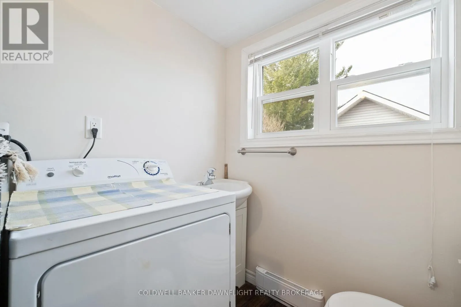 Cross Streets: Bismark Street & South Street. ** Directions: To reach 18 Bismark St, Zurich, take Highway 21 (Bluewater Highway) to the main intersection in Zurich. Turn onto Goshen St, N. (heading east), then turn left (north) onto Bismark St. The address is located north of the downtown area. This well-maintained home has been thoughtfully updated and offers a functional layout suited for comfortable everyday living. Approximately 8-10 years ago, the property was fully gutted and rebuilt with 2x6 construction, featuring updated wiring, plumbing, and insulation, all completed to code. Additional improvements include newer windows installed within the past decade.The main floor features a bright eat-in kitchen with patio doors leading to a wraparound deck-ideal for outdoor dining and entertaining. A convenient main floor laundry area is located just off the kitchen and includes a 2-piece bathroom, while a separate 3-piece bathroom adds further functionality. The living room is situated at the front of the home, along with a main floor bedroom. Upstairs, a loft-style second bedroom offers a cozy and flexible living space.Set on a generous lot measuring approximately 66 by 166 feet, the property is partially fenced and provides ample outdoor space. A paved laneway leads to a large detached double car garage/shop, built approximately 7 years ago, featuring a poured concrete floor, hydro, and an upper-level storage area. The home is serviced by a 200 amp breaker panel, with a separate 60 amp panel in the shop. With solid updates, practical features, and a spacious lot, this property presents a great opportunity for a variety of buyers. (id:27476)