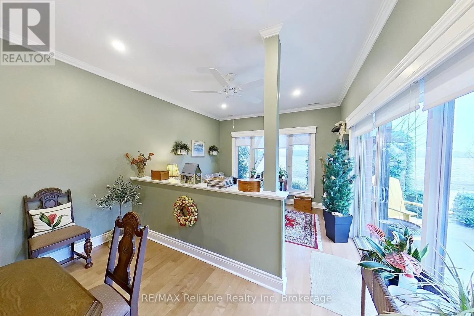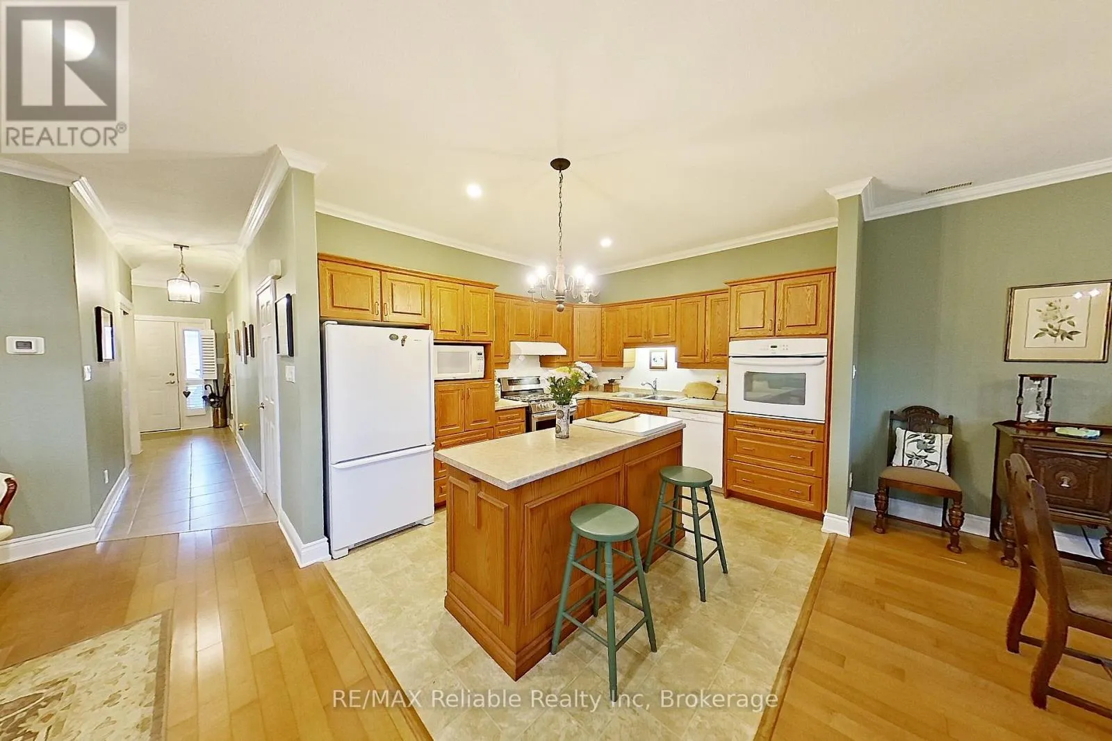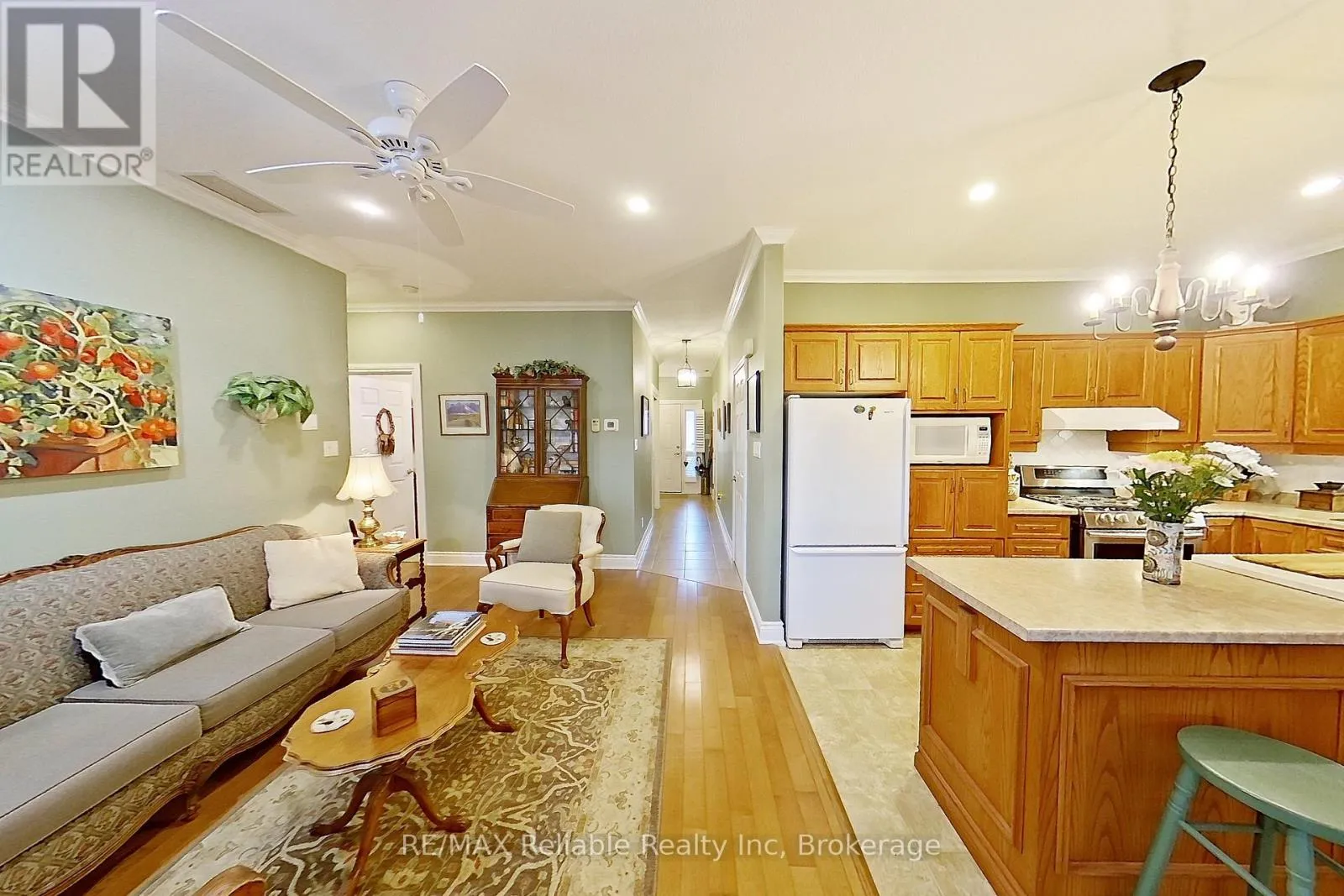Cross Streets: Paul Bunyan Road. ** Directions: From Bayfield, head south on HWY 21. Turn right onto Paul Bunyan Road. Turn left onto bayfield mews lane. Follow to #24. Discover one of the most affordable retirement options in this beautiful, lakeside village. This spacious 2-bedroom, 2-bathroom home offers 1,355 sq. ft. of comfortable, low-maintenance living within a sought-after 55+ adult lifestyle community, set on 14 beautifully maintained acres. Step inside to an inviting open-concept layout featuring 9' ceilings, hardwood and tile flooring, and a convenient level entry with no steps. The thoughtfully designed kitchen showcases maple cabinetry, and a large island. Relax in the cozy den with an electric fireplace and terrace doors leading to a private patio overlooking peaceful farmland. The welcoming living room features a gas fireplace, creating a warm and inviting atmosphere year-round. The primary bedroom includes a walk-in closet and a 3-piece ensuite, while the second bedroom, currently used as a den, offers flexibility to suit your needs. Additional highlights include hydronic in-floor heating, central air, central vacuum, premium window coverings, and a newly renovated 4-piece bathroom. Enjoy the convenience of municipal water and sewer, along with an attached garage and concrete driveway. Built in 2009, this home is part of The Bayfield Mews community, completed in 2020, which features a newly built activity centre, scenic walking trails through a 6-acre woodlot, and is just a short stroll to the beach and charming downtown filled with shops and restaurants. An exceptional opportunity to embrace easy living and truly enjoy a relaxed, "slow-down" lifestyle. Occupancy Fee is $630/month. Approximate monthly costs = Hydro $78, Gas $125, water $110, Property Taxes $217. TOTAL MONTHLY COSTS = $1160.00. Occupancy Fee includes Snow removal, landscape maintenance, building insurance, long term maintenance fee, walking trails & Activity Centre. (id:27476)