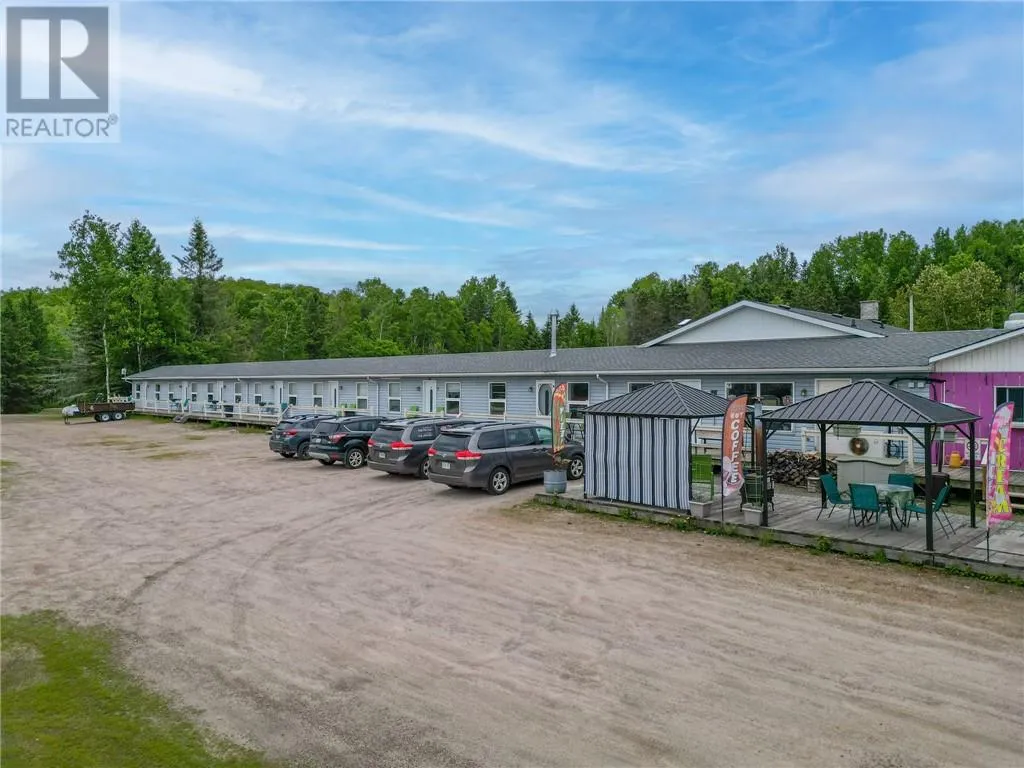 Exceptional opportunity to own a well-established, turnkey business situated on approximately 3.5 acres of well-maintained, usable land in a high-traffic Northern Ontario location. This long-time family-operated property currently features seven motel rooms (one converted into a bakery, easily reverted), each equipped with two queen beds, mini-fridge, microwave, coffee maker, air conditioning, and private washroom. The main building includes a restaurant with two commercial kitchens, a full apartment above, and a partially finished basement offering additional storage or recreational space. Outdoor highlights include ample parking, two pickup windows, an ice cream station, and both indoor and outdoor seasonal seating areas. Surrounded by lakes, snowmobile, ATV, and hiking trails, this property draws year-round visitors and offers excellent potential for expansion or diversified business use. A rare chance to invest, live, and work in the heart of beautiful Northern Ontario. There is an extra 2.5 Acres abutting the property available on purchase. (id:27476)