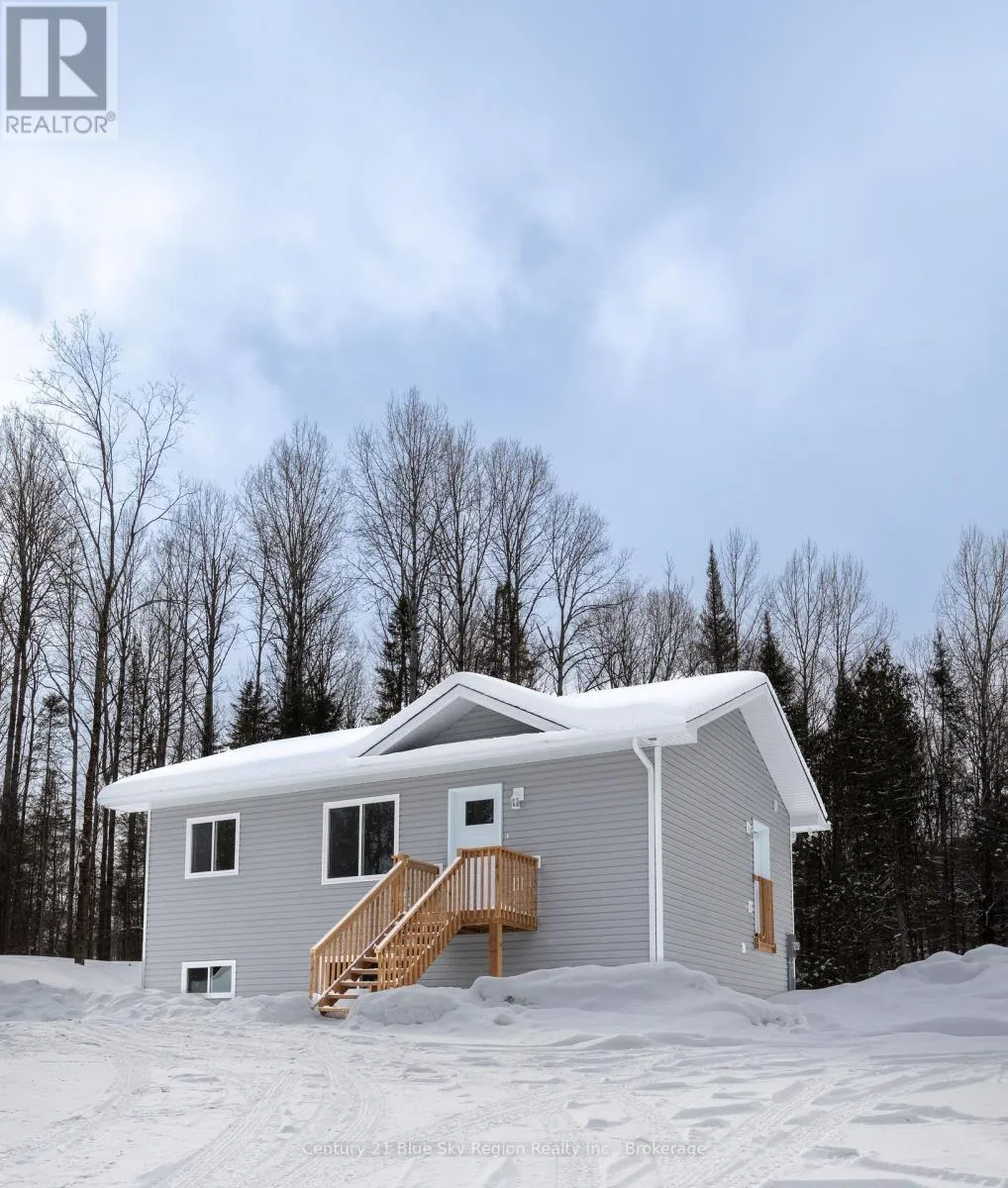 Cross Streets: MAPLE/RIVERSIDE. ** Directions: MAPLE TO RIVERSIDE. Welcome to this well-located and affordable newly built starter home by Degagne Carpentry with a full Tarion Warranty! This 2-bedroom, 1-bathroom home is situated on a nice 1/2 acre country lot surrounded by forest and is walking distance to Lake Nosbonsing and the area park. Featuring a fully finished upstairs with a bright and open concept living area with a large living room and kitchen/dining area, 2 main floor bedrooms, and 4pc bath. The lower level is unfinished with plenty of room to customize over time to one's liking with a large rec-room area, potential 3rd bedroom, or office space. Roughed in for a 2nd bathroom and mechanical/laundry room. Economical heat pump with forced air and cooling throughout. The exterior offers plenty of room for parking. Located close to public boat launch, area ATV & Snowmobile trails, French elementary school and only 20 minutes to North Bay. If you are looking for peace of mind knowing that you will not have to replace your shingles, windows, septic etc. for years to come, then this is a home to consider. Come see for yourself! (id:27476)