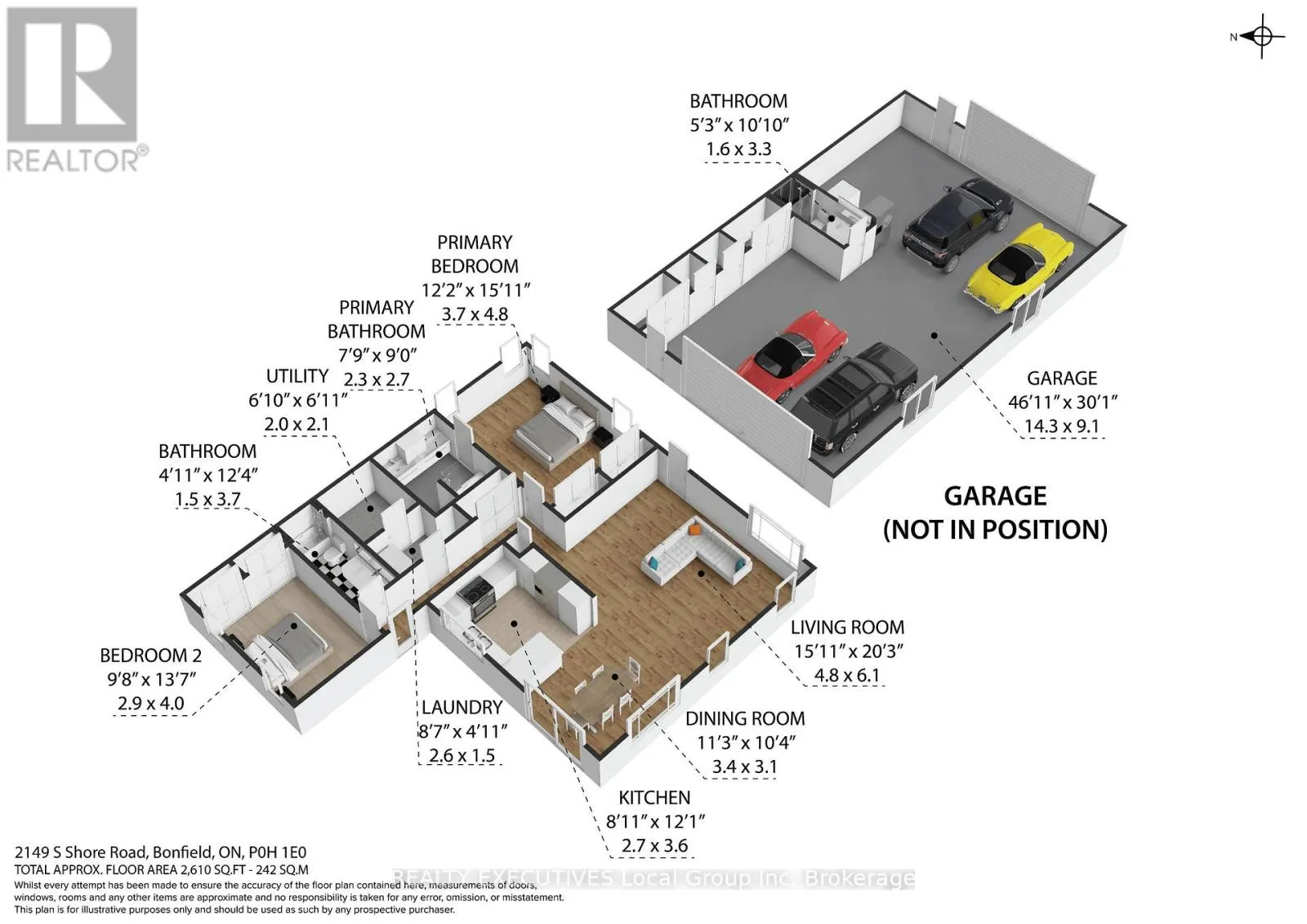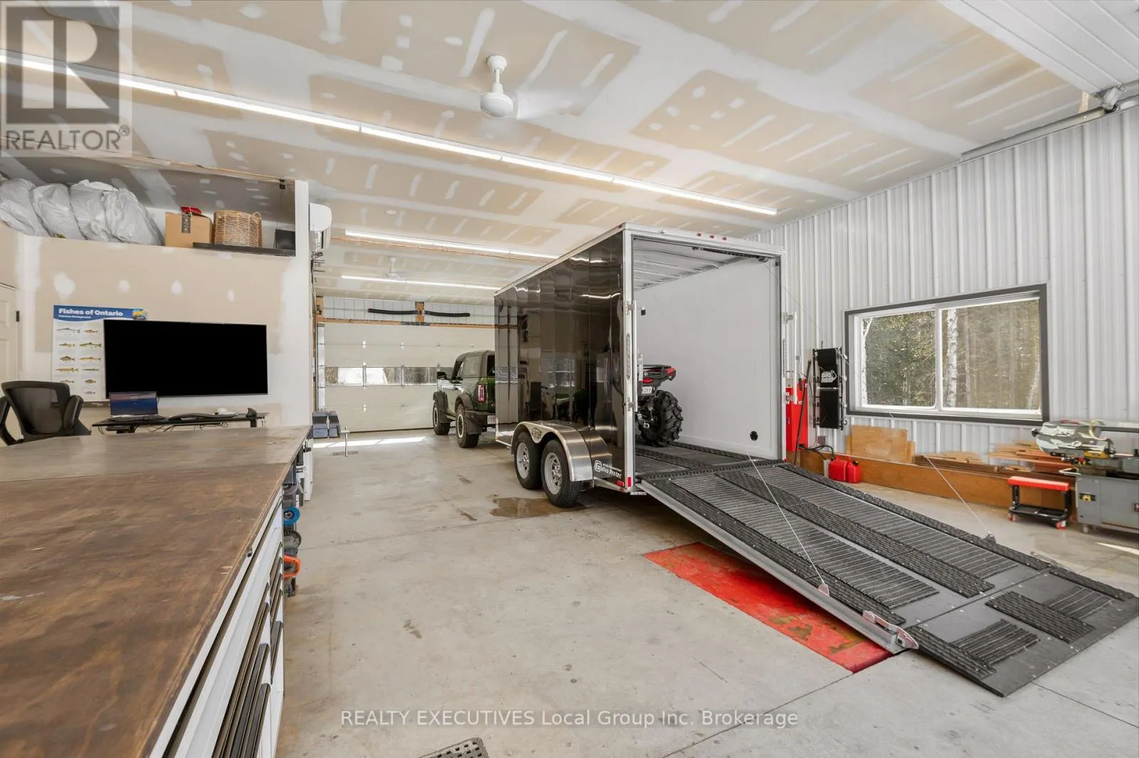 Cross Streets: Development Rd. ** Directions: Hwy 17 to Bonfield, Right on Hwy 531, Left on Trunk Rd, Right on Yonge St, Right on Development Rd, Left on South Shore Rd. Property is on the right. Escape to 6 acres of peaceful countryside at 2149 South Shore Road, where privacy and high-quality construction meet. Built with energy-efficient Insulated Concrete Form construction, in-floor heating, a stone exterior, and steel roof, this home was designed for long-term comfort and durability. Quiet, solid, and surrounded by nature, it's the kind of property that lets you slow down and breathe. Inside, the bright open-concept layout is functional and welcoming. The kitchen features quartz countertops, stainless steel appliances, and easy flow into the dining and living areas. Patio doors overlook your private acreage, extending your living space outdoors. The primary bedroom includes double closets and an ensuite, while the second bedroom offers flexibility as a guest room or home office. A highlight of this property is the versatile 1,600 sq ft garage/shop, ideal for hobbies and professional uses. The 11-foot ceilings and 9-foot overhead doors let you drive your truck and trailer inside. Whether you're a hobbyist, mechanic, contractor, or outdoor enthusiast, the space is ready with a 7,000-lb scissor lift, three-piece bathroom, laundry hookups, and open floor area. A 20kW Cummins standby generator powers both the home and garage for peace of mind year-round. Outdoor recreation is at your doorstep. Over 1 km of private trails wind through the property, and the OFSC snowmobile trail runs across the road, allowing you to ride from your driveway to Lake Nosbonsing. ATVing, hiking, hunting, and nearby Crown land access create an ideal setting for four-season Northern living. Located minutes from the Lake Nosbonsing boat launch and Bonfield amenities, including the general store, LCBO, pharmacy, school, and fuel stop, this property offers privacy without isolation. If you're relocating from Southern Ontario or searching for a rural home with acreage and a serious shop, 2149 South Shore Road delivers space, strength, and lifestyle to match. (id:27476)