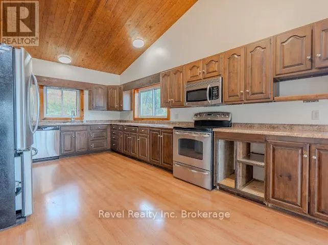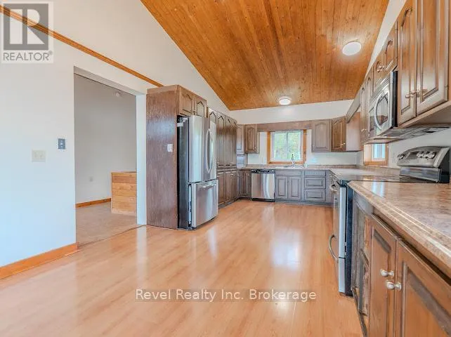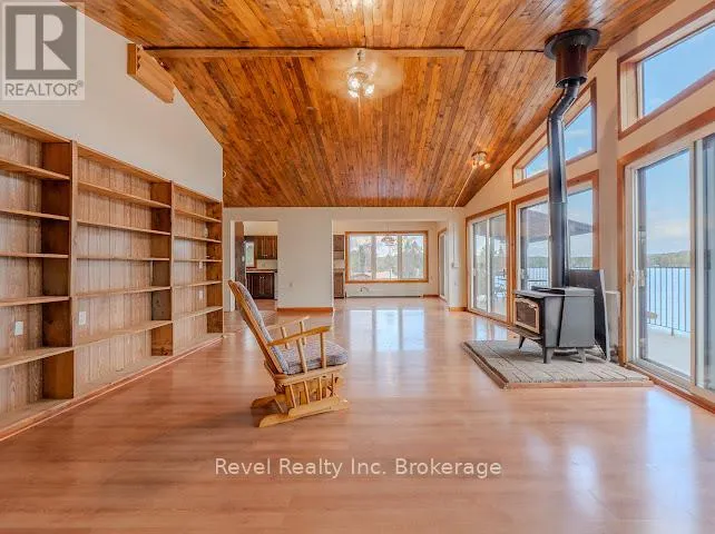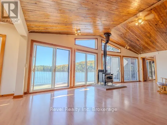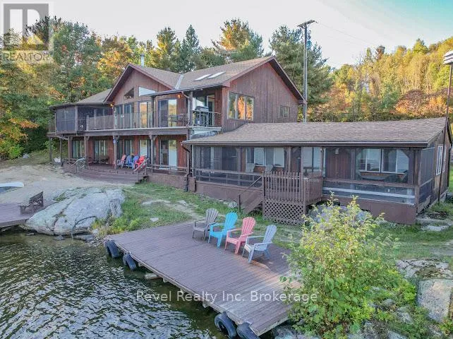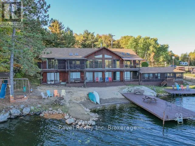 Cross Streets: Mark St. ** Directions: HWY 17 EAST TOWARDS BONFIELD; RIGHT ON HWY 531; RIGHT ON RAILWAY ST; SLIGHT RIGHT ON MARK ST; RIGHT ON SUNNYSIDE ROAD TO PROPERTY #280. Welcome to 280 Sunnyside Drive, a stunning lakeside retreat nestled on the shores of beautiful Lake Nosbonsing in Bonfield. This exceptional 6 Bed & 5 Bath property ( with the option of 3 separate living spaces/kitchens) offers the perfect blend of year-round comfort and seasonal charm, featuring a spacious walk-out bungalow and a beautifully finished, winterized one-bedroom guest cottage. Designed to embrace natural light, the main home showcases Viceroy-style windows, vaulted ceilings, warm wood accents, and a cozy wood-burning stove. The open-concept living and dining area flows seamlessly onto a covered upper deck with a screened-in section ideal for enjoying serene lake views, day or night. Perfect for entertaining, the kitchen offers ample space to host gatherings, while the main floor includes 3 bedrooms and 3 bathrooms. The primary suite features a walk-in closet and four-piece ensuite. The second bedroom enjoys its own private three-piece bath, while the third offers a private balcony. A stylish two-piece main bath includes the laundry area for added convenience. The finished walk-out basement provides flexible living with a rec room, kitchenette, two bedrooms, and a 4 piece bath perfect for guests, extended family, or potential in-law suite. Step outside and enjoy two docks, a sandy beach, a fire pit, and expansive waterfront ideal for year-round recreation from summer swims to cross-country skiing. The attached, winterized guest cottage adds even more value, offering a charming one-bedroom layout with a clawfoot tub, beautiful wood finishes, plenty of natural light, and a private screened-in porch. Additional features include a detached double garage, in-floor oil hot water heating. Shore allowance is owned. Move in and experience the very best of lakefront living every season of the year. (id:27476)