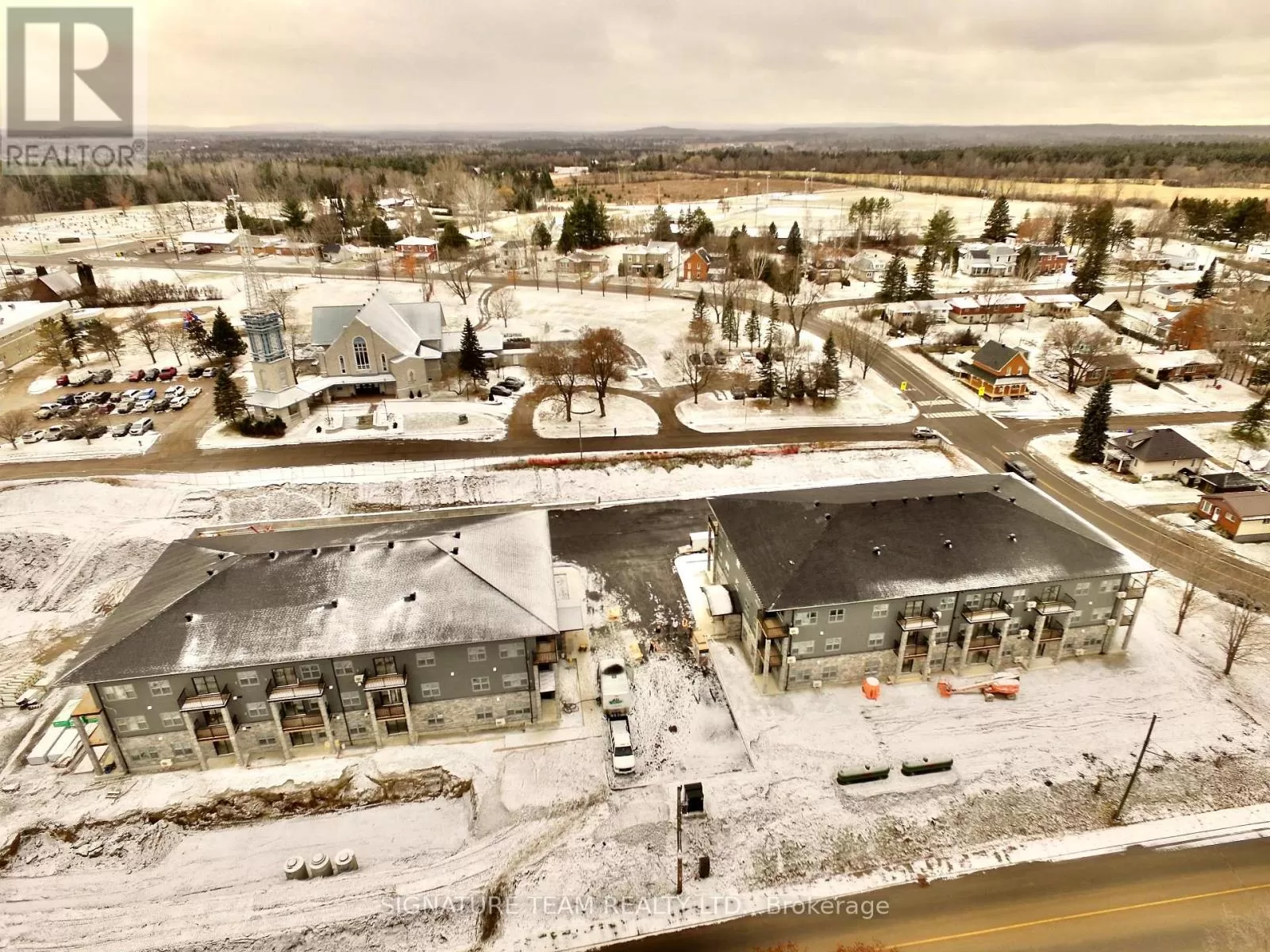 Queen Street and Wellington, Eganville For Rent; A stunning brand new two bedroom two full bath apartment in Eganville, perfect for seniors or professionals seeking a low-maintenance lifestyle. This second floor unit in an elevator serviced, secure building offers a private balcony with lovely views of the valley. The primary bedroom features a walk in closet, wonderful tiled ensuite bath with walk in shower. The modern white kitchen with elegant black trim and subway tiled backsplash is more than you would expect to see in an apartment and the granite counters makes this the talk of the town. All kitchen major appliances are included and each unit has its own laundry hook-up, HRV system, full sized hot water tank and heat pump for your individually controlled A/C. In floor heating that is controlled in each unit is included in your rent as is water, sewer and parking. Hydro and internet/ phone is the tenants responsibility. Eganville is a great family friendly community surrounded by nature! (id:27476)