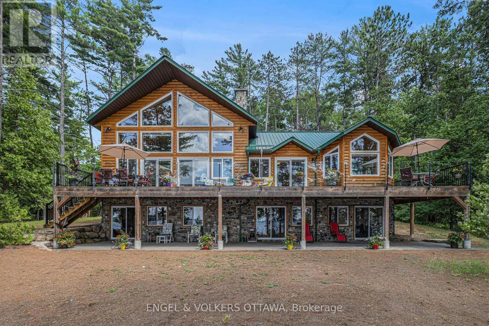 Cross Streets: Hoffman Road & Golden Mile Way. ** Directions: From Ottawa, take 417/17 west to Renfrew, then 60 west to Golden Lake village. Turn left onto Kokomis Inamo/Renfrew County Rd 70 to Hoffman Rd to Golden Mile Way, and turn right onto Golden Lyn Way. Welcome to 631 Golden Lyn Way! This stunning 4-bedroom, 2-bathroom all-season custom-built residence is located right on the waterfront of the beautiful Golden Lake. Meticulously upgraded and well-maintained, this property offers a true cottage feel without compromising on luxury amenities, comfort, and well-thought-out details. Stepping into the home, you will notice the welcoming feel, hardwood flooring, cathedral ceilings, and big windows that flood the space with light. The spacious kitchen offers a convenient breakfast bar, plenty of counter space & cabinets for storage - perfect for hosting & entertaining. The open-concept living & dining area is the true heart of the home, featuring a grand stone fireplace that serves as the main heat source of the residence - the perfect gathering space to enjoy cozy evenings by the fire. A spacious entry, large primary bedroom, guest bedroom, office space & 4-piece bath round out the main level. Upstairs, the loft offers extra space, with views of the lake & forest. On the lower level, you will find a recreation area, 3-piece bathroom w. a free-standing bathtub, two bedrooms, a dedicated laundry room & plenty of space for storage. All bedrooms in the home feature direct access to the outdoors - whether to the patio on the lower level or wraparound porch and deck on the main level - catching the morning sun while sipping your coffee, or views of the sunset in the evening are guaranteed. The property also features two private docks, a waterfront deck, bunkie with wood stove, boathouse, heated outdoor shower, outhouse w. sink & running water, detached oversized heated 1-car garage, and carport. Only a 20-minute drive away from Eganville, and a 45-minute drive to Pembroke, this is the perfect spot for those leading an active lifestyle, seeking privacy & serenity, who also enjoy the convenience of being close to amenities & vibrant town centres. Don't miss out on experiencing this fantastic turn-key opportunity for yourself! (id:27476)
