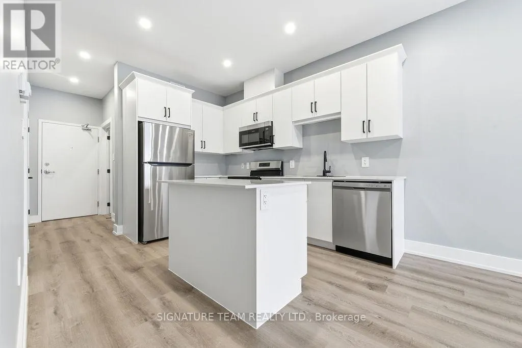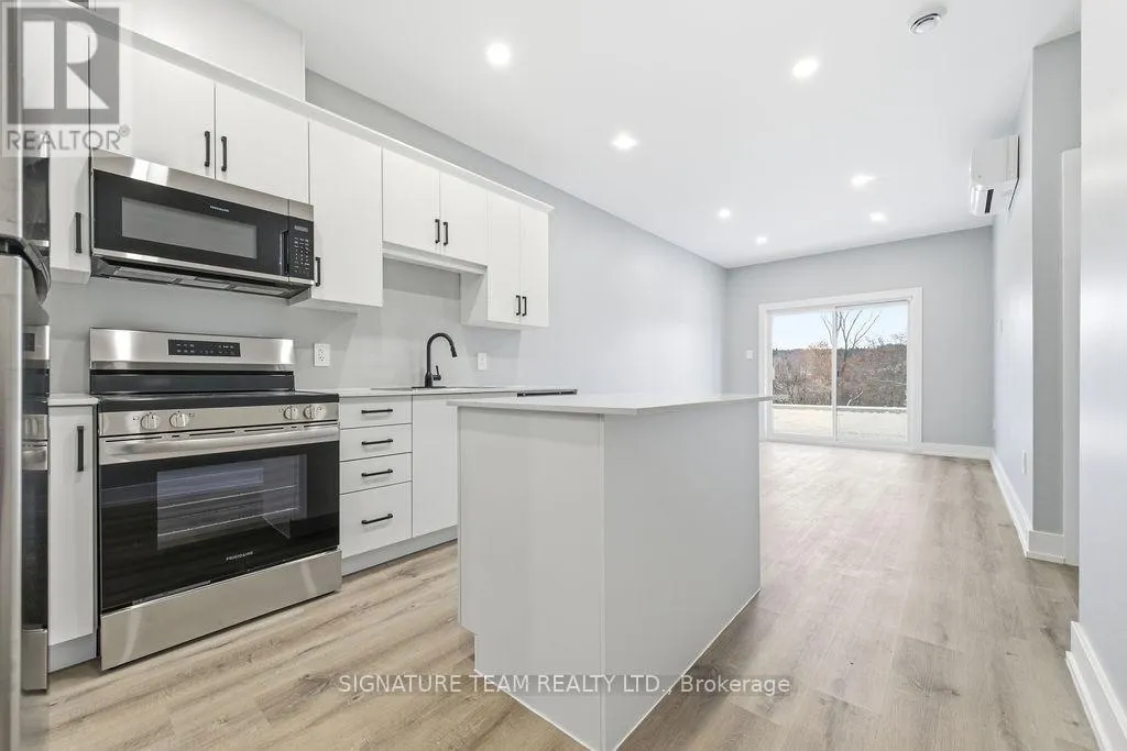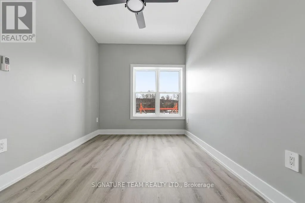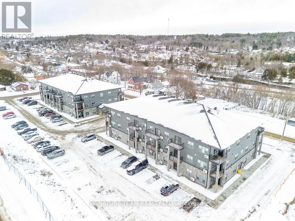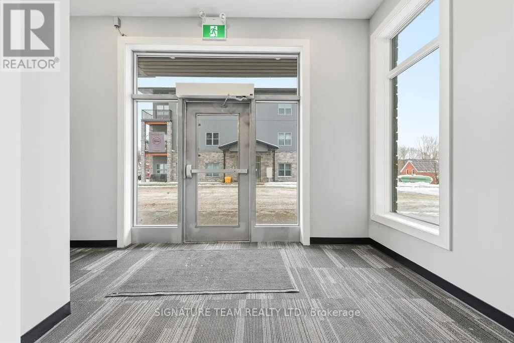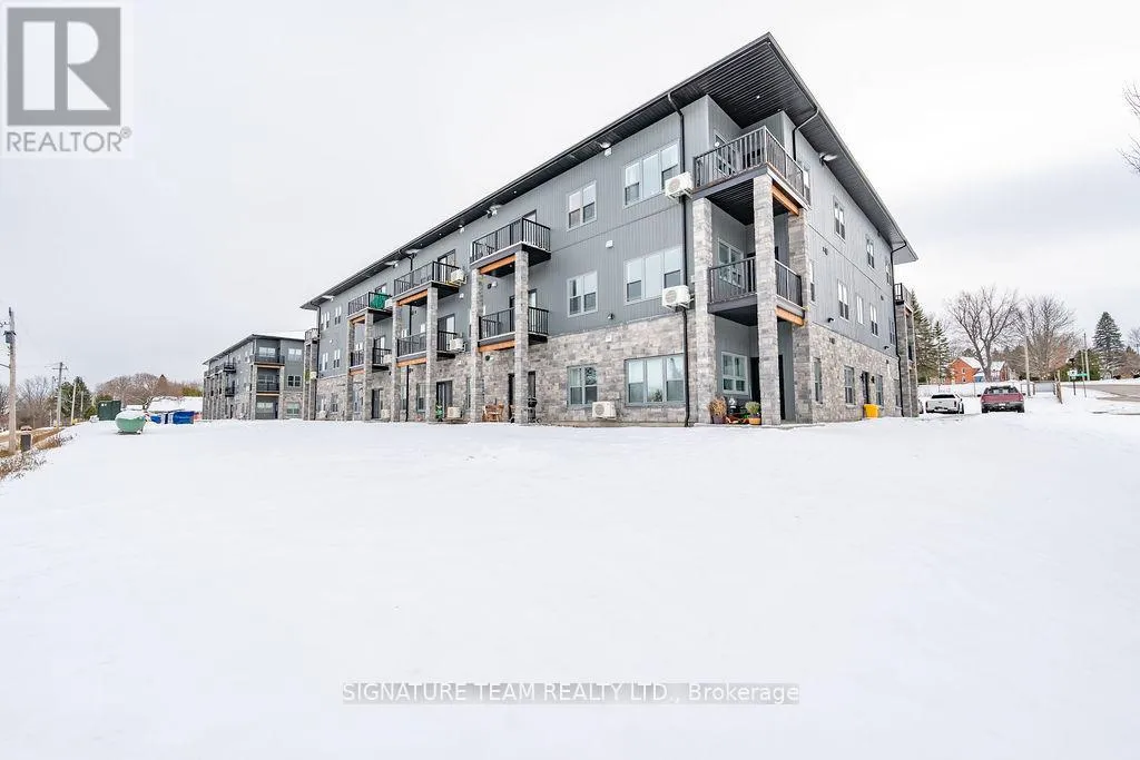 Cross Streets: Queen and Patrick. ** Directions: Through Eganville, cross the bridge and property will be on your left. For Rent; A stunning brand new one bedroom plus den, one full bath apartment in Eganville, perfect for seniors or professionals seeking a low-maintenance lifestyle. This second floor unit in an elevator serviced, secure building offers convenient walk out access to a private deck with lovely views of the valley. The bedroom features a walk in closet. Bathroom is wall to wall tile with walk in shower. The modern white kitchen with elegant black trim and subway tiled backsplash is more than you would expect to see in an apartment and the granite counters makes this the talk of the town. All kitchen major appliances are included and each unit has its own laundry hook-up, HRV system, full sized hot water tank and heat pump for your individually controlled A/C. In floor heating that is controlled in each unit is included in your rent as is water, sewer and parking. Hydro and internet/ phone is the tenants responsibility. Eganville is a great family friendly community surrounded by nature! (id:27476)