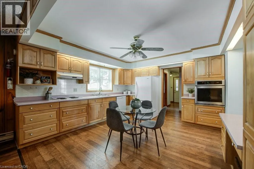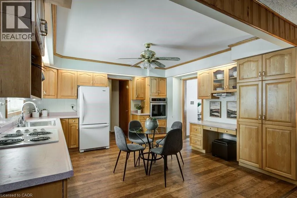 Near Brodhagen Community Centre **OPEN HOUSE SAT. APRIL 11 from 11am-1pm** Looking for a BIG workshop? How about 2? Are you a tradesman, mechanic, landscaper? Need lots of storage for tools, equipment or vehicles? You've gotta see these 2 detached buildings located on this property. The first building measures 32'x80' and has a heated wash bay for 2 vehicles, including compressor & power washer. Plus an additional interior heated garage located inside the big building which hold another 2-4 vehicles. The exterior asphalt parking pad holds 25+cars. The second detached garage measures 35'x18', insulated with electricity. Stores another 2 vehicles. Finally, another double car garage is attached to the main house! This property has not been offered for sale in over 40 years and is now looking for it's new caretaker. This charming bungalow layout has 3 bedrooms, 2 bathrooms and 2941sq ft of finished of living space! Enter the front foyer and find a bright living room/dining room open space with a beautiful bay window looking onto the covered front porch to the front yard. The open concept kitchen has ample maple cupboard space and a built-in desk. The family room has a lovely stone wall with built-in fireplace and sliding doors leading to the sunroom. The octagonal sunroom gives the feeling of cottage life and enjoying the outdoors from the comfort of your home! With sliding glass doors leading onto the back patio, this all season space is perfect for BBQ season, any season! Also found on the main floor are 3 spacious bedrooms and 2 bathrooms, one 3pc and the other a 4pc with double sinks! The laundry room is also conveniently located on the main floor. No carrying laundry to the basement! Head downstairs to the partially finished basement. Perfect for a home gym, craft room or home office. The basement area ready for your own decorating touch! Located in the small community of Brodhagen, this bungalow has the small town feel with easy and convenient access to the larger towns nearby! (id:27476)
