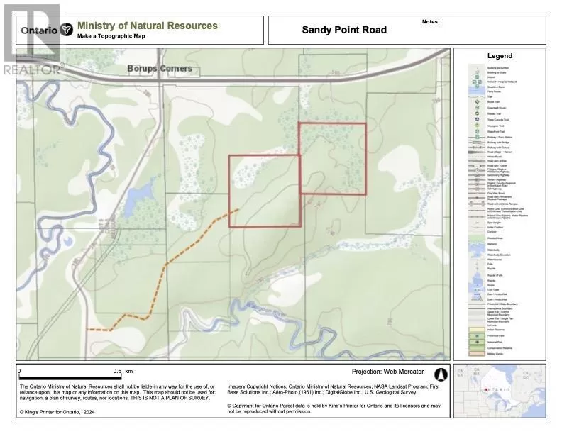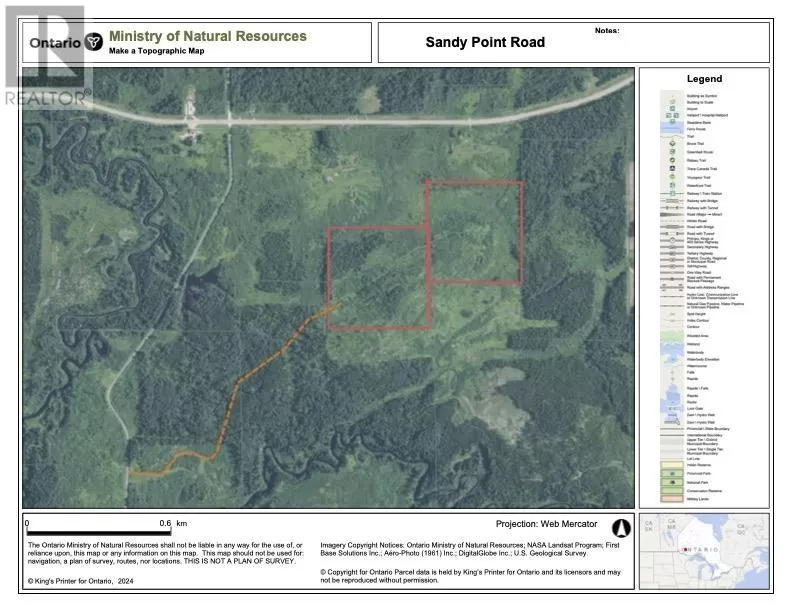 From Dryden follow HWY 17E to Borups Corners turn South onto Sandy Point Road then follow approx 1.2 Km turn East onto slash road follow to flagging tape trail Hereâs a great opportunity a piece of private Unorganized vacant land. These 80 acres is a mixed area with full standing trees with a high ridge running through. Located off Sandy Point Road through a slash onto Crown land then a 4-wheeler trail to the corner of the property. Located in Wildlife Management Unit 9A. Great hunting area for moose, deer, bear and birds. (id:27476)