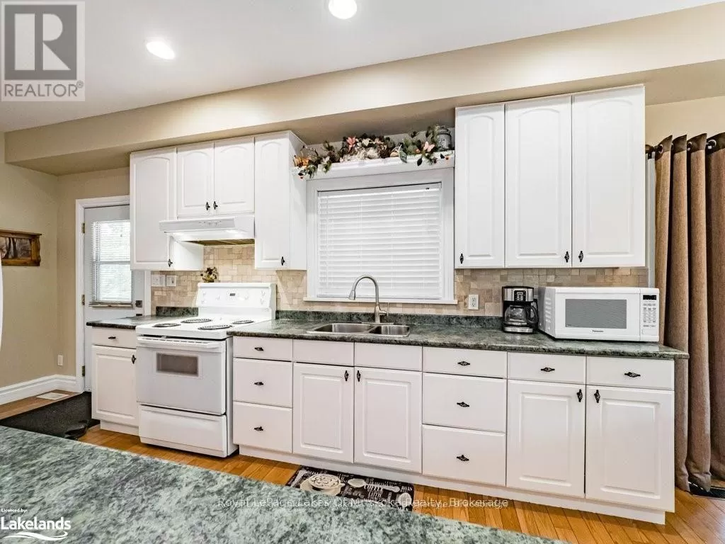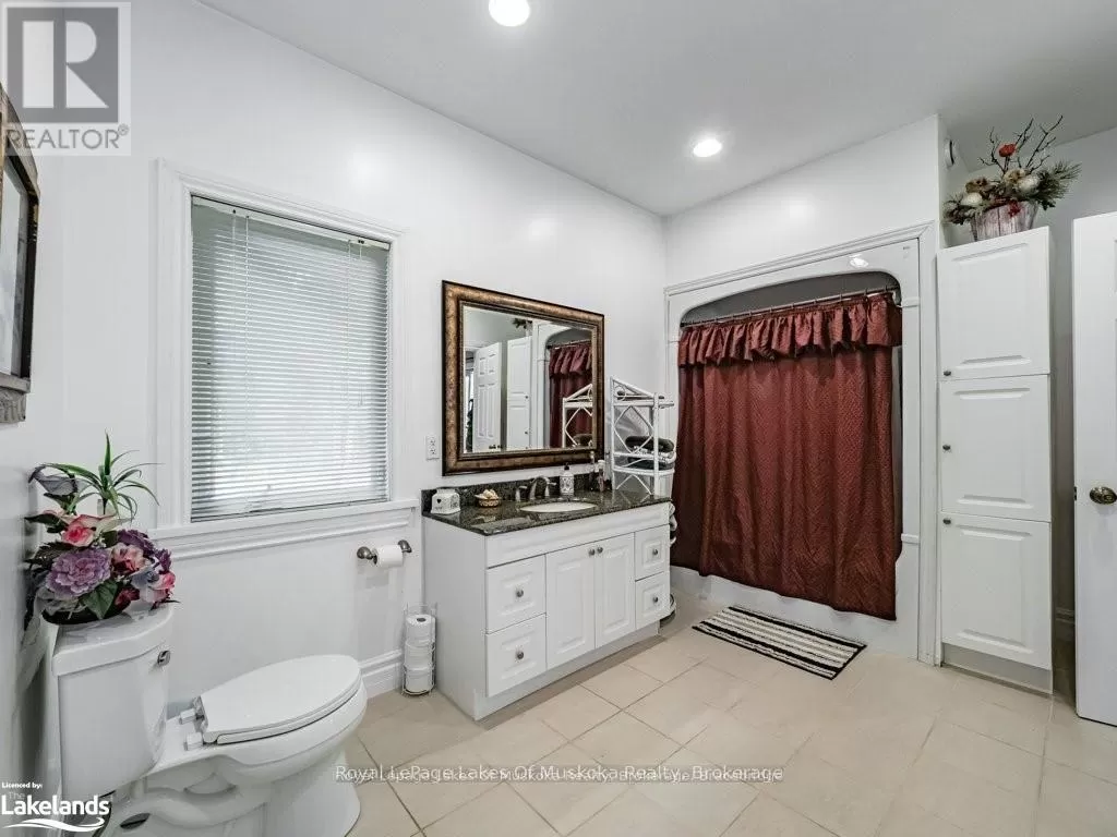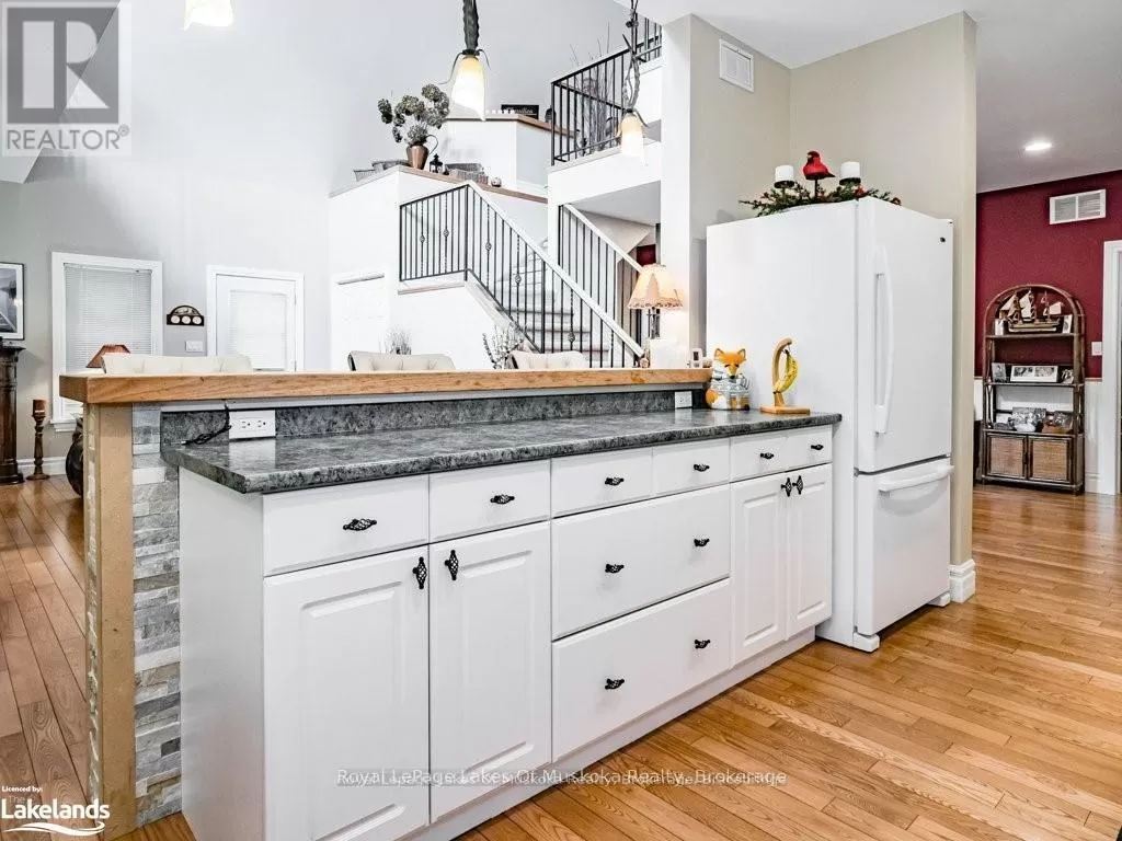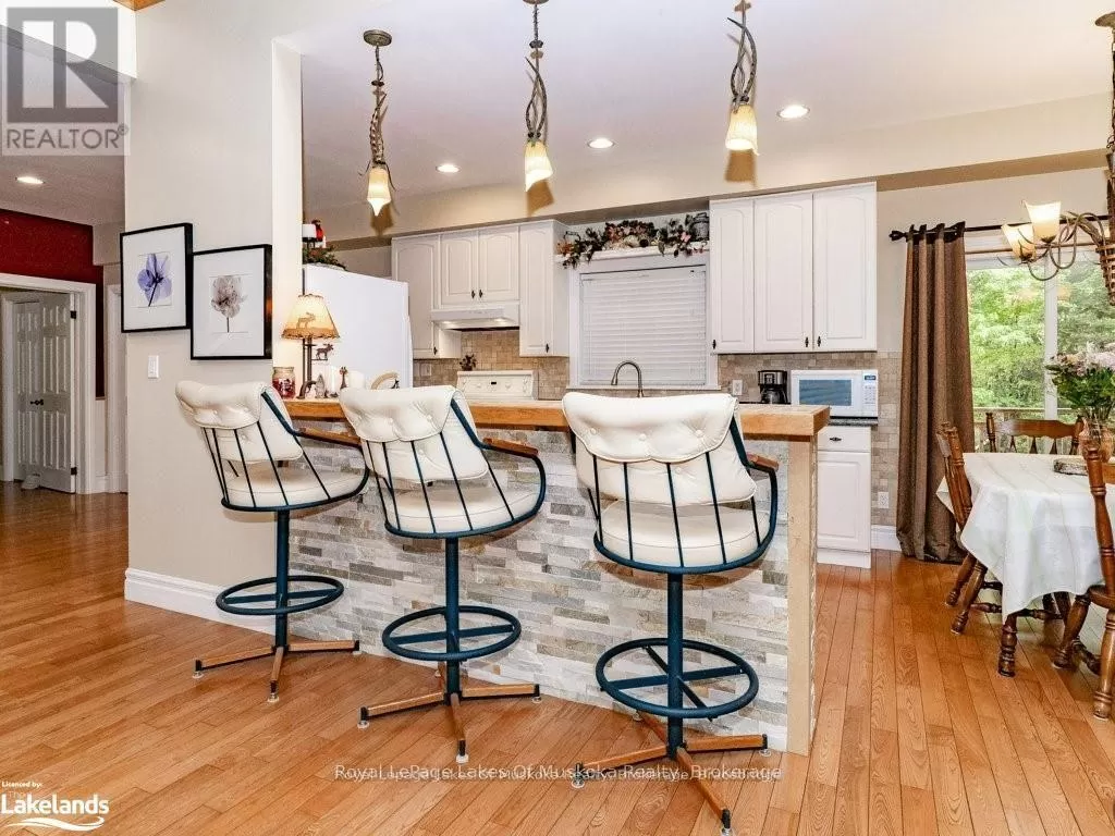 Cross Streets: Hwy. 118E & Prospect Lk. Rd. ** Directions: HWY. 118 E To SOP. Offering a stunning custom-built home nestled on a private 2-acre country lot with a lovely view over a pond where the birds and wildlife like to visit. This home is large enough to share with an extended family or to host your overnight guests when they come to visit Muskoka. Enjoy the summer breeze as you relax on the huge wrap around veranda leading to a large, covered deck for dining and BBQ's. Upon entry, the home features an open concept floor plan with soaring cathedral ceilings. The primary bedroom is on the main floor with patio doors overlooking the backyard and pond leading to the back deck. There is a large main floor 4 pc. bathroom and a convenient laundry room. Upstairs is the loft with a wet bar and patio doors leading to two large balconies with beautiful views of the forest. Two additional bedrooms are also on the second level along with a 4 pc. bathroom. Gleaming red ash floors grace the principal rooms and upper level. Great potential for a 1400 sq. ft. family accomodations in the lower level, all with above grade windows to two walkouts to the backyard. A finished fourth bedroom and third 4 pc. bathroom along with an ample rec room and family room which could be finished off as a eat-in kitchen. The kitchen cabinets are not mounted but are included in the sale. There is a cute bunkie next to the house which could be used as a workshop studio or extra accommodations. All of this is only a short drive to town or a five-minute drive from the public beach on Prosect Lake where you can go for a quick dip or to launch the watercraft to go fishing. Enjoy the country lifestyle while working, living and playing in beautiful Muskoka! ** This is a linked property.** (id:27476)