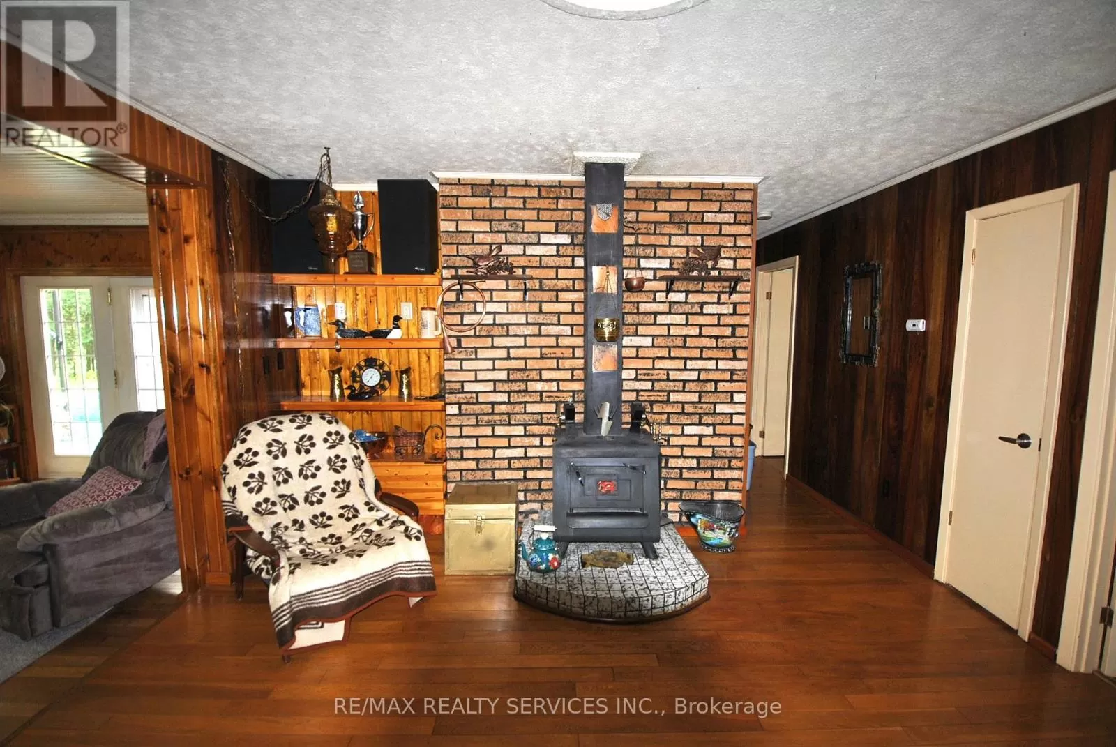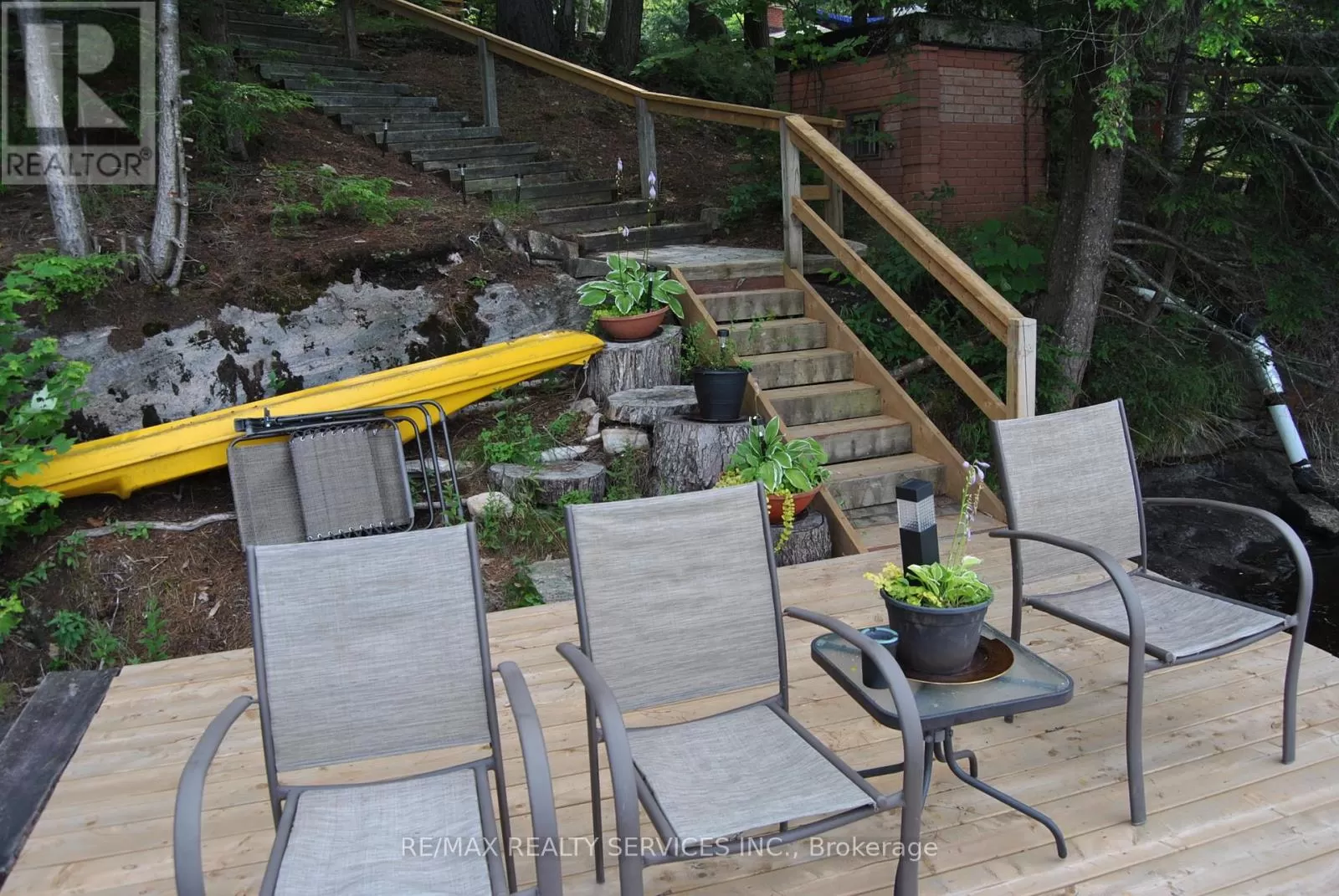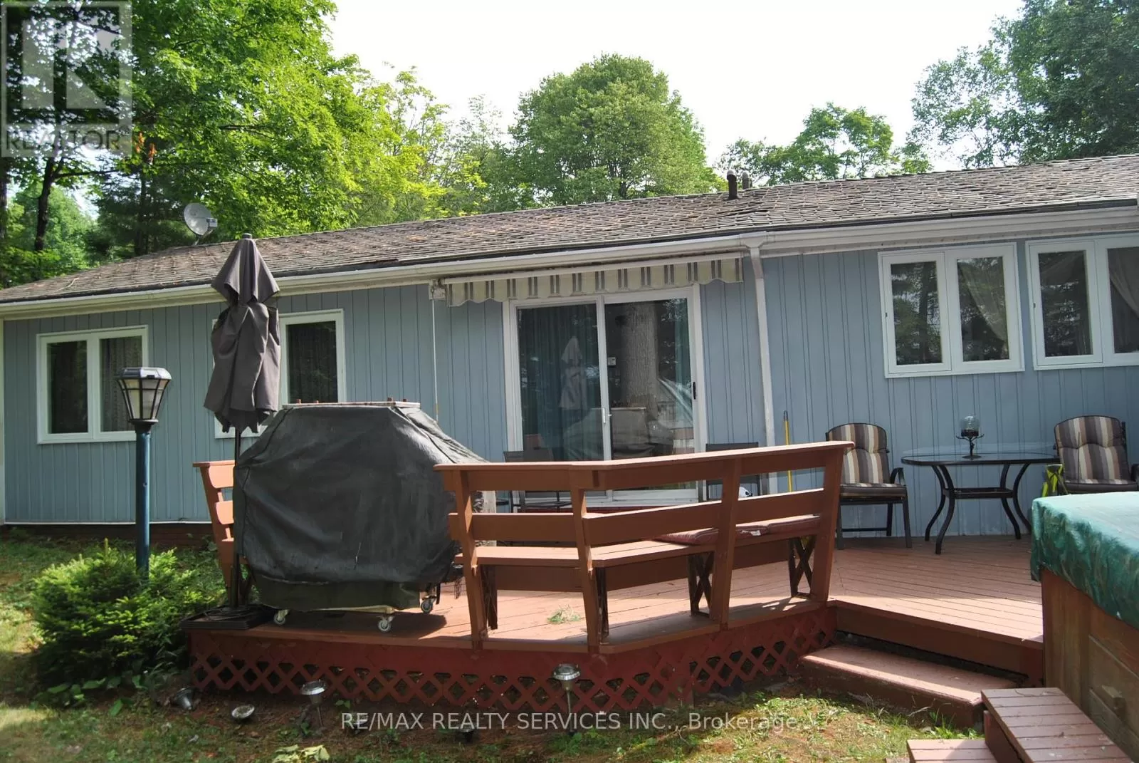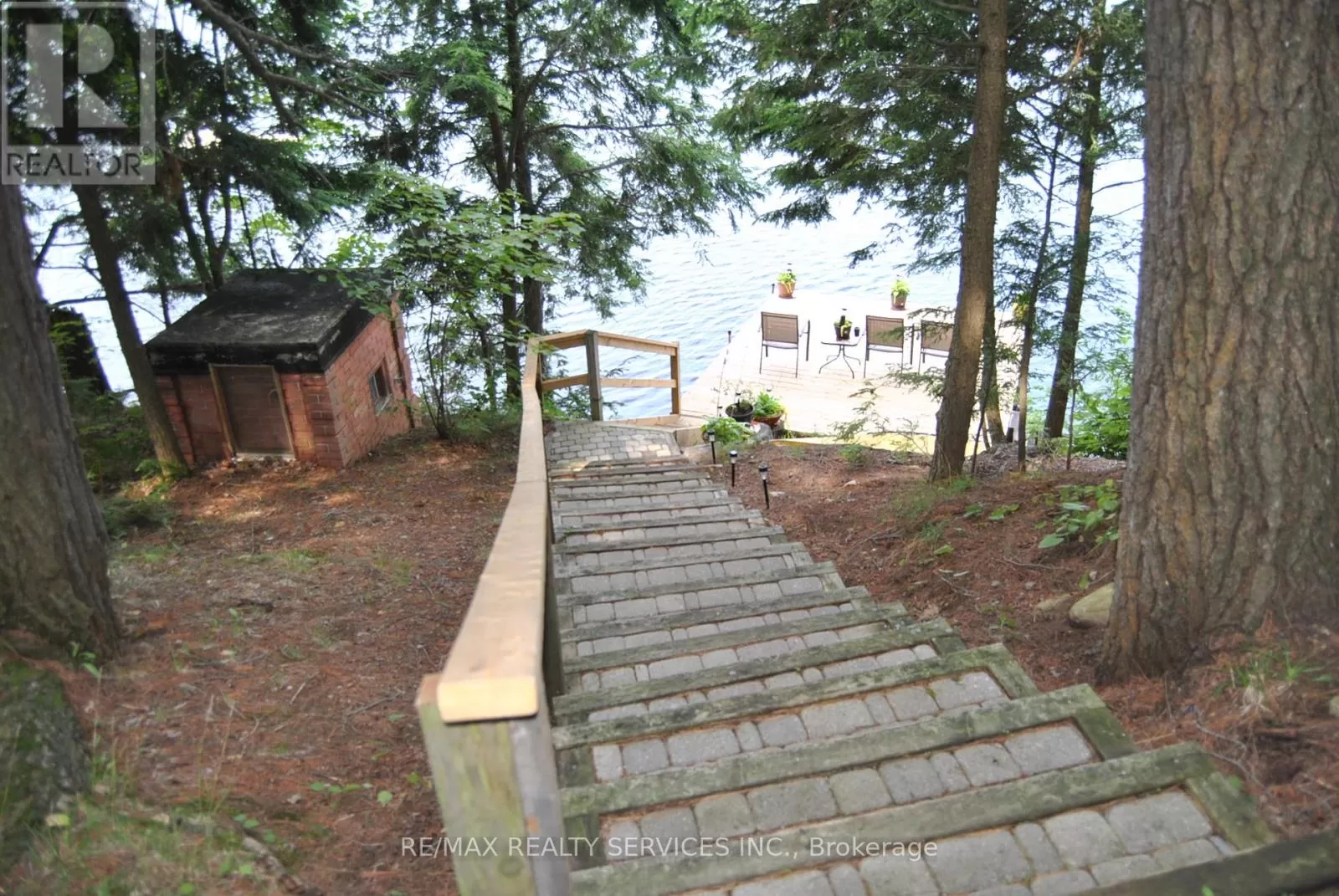 Cedar lane/ Fraserburg Summer of Love In The Muskokas Four Season Bungalow With Oversize Double Garage. Addition In 2004. Mature Trees On Lot is .63 Acre Lot With 100ft Frontage On Leech Lake Near Bracebridge. Views of The Lake, The Sunsets . Enjoy the Tranquility & Serenity of Nature. First Time Offered For Sale. This Property Suits Retirees or Family Who Wants Their Children To Have Summer Memories. The House is 4 Bedrooms. Enter Into A Hallway With Garage Access, Main Floor Laundry Closet & Pantry. The Primary Bedroom Is At The Opposite Side Of Main Floor From Other 3 Bedrooms, Primary Ensuite Has Acrylic Walk In Shower & Double Sinks. Family Sized Dining Room With Walkout To Deck With Lake Views. Kitchen With Double Windows With Lake Views & Breakfast Nook With Built In Seating. Main 4 Piece Bath Off Kitchen & Hallway To 3 Bedrooms. Living Room Area With Wood Stove, Open To Sunken Muskoka Room Has Ornate Crown Moulding, Laminate Floor Tongue & Grove Walls, Vinyl Ship Lap Ceiling & 3 Large Windows with Lake Views. 2 Walk Outs One to Deck Other to Side If The House. Deck At Rear Of House Has Swing Out Umbrella & Roll Out Awning. Path To Steps To Lake, Fire Pit & Bunkie. Bunkie Has A Kitchenette, Dining Area & Bedroom With Bunk Beds. Loft Overhead. Stairs To Lake & Dock. Leech Lake Is A Spring Fed Lake, Maximum Depth 40ft Covers Over 80 Hectares (195 Acres) Is Approximately 5.8 km Long. Fish Here For Large & Small Mouth Bass & Rainbow Trout. (id:27476)