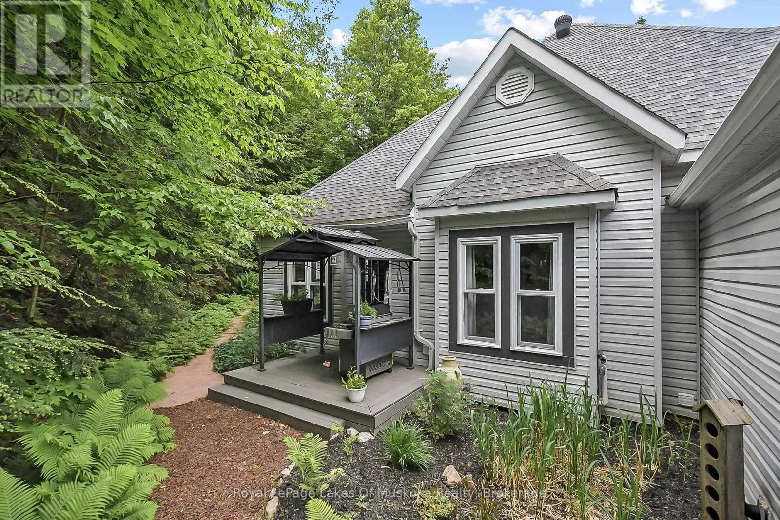 Cross Streets: Southbank and Eccelstone Dr. ** Directions: Eccelstone Drive to Southbank, past the round-about, down the hill, all the way to the end. There are two detached homes PAST the condo's. #103 is the last home on the street (SOP). EXCEPTIONAL IN TOWN, WATERFRONT PACKAGE -Yr Rd Waterfront Home on the Muskoka River189' Frontage |0.85AC|4 Beds|2 Baths|In-Town Services|Boating to the Big Lakes - Welcome to a truly exceptional offering in the heart of Bracebridge! Tucked away on a private 0.85-acre lot with 189 feet of pristine Muskoka River frontage, this custom-built, year-round home offers the perfect blend of in-town convenience and peaceful, country-like privacy. Thoughtfully designed and lovingly maintained by the original family, the home features 4 spacious bdrms and 2 full bathrms. Elevated ceilings soar up to 12ft in areas, creating a bright and airy atmosphere, while a cozy wood-burning fireplace anchors the living space. Recent updates include fresh paint, a new dishwasher, microwave, and oven, and reliable fiber optic internet, phone, and TV service ideal for working or streaming from the comfort of your riverside retreat. Step outside and take in the serene river views from your covered porch or sun deck, or head out to your private river deck and sandy beach with a deep-water dock - perhaps the nicest on the river-and perfect for swimming, lounging, or boating. The spacious dock and large deck over the river were upgraded in 2018 as was the separate detached 2 1/2 car garage. What truly sets this property apart is its unique location on the south branch of the Muskoka River, offering protected boating, kayaking, and paddleboarding adventures on a quiet section of the river leading to the enchanting South Falls, all while still connecting you to the big lakes: Muskoka, Rosseau, and Joseph. Just minutes from downtown Bracebridge on full municipal services, yet you'll feel worlds away surrounded by environmentally protected land to the south and west with no possibility of future development. Whether you're seeking a year-round home, cottage retreat, or legacy family property, this one is unlike anything else on the market. Come experience this remarkable property first hand! (id:27476)