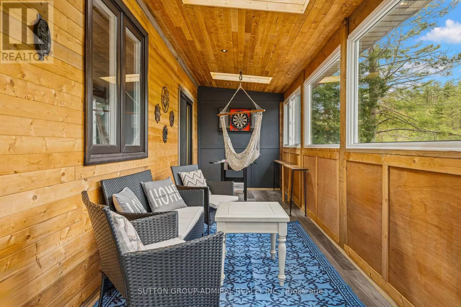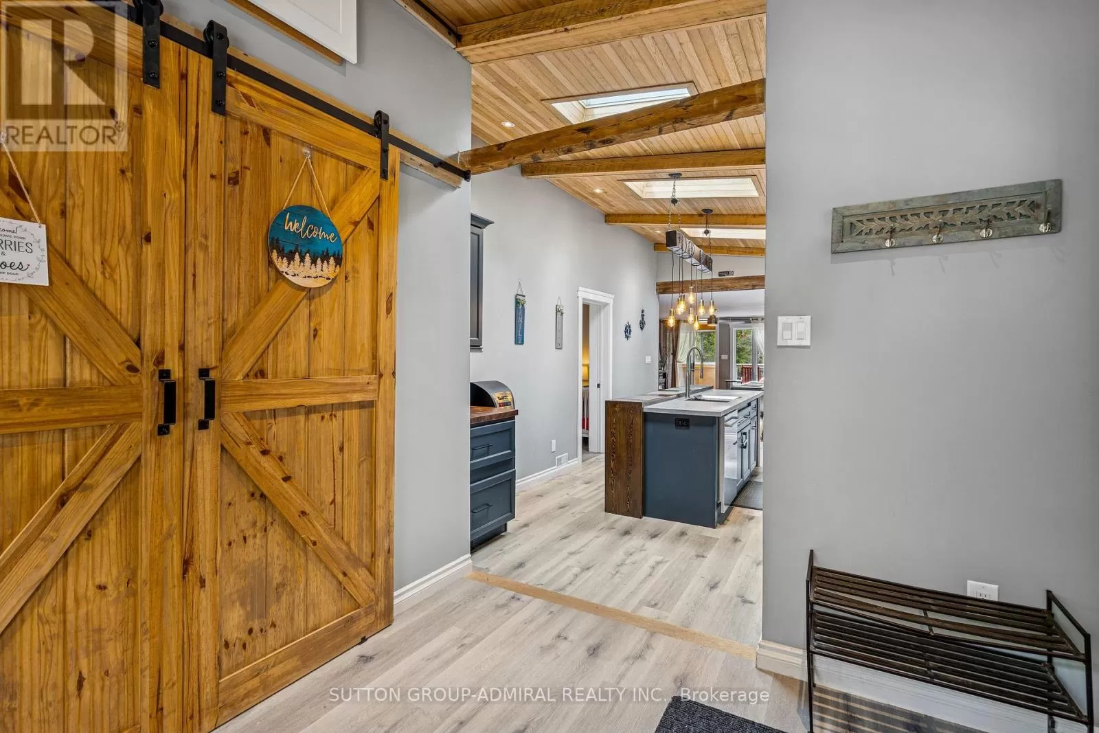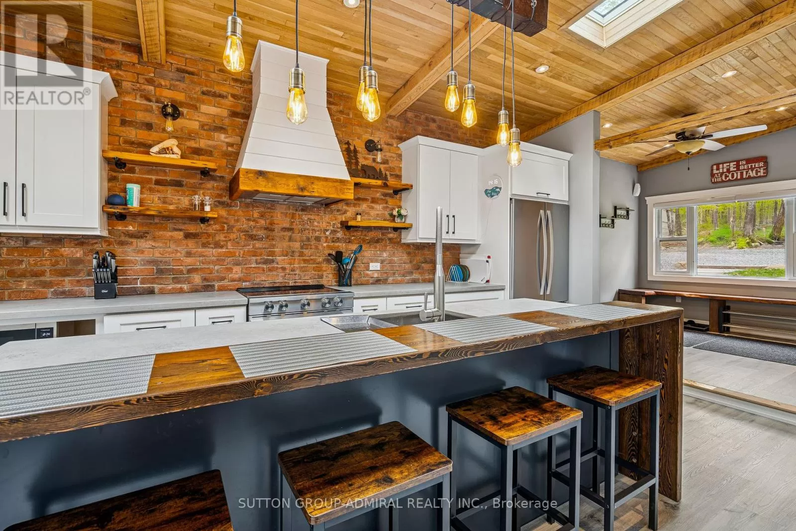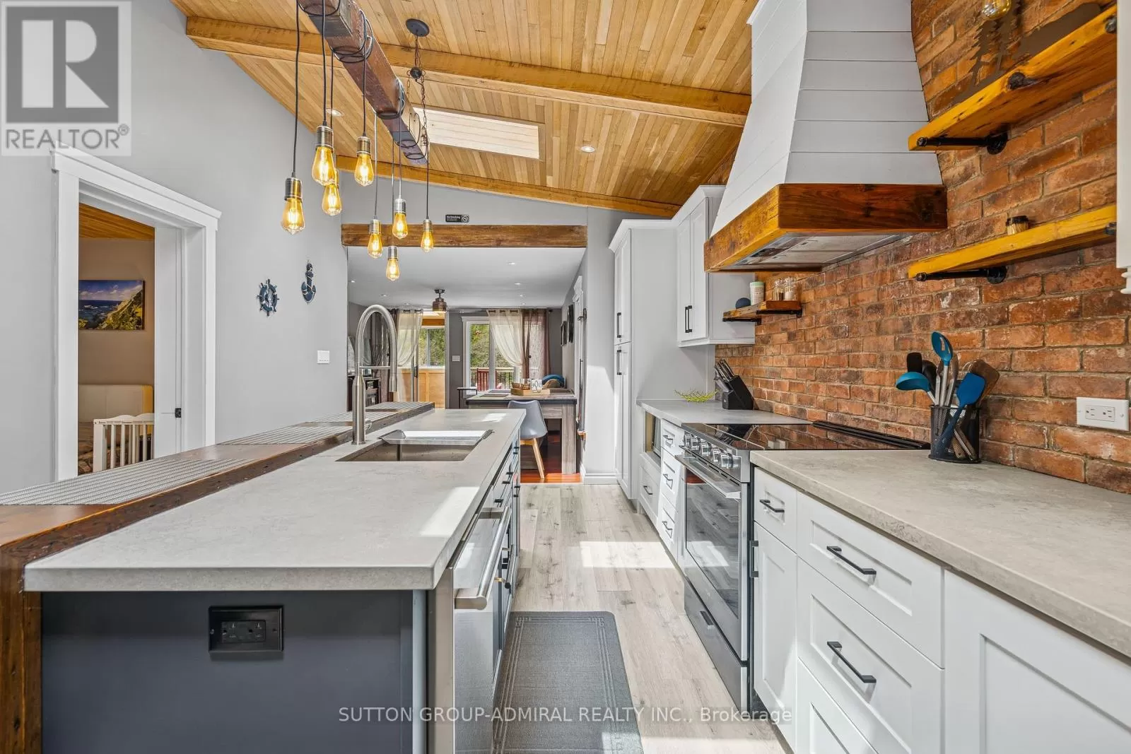 Ashley Ln/Kirkpatrick Ln Tranquil Retreat with Panoramic Water Views in the Heart of Muskoka! Welcome to 1023 Kirkpatrick Lane, a beautifully renovated 4-bedroom, 2-bathroom cottage nestled on nearly 1 acre of lush, landscaped grounds. This serene property offers breathtaking waterfront views and is just steps away from direct lake access, providing the perfect blend of privacy and convenience.Inside, you'll find a modern open-concept layout featuring high-end finishes, a gourmet kitchen, and spacious living areas designed for comfort and entertaining. Large windows throughout the home flood the space with natural light and showcase the stunning natural surroundings.Step outside to enjoy the expansive deck, perfect for outdoor dining and relaxation, while taking in the picturesque vistas. The property's generous lot offers ample space for outdoor activities, gardening, or simply unwinding in nature.Located in a peaceful area of Bracebridge, this home provides a true Muskoka experience while being only a short drive to local amenities, shops, and restaurants.Experience the best of cottage living with this exceptional property that combines modern luxury with the charm of waterfront proximity. ALL FURNITURE INCLUDED! (id:27476)