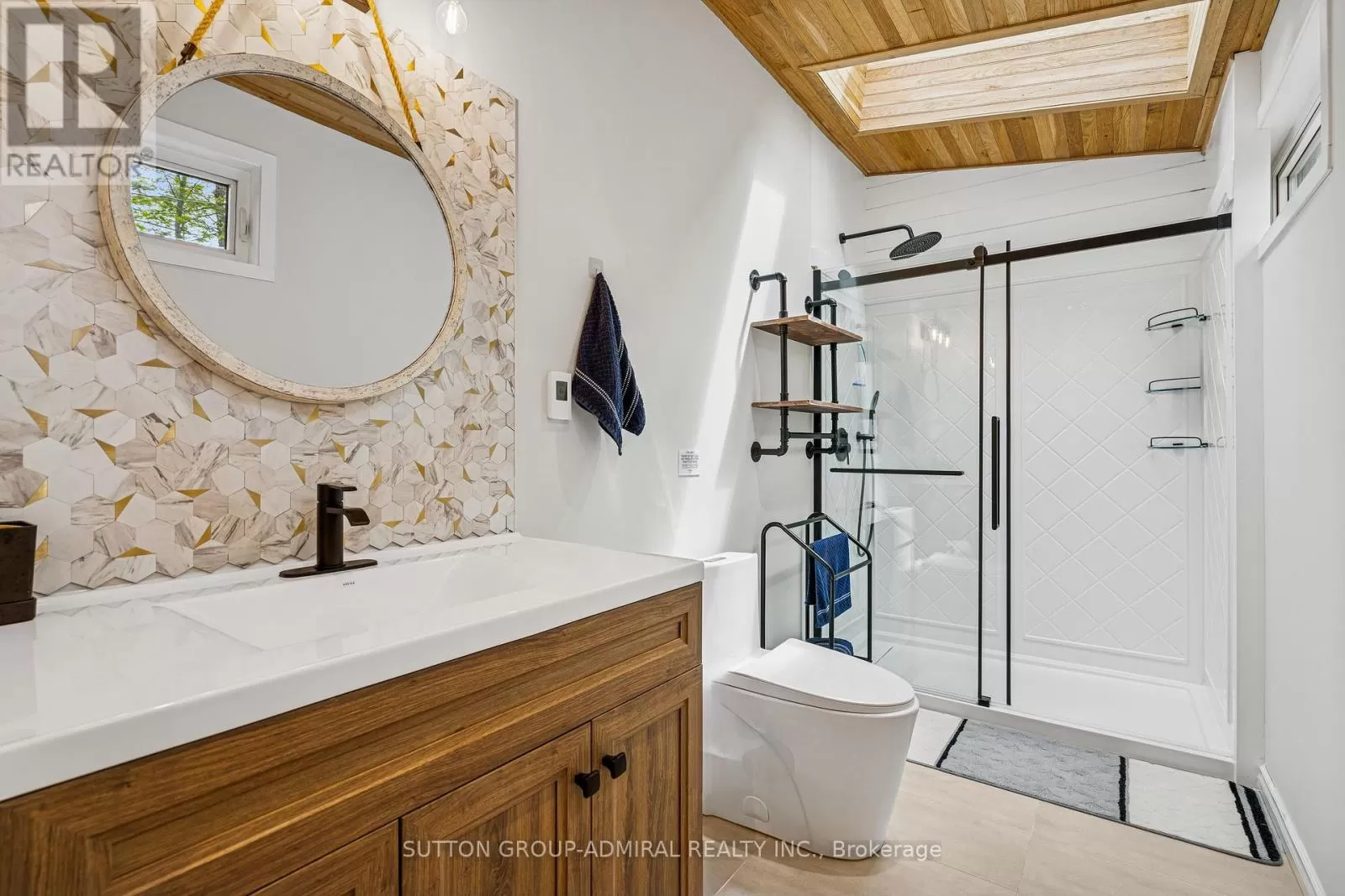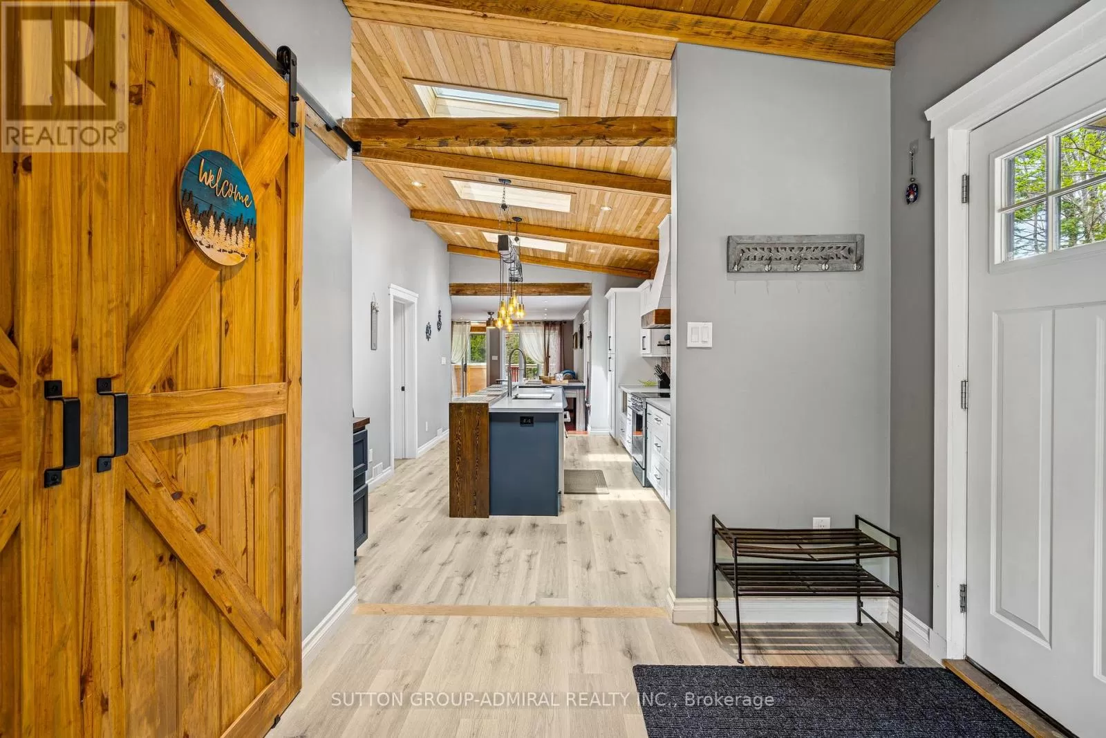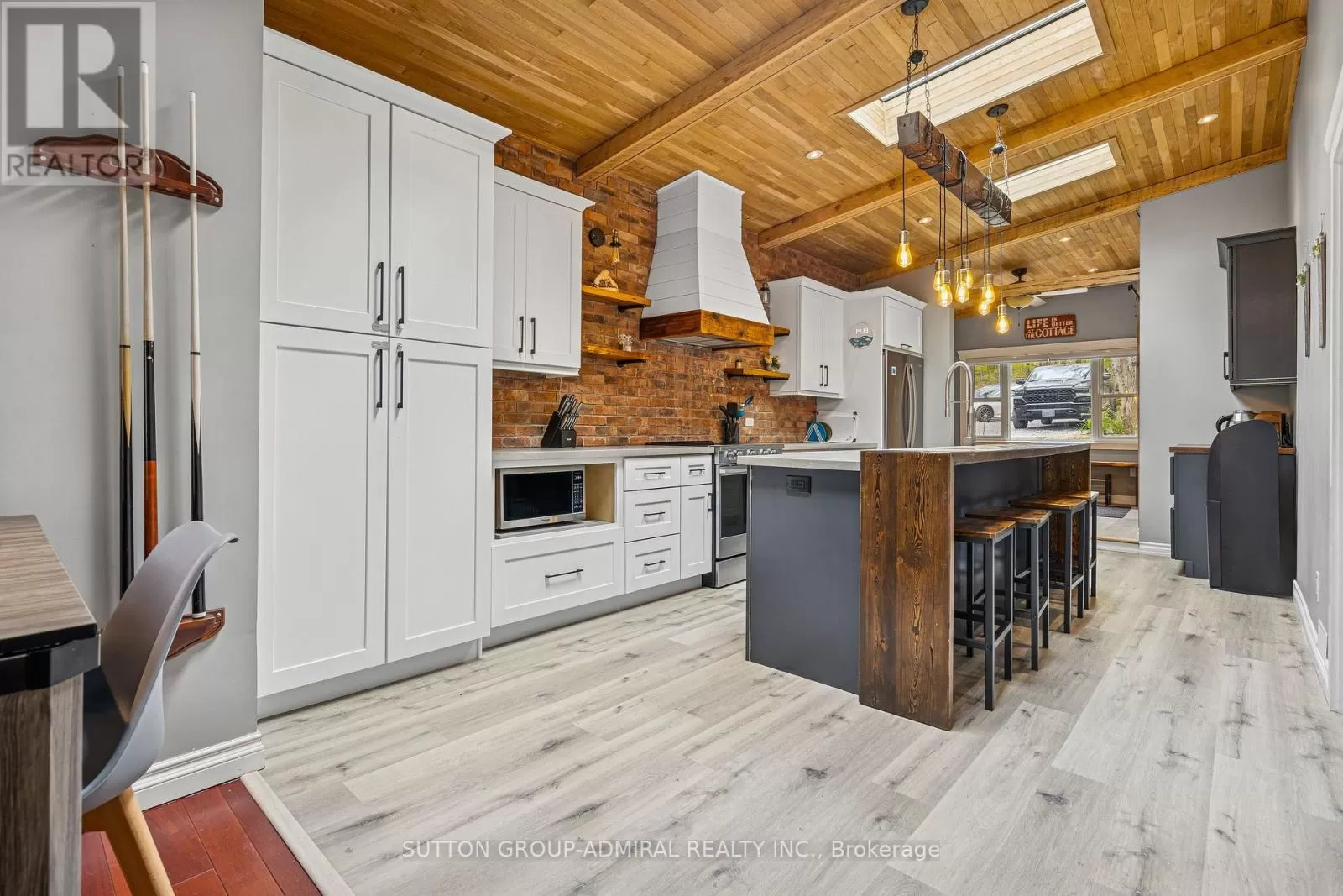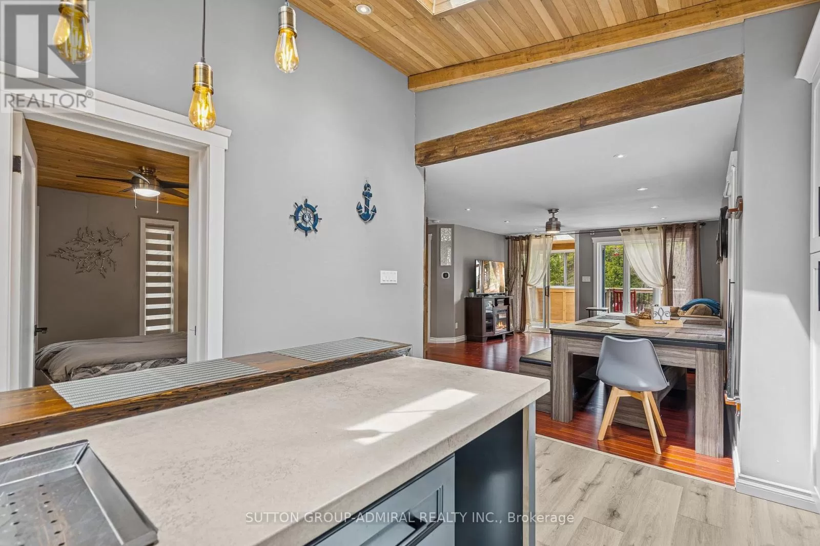 Ashley Ln/Kirkpatrick Ln Tranquil Retreat with Panoramic Water Views in the Heart of Muskoka! Welcome to 1023 Kirkpatrick Lane, a beautifully renovated 4-bedroom, 2-bathroom cottage nestled on nearly 1 acre of lush, landscaped grounds. This serene property offers breathtaking waterfront views and is just steps away from direct lake access, providing the perfect blend of privacy and convenience.Inside, you'll find a modern open-concept layout featuring high-end finishes, a gourmet kitchen, and spacious living areas designed for comfort and entertaining. Large windows throughout the home flood the space with natural light and showcase the stunning natural surroundings.Step outside to enjoy the expansive deck, perfect for outdoor dining and relaxation, while taking in the picturesque vistas. The property's generous lot offers ample space for outdoor activities, gardening, or simply unwinding in nature.Located in a peaceful area of Bracebridge, this home provides a true Muskoka experience while being only a short drive to local amenities, shops, and restaurants.Experience the best of cottage living with this exceptional property that combines modern luxury with the charm of waterfront proximity. ALL FURNITURE INCLUDED! (id:27476)
