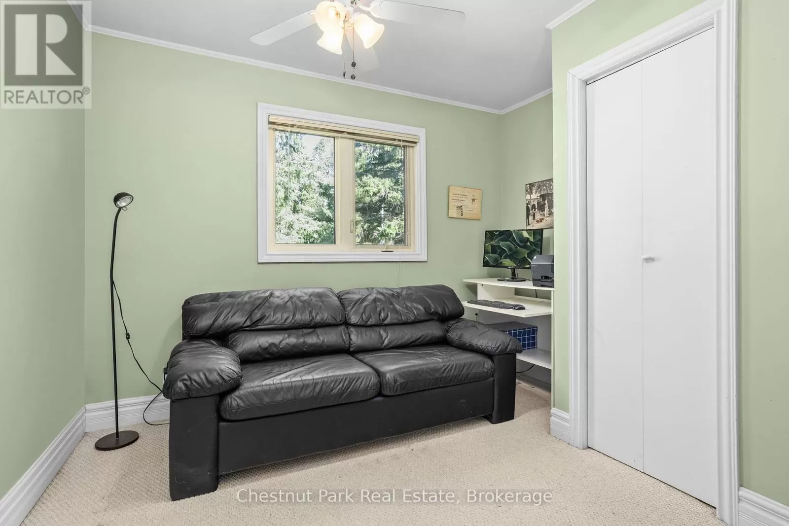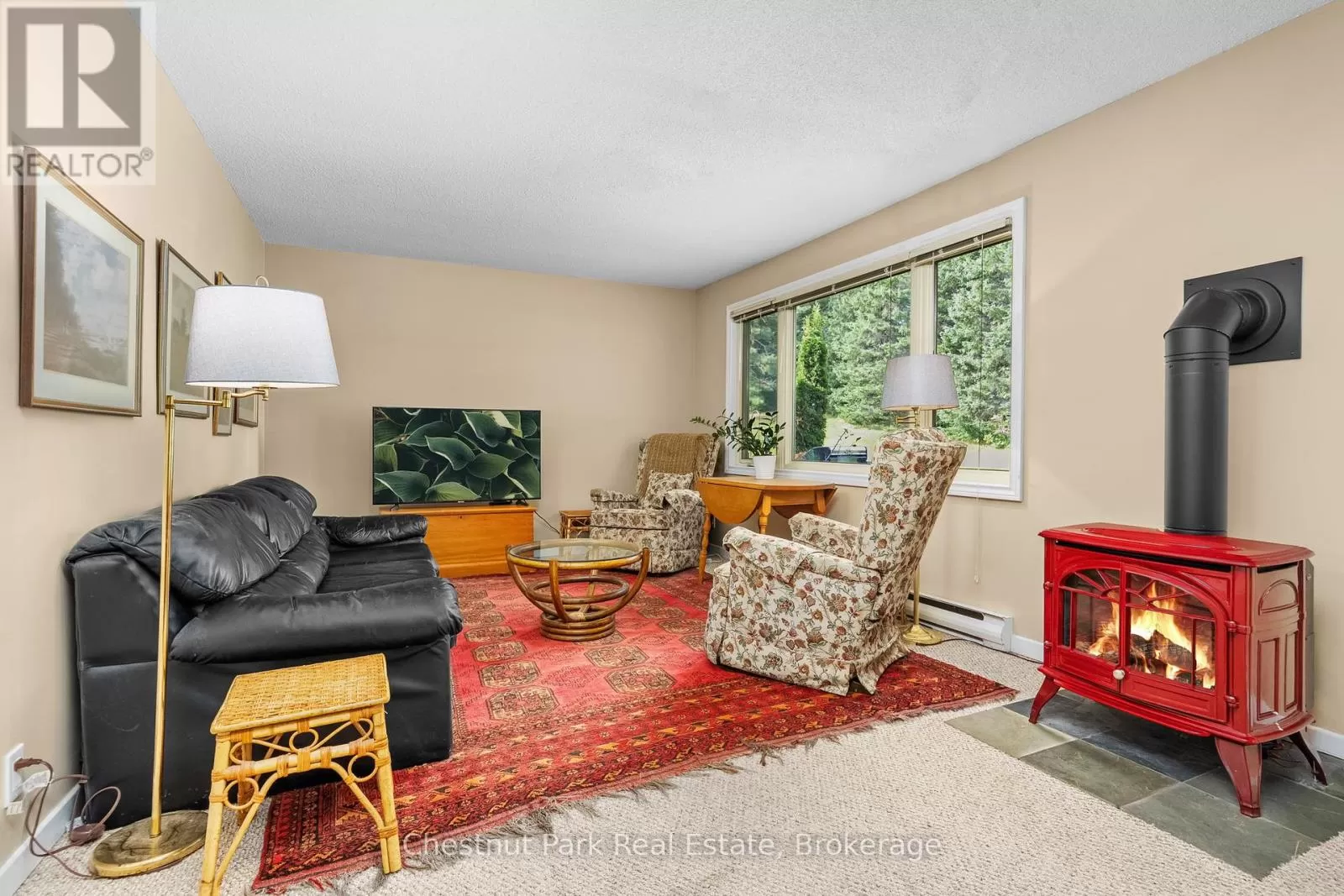 Cross Streets: Manitoba St/Liddard St. ** Directions: Manitoba St. to Liddard St to Golf Course Road. 1st Unit on your right hand side when entering townhouse complex. #8. Experience refined Muskoka living in this beautifully designed two bedroom, 1.5 bathroom Bungalow Townhome. This unit is perfectly positioned within an intimate and sought after complex just seconds from South Muskoka Golf and Curling Club. Curl up with a good book by the gas fireplace in the winter and enjoy staying cool in the summer with the thermo wall unit. The main living area is bathed in natural light with large windows and great views of surrounding green space. The large dining room opens up to a newer composite deck where you can enjoy your morning coffee or host dinner parties with a serene backdrop of mature trees that ensure both privacy and tranquility. The spacious Primary Bedroom boasts great natural light, a three piece washroom and ample closet space while the second room can be utilized as an additional Bedroom or den/office. The main floor powder room has been renovated to include a stackable washer/dryer to add to the ease and comfort of one level living. Bursting with potential the full height unfinished basement offers a rare opportunity to create a personalized lower level and maximize your living space. Enjoy year round living or lock the door and head South for the Winter. Ideally located within walking distance to shops, restaurants and amenities in downtown Bracebridge. With its prime location beside one of Muskoka's favourite golf and curling clubs, this residence blends the charm of a quiet community with the feel of resort style living. A true gem for those seeking convenience and the beauty of Muskoka living. (id:27476)