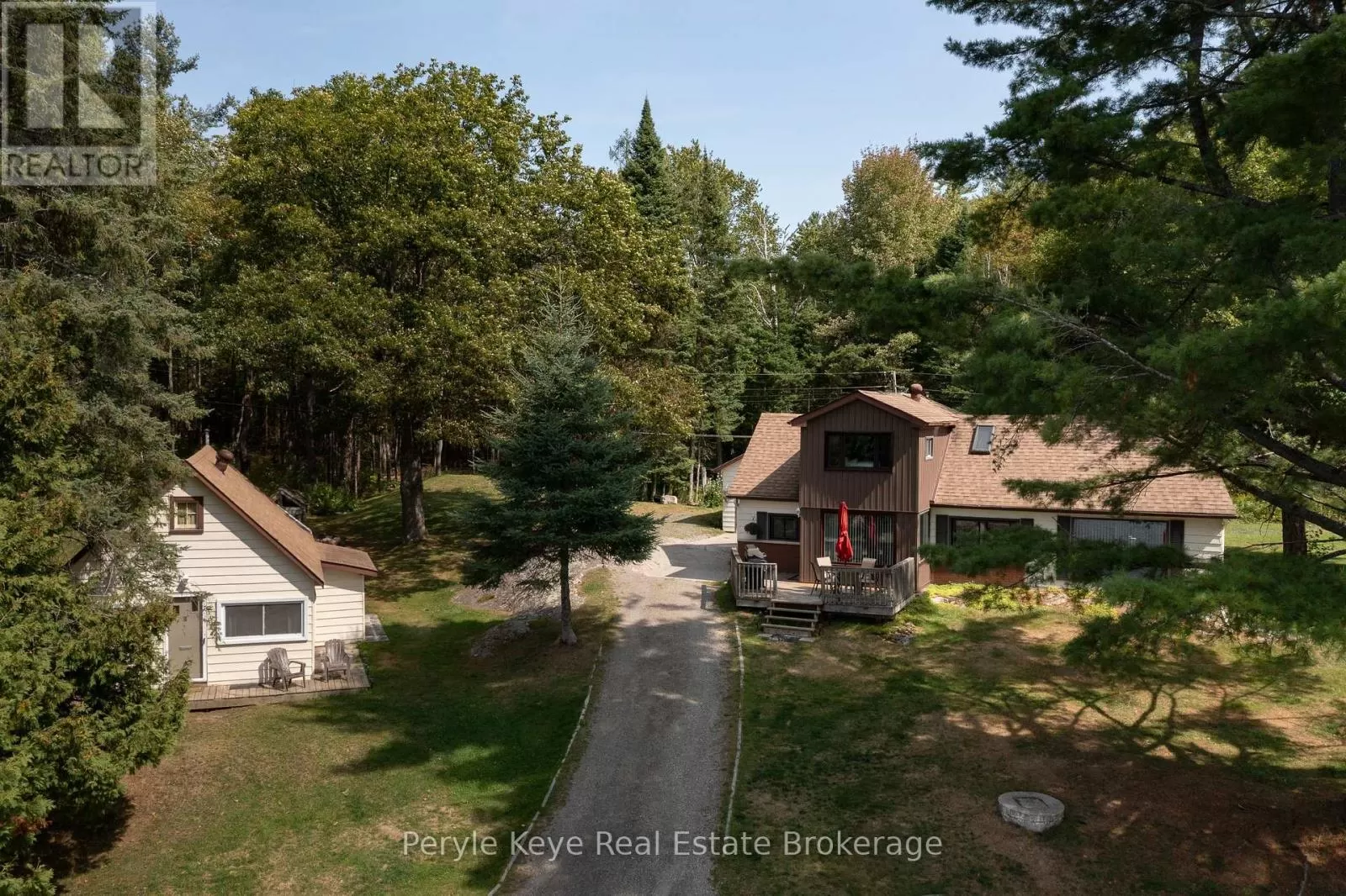 Cross Streets: Prospect Lake Rd - Big Island Rd. ** Directions: HWY 11 - 118 HWY E - Prospect Lake Rd - Big Island Rd. Two Cottages. One Carefree Summer Story. Tucked along the shores of Prospect Lake with coveted southwest exposure, this rare lakeside package delivers something almost unheard of two fully equipped cottages on one beautiful lot. Its the kind of setup families dream about. One for you. One for them. Both with kitchens, bathrooms & bedrooms so everyone can come together without being on top of each other. At the heart of the property sits the main cottage: warm, welcoming & surrounded by tall pines. With 5 bedrooms & 2 baths, theres space to sleep a crowd & gather for games, meals, & early-morning coffee. A short stroll away, the 2nd cottage offers 3 bedrooms, a 3PC bath, its own kitchen, and a peaceful retreat just far enough for privacy but close enough to stay connected. Across the quiet lane, the shoreline invites you in. A 40' dock reaches out into the lake, with approx. 12' of depth off the end ideal for swimming, docking, or diving into summer. The sun-drenched, gently sandy shoreline is perfect for all ages. This is cottage life, uncomplicated where sand ends up in bedsheets, dinners are BBQd, & no ones fussing over perfect. Evenings settle into bonfires, marshmallows, & picture-perfect starry nights. Multiple upgrades add peace of mind, including a new septic system installed in 2021. A detached garage currently houses laundry & adds storage for the toys that make lake life even better. With two self-contained cottages, this property also presents a strong investment opportunity ideal for short-term vacation rentals, long-term tenants, or simply a shared family investment with excellent potential for rental income. Whether shared between siblings, passed down through generations, or held close as your own retreat, this is the kind of property that becomes part of your family story. Sun-soaked dock days. Campfire nights. Room for everyone. This is the cottage youve been waiting for. (id:27476)
