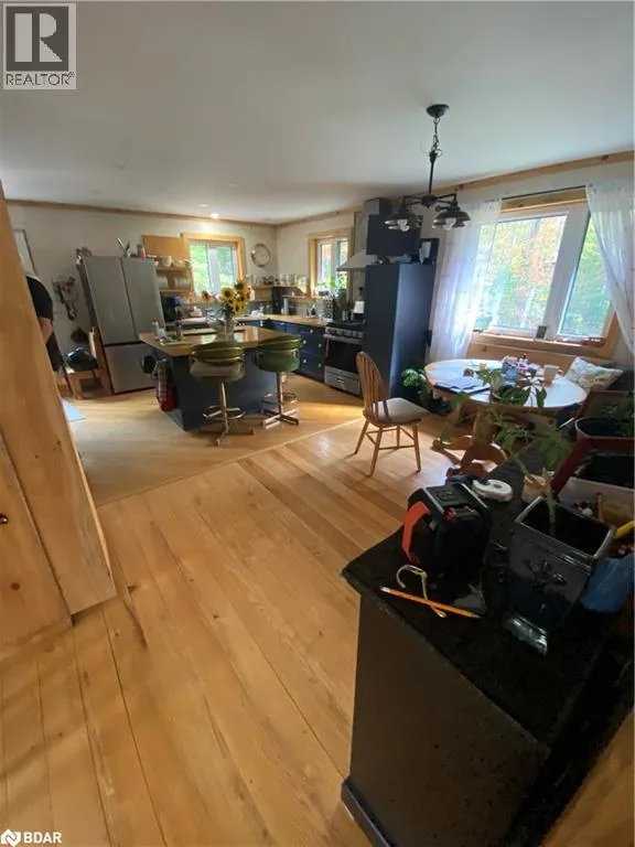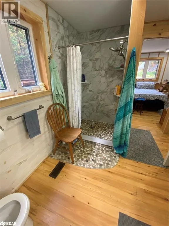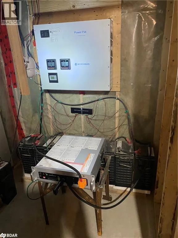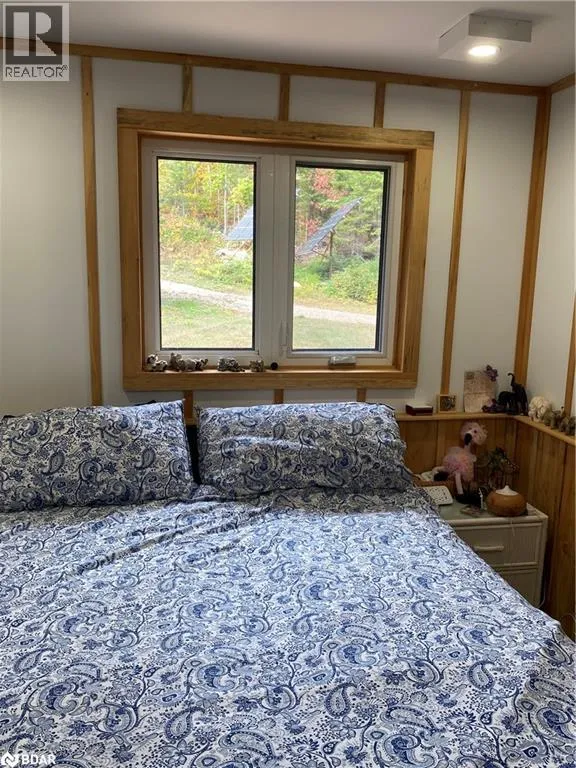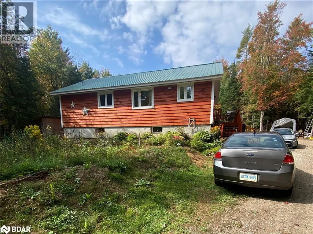 Highway 11 to Highway 118 East to Vankoughnet Rd to 1070 Year round new home with 3 bedrooms and 2 bathrooms on 16.5 acres OFF GRID. Wood accents throughout the home with open concept and hardwood flooring. Triple glazed windows and total privacy with a winding driveway from a year round paved road only 15 minutes from Bracebridge. This home has a fulll insulated dry basement. Hot water demand, propane forced furnace, airtight woodstove that is WETT Certified with a fresh air access to keep extra comfort in cold winter. Two large solar panels with a 10,000 kilowatt microgreen system with 8 AGM Batteries. Also a back up Generator with a 12,000 KW that runs the entire home. Drilled 120 foot well with 13 gpm and lots of water you need. Metal roof so no shoveling. The septic is a media filtering system. Over 9 foot Sea Container storage with lots of room for storage. With 16.5 acres and lots of room to hike and play with your family. (id:27476)