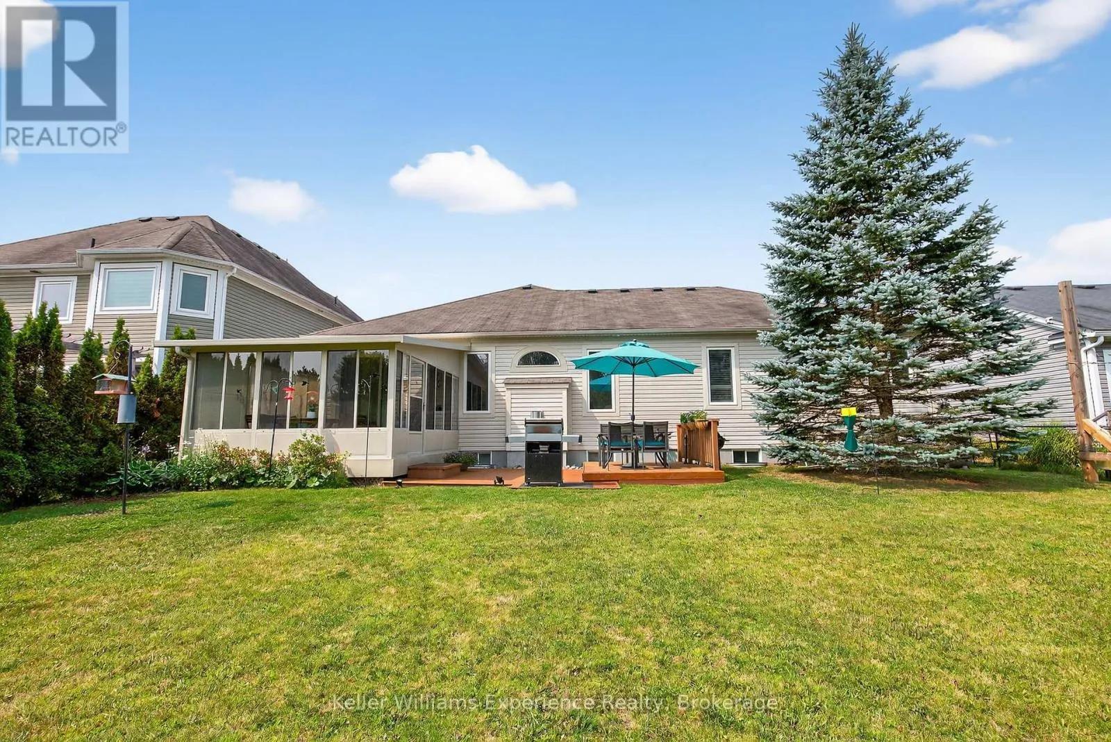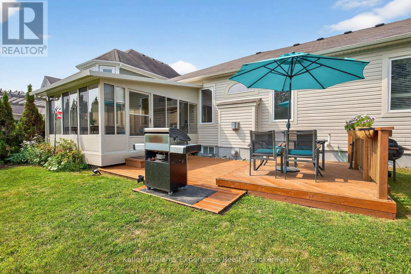 Cross Streets: Manitoba Street/Clearbrook Trail. ** Directions: Manitoba Street to Clearbrook Trail -left on Rosemead Close -followroad to 44 Fieldstream Chase - Sign on Property. Spectacular inside and out! Watch the Video Tour! 4 bed 3 bath Bungalow backing on greenspace in a quiet part of the neighborhood. White Pines is one of Bracebridge's most popular communities, close to the high school, Sportsplex(pool, gym, walking track), performing arts theatre. The home is open concept, w/9ft ceilings, deluxe kitchen, quartz countertops, island, pantry. Hardwood floors, custom tile. Gas fireplace in living-room, primary suite has walk-in closet, Ensuite bath w/jacuzzi tub & walk-in shower. Finished basement gives an extra bedroom, bathroom, rec-room w/gas fireplace, office, lots of storage, large laundry room. LED lighting throughout, custom lighting in kitchen, dining and living room areas, central vac, Attached Muskoka Room, decking, lushly landscaped with garden shed/Bunkie. (id:27476)