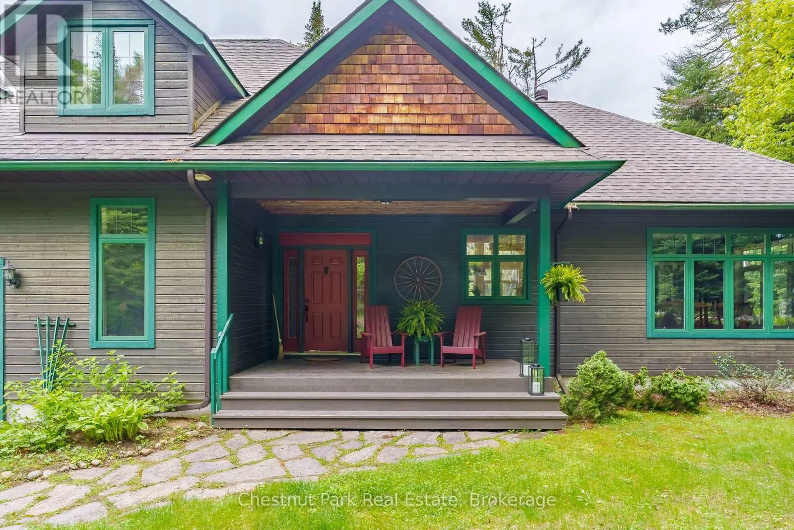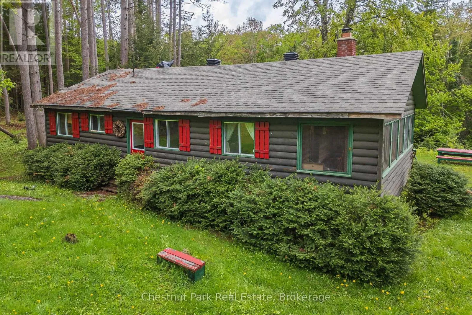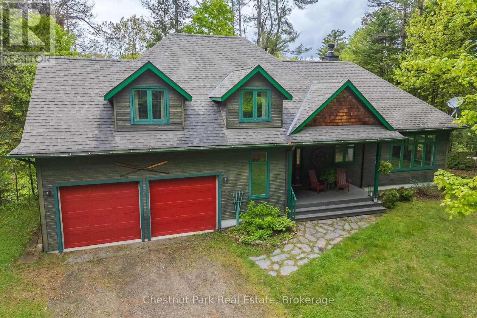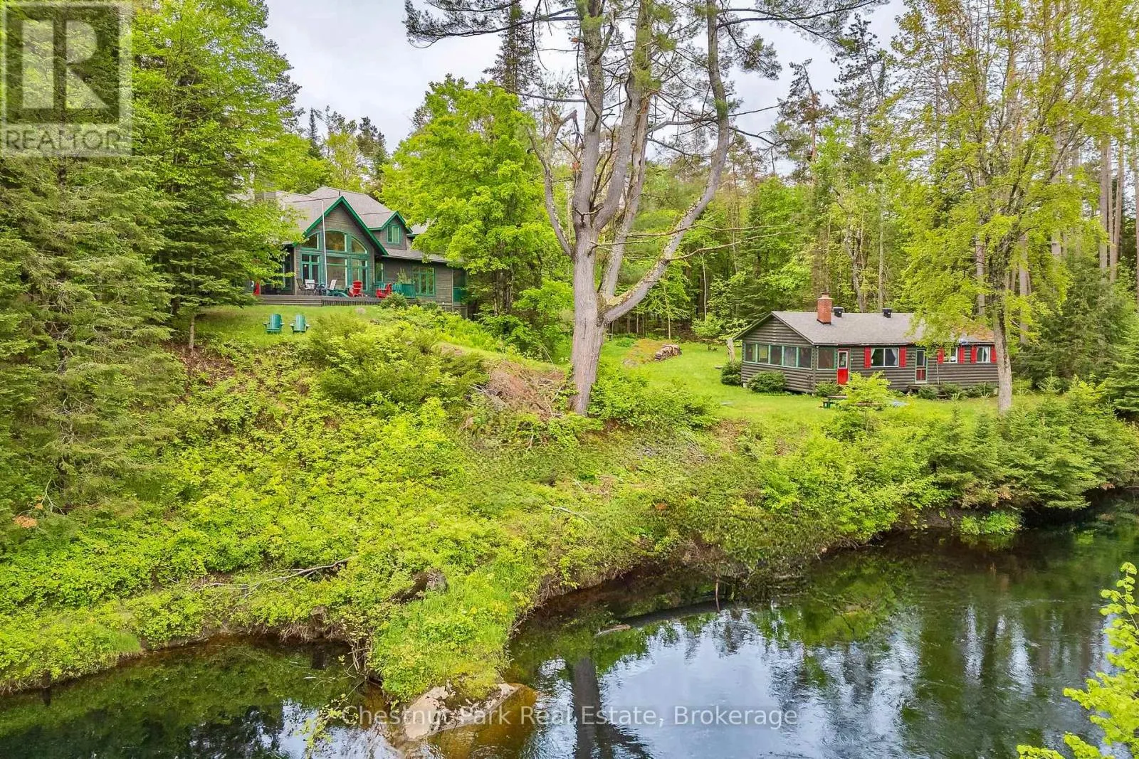 Cross Streets: Old Victoria Rd and Miriam Dr. ** Directions: Hwy 118 E to Vankoughnet Rd to Old Victoria Rd to Miriam Dr. Where Stories Begin and Memories Stay: A Family Riverfront Retreat on the Black River Own it solo or share it with family or friends the magic of Muskoka is best when experienced together.Nestled along 405 feet of private shoreline with breathtaking westerly sunsets, just outside Bracebridge, this exceptional property offers not one, but two distinct dwellings, making it the perfect setting for multi-generational living, shared ownership, or a timeless family getaway.The main year-round residence, built in 2005, welcomes you with a warm timber framed accents design and soaring windows that flood the space with natural light and frame the beauty of the river beyond. Its open-concept layout is both bright and inviting, with a main floor primary suite, three additional bedrooms upstairs, and two dens below. A stunning stone fireplace anchors the living space, while a Muskoka room extends your living area into the trees perfect for relaxing to the sounds of the forest or gathering for evening games and laughter. The lower level also features a large games room, a formal living room, and walkout access that keeps you effortlessly connected to the outdoors. Steps away, the 1974 log cabin stands as a testament to decades of family joy. Lovingly preserved, it offers three generous bedrooms, a 3-piece bath, its own Muskoka room, and a storybook setting right at the rivers edge. Here, children catch frogs by day and roast marshmallows by the campfire under the stars by night. The walls echo with laughter, and the beams hold generations of memories. With no other structures in sight, this is your own hidden paradise where peace, privacy, and natural beauty converge. Whether you're seeking a peaceful year-round home, a multi-generational compound, or an investment in connection and nature, this property delivers the lifestyle only Muskoka can provide. Don't miss your chance to make Muskoka HOME! (id:27476)