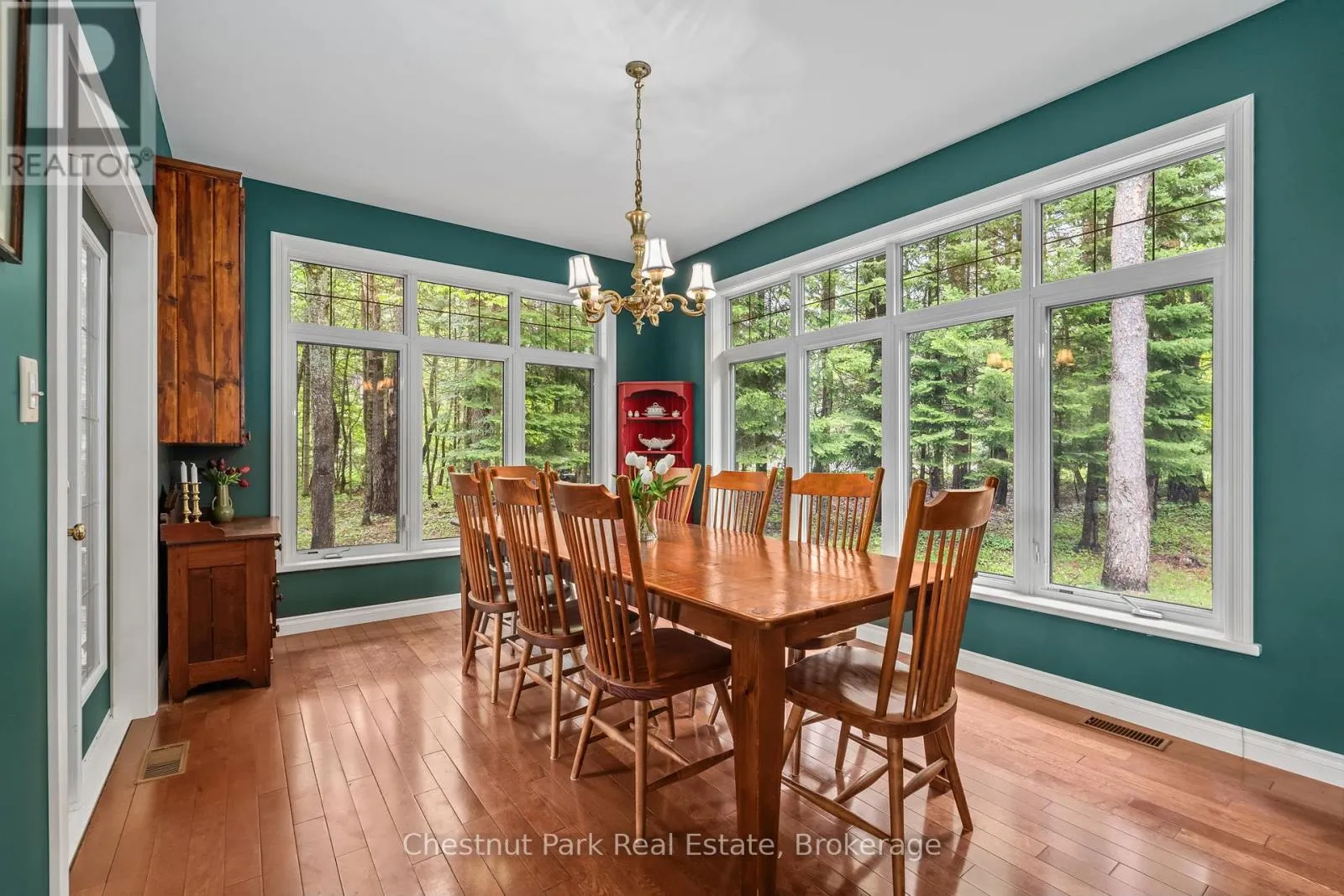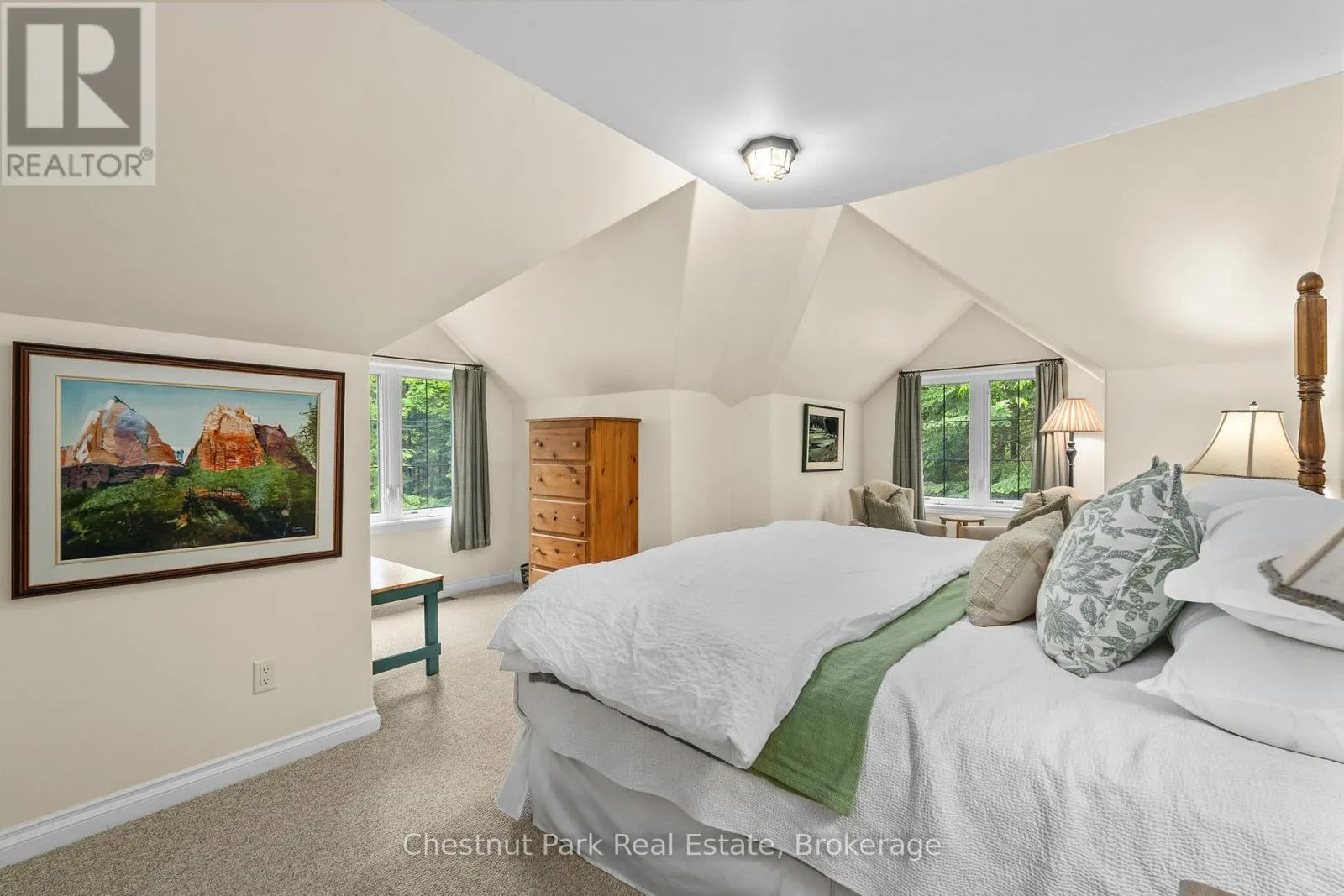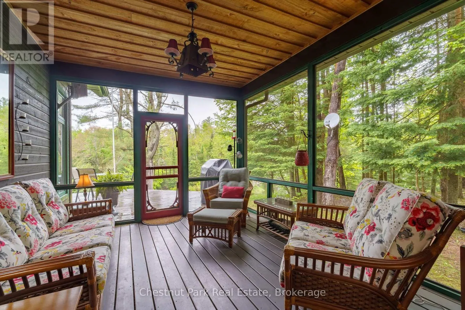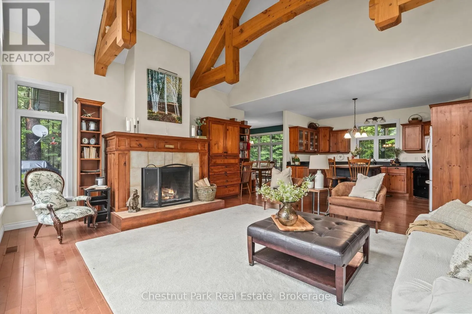 Cross Streets: Old Victoria Rd and Miriam Dr. ** Directions: Hwy 118 E to Vankoughnet Rd to Old Victoria Rd to Miriam Dr. Where Stories Begin and Memories Stay: A Family Riverfront Retreat on the Black River Own it solo or share it with family or friends the magic of Muskoka is best when experienced together.Nestled along 405 feet of private shoreline with breathtaking westerly sunsets, just outside Bracebridge, this exceptional property offers not one, but two distinct dwellings, making it the perfect setting for multi-generational living, shared ownership, or a timeless family getaway.The main year-round residence, built in 2005, welcomes you with a warm timber framed accents design and soaring windows that flood the space with natural light and frame the beauty of the river beyond. Its open-concept layout is both bright and inviting, with a main floor primary suite, three additional bedrooms upstairs, and two dens below. A stunning stone fireplace anchors the living space, while a Muskoka room extends your living area into the trees perfect for relaxing to the sounds of the forest or gathering for evening games and laughter. The lower level also features a large games room, a formal living room, and walkout access that keeps you effortlessly connected to the outdoors. Steps away, the 1974 log cabin stands as a testament to decades of family joy. Lovingly preserved, it offers three generous bedrooms, a 3-piece bath, its own Muskoka room, and a storybook setting right at the rivers edge. Here, children catch frogs by day and roast marshmallows by the campfire under the stars by night. The walls echo with laughter, and the beams hold generations of memories. With no other structures in sight, this is your own hidden paradise where peace, privacy, and natural beauty converge. Whether you're seeking a peaceful year-round home, a multi-generational compound, or an investment in connection and nature, this property delivers the lifestyle only Muskoka can provide. Don't miss your chance to make Muskoka HOME! (id:27476)