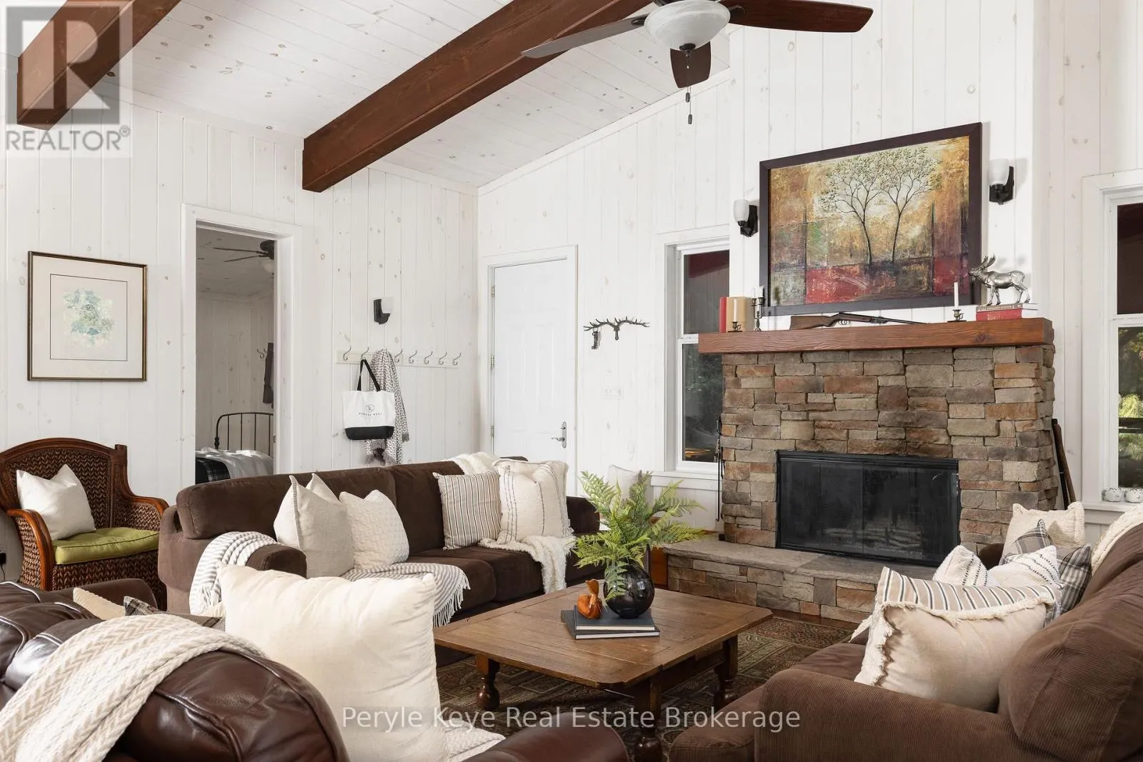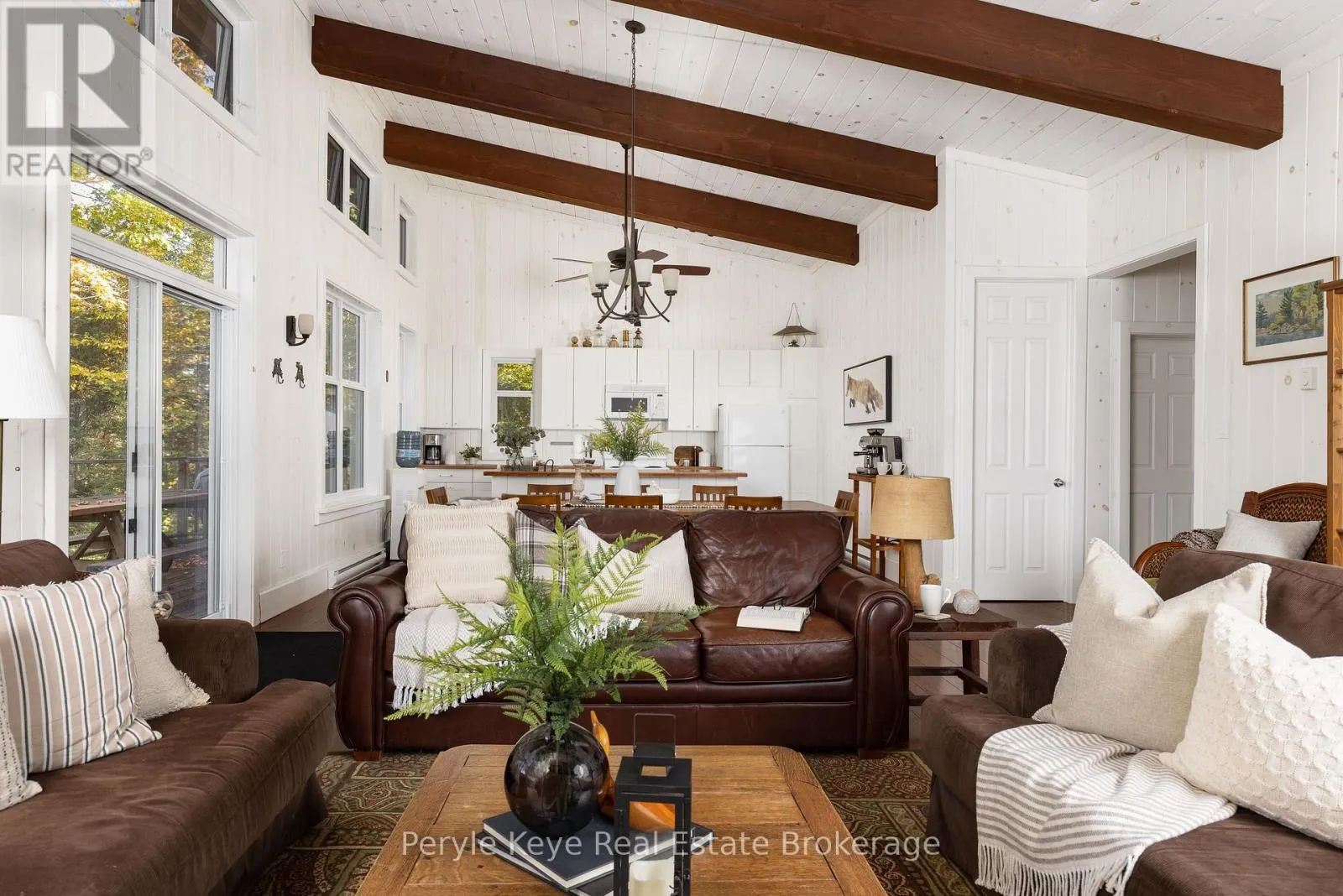 Cross Streets: Fraserburg Rd - Gallaugher Rd. ** Directions: HWY 11 - Fraserburg Rd - Gallaugher Rd - Whispering Pines Trail. Life doesn't slow down, does it? The phone keeps ringing, the inbox keeps filling, and somehow the weekends slip by faster every year. You've built the life you once dreamed of, but lately, it feels like it's running you! And thats exactly why this place feels different. You think you're buying a cottage, but what you're really buying is time with the people you love. And that changes everything! Not just for weekends or summer breaks, but for every season ahead. Because lets be honest - time isn't slowing down. But here - it almost feels like it does. Picture this: 164 feet of shoreline, stretching wide and open. Northwest exposure giving you sunsets that make everyone stop what they're doing, no matter how busy the day. It's not just about looking at the water, every window, every angle points you toward it. The lake isn't the backdrop. Here it's the highlight! Inside, everything feels grand from the height of the doors to the ceilings. A gorgeous fireplace becomes the anchor of every gathering. It has the feel of an upscale cottage, but one that lets you breathe easy. Here, no one fusses about sandy feet inside or beach towels piled by the door. It's a place that feels full of life, everyone together, from sunrise swims to sunset dinners drifting in from the BBQ, and s'mores and stories shared around the fire. The Muskoka Room quickly becomes everyones favourite hangout, rain or shine. The bunkie? Chances are, someone will always call dibs. (It even has a 2PC bathroom.) And yes, there's laundry, plenty of storage, and all the practical touches including year round access and a heated lake line that make time at the cottage easier, year-round. Here's the truth. You don't want another house. You want a place where everyone has a great time. Where time slows, and no ones in a rush to leave. That's what this cottage is. Your pause button on life. A place to be fully present with the people you love. Everything else...can wait. (id:27476)