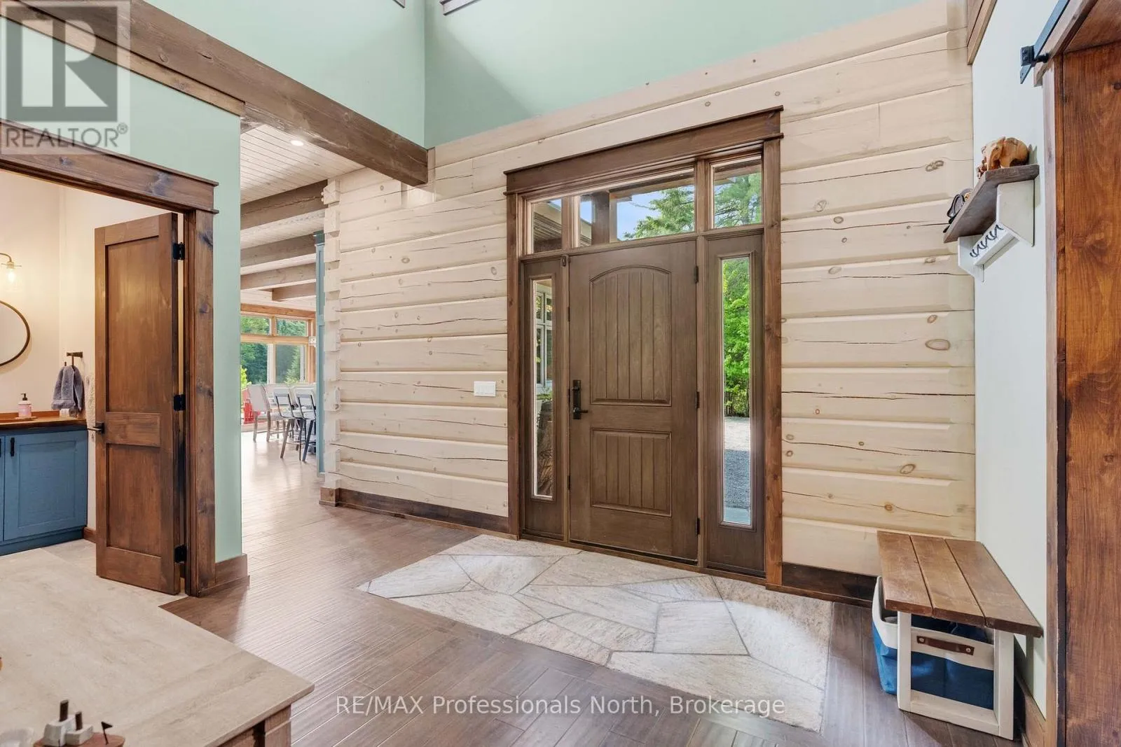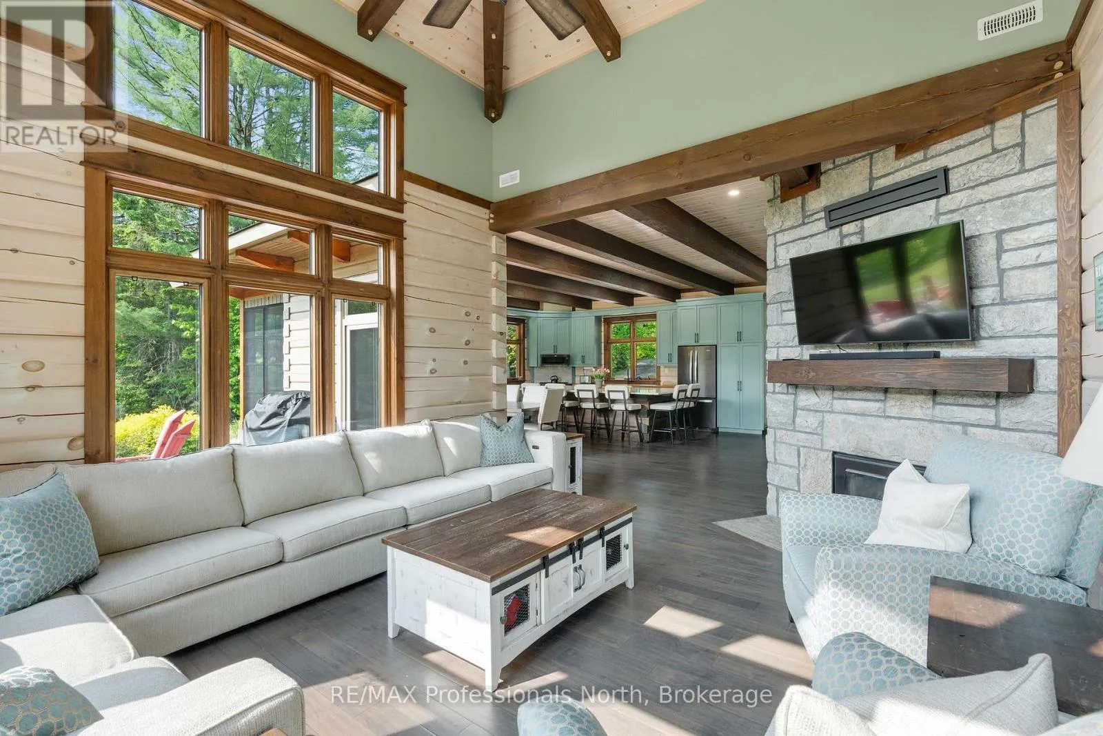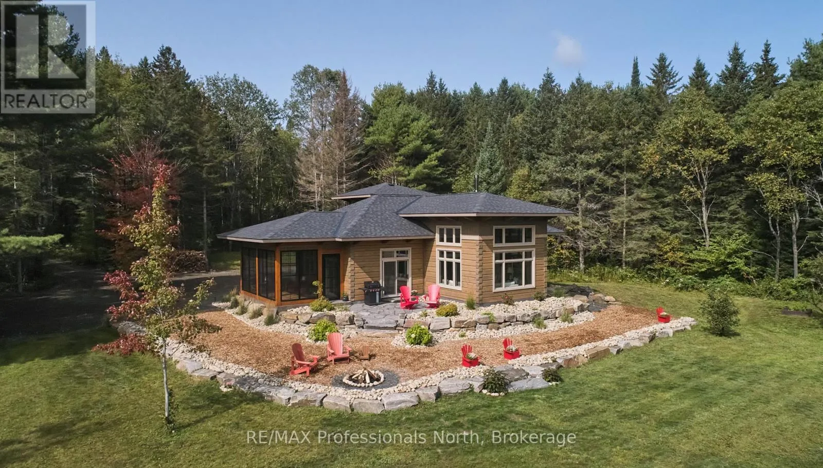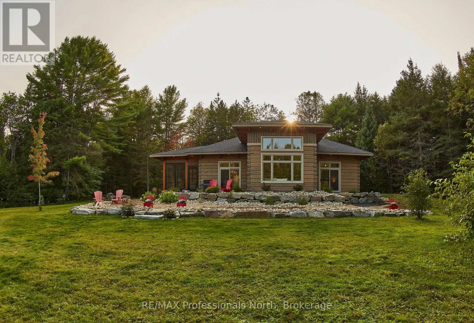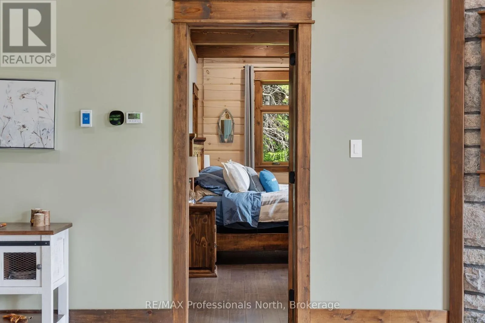 Cross Streets: Bonnell & Highfalls Road. ** Directions: HWY 11 to high falls road, left onto bonnel road, sop few houses in on left. Nestled along the pristine Muskoka River sitting on 1.37 acres and 215 feet of riverfront, just minutes from downtown Bracebridge renowned for its small town charm and as a gateway to the natural beauty of Muskoka this award-winning luxury custom log bungalow offers timeless elegance and modern convenience in a premium riverfront setting. Located just off Highway 11, the property delivers ideal accessibility while offering serene privacy that feels worlds away. Built in 2020, this meticulously crafted True North Log Home greets you with impressive curb appeal and thoughtful detail at every turn. Inside, the 8x12 white pine logs, soaring ceilings, white-washed pine accents, and rich dark wood beams set a warm and sophisticated tone. The open-concept layout features 3 spacious bedrooms and 2 full bathrooms, with radiant in-floor heating powered by a propane boiler, plus a forced-air furnace and central A/C ensuring year-round comfort. Maple flooring flows throughout, accented by granite stone and tile in the entryways and bathrooms. The chef-inspired kitchen with a 10'x5' island is perfect for entertaining gatherings of any size, while the great room showcases a stunning granite floor-to-ceiling wood burning fireplace. The Muskoka room offers a peaceful retreat to take in the sounds of nature. while the primary bedroom is a true sanctuary, complete with a walk-in closet, elegant ensuite, and a granite stone walkout to a private sunken 7x7 hot tub. Outside, professionally landscaped gardens feature natural granite, river rock, and cedar mulch. The fully insulated 26'x25' garage is not to be overlooked, offering in-floor heat, dual floor drains, 8'x9' automatic garage doors, and wired for an EV charger ideal for luxury vehicles or passionate hobbyists. (id:27476)