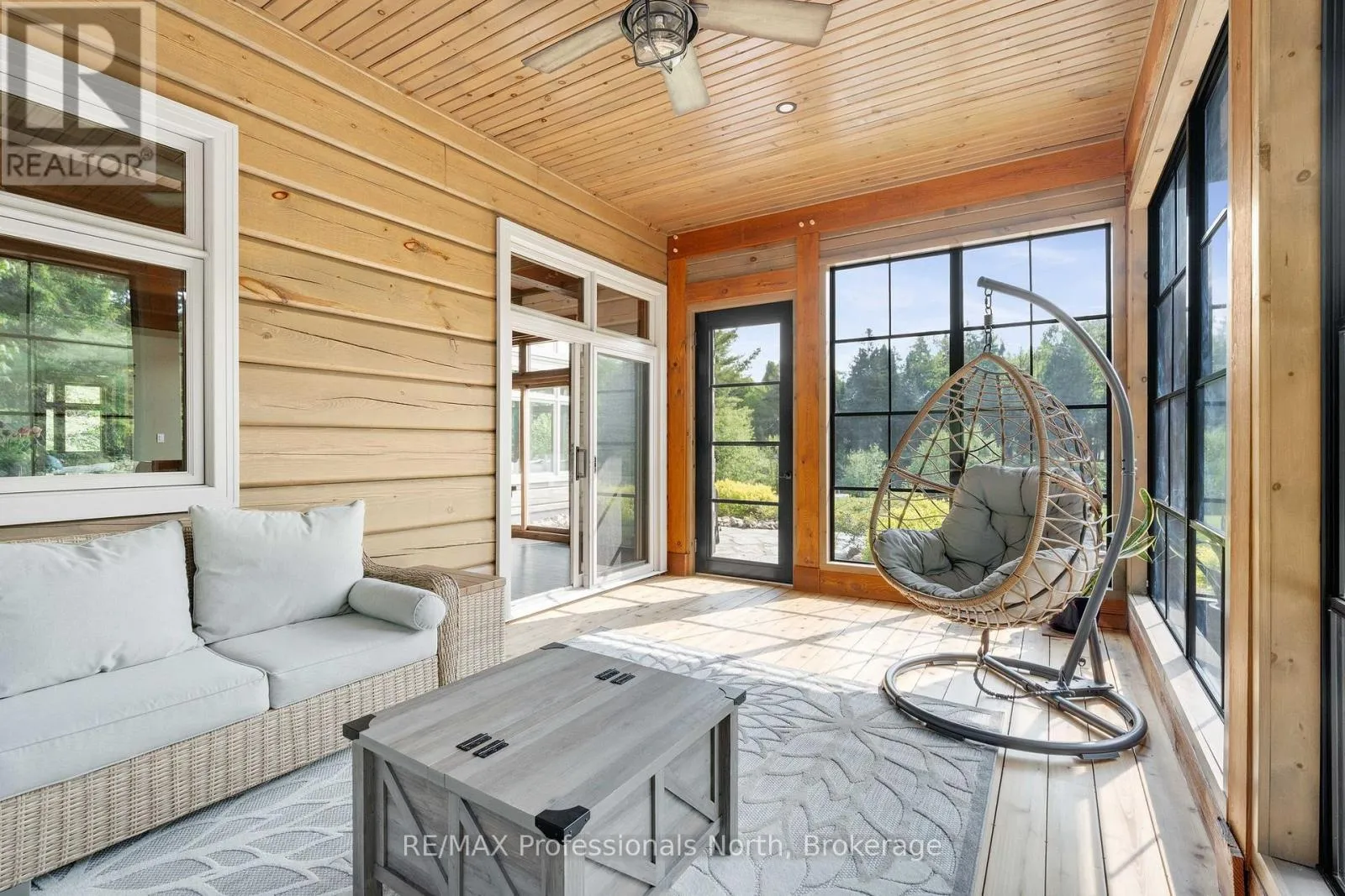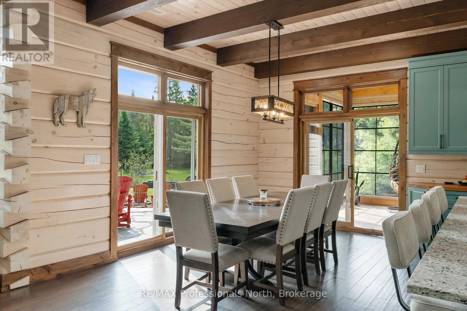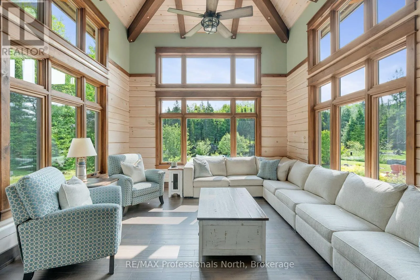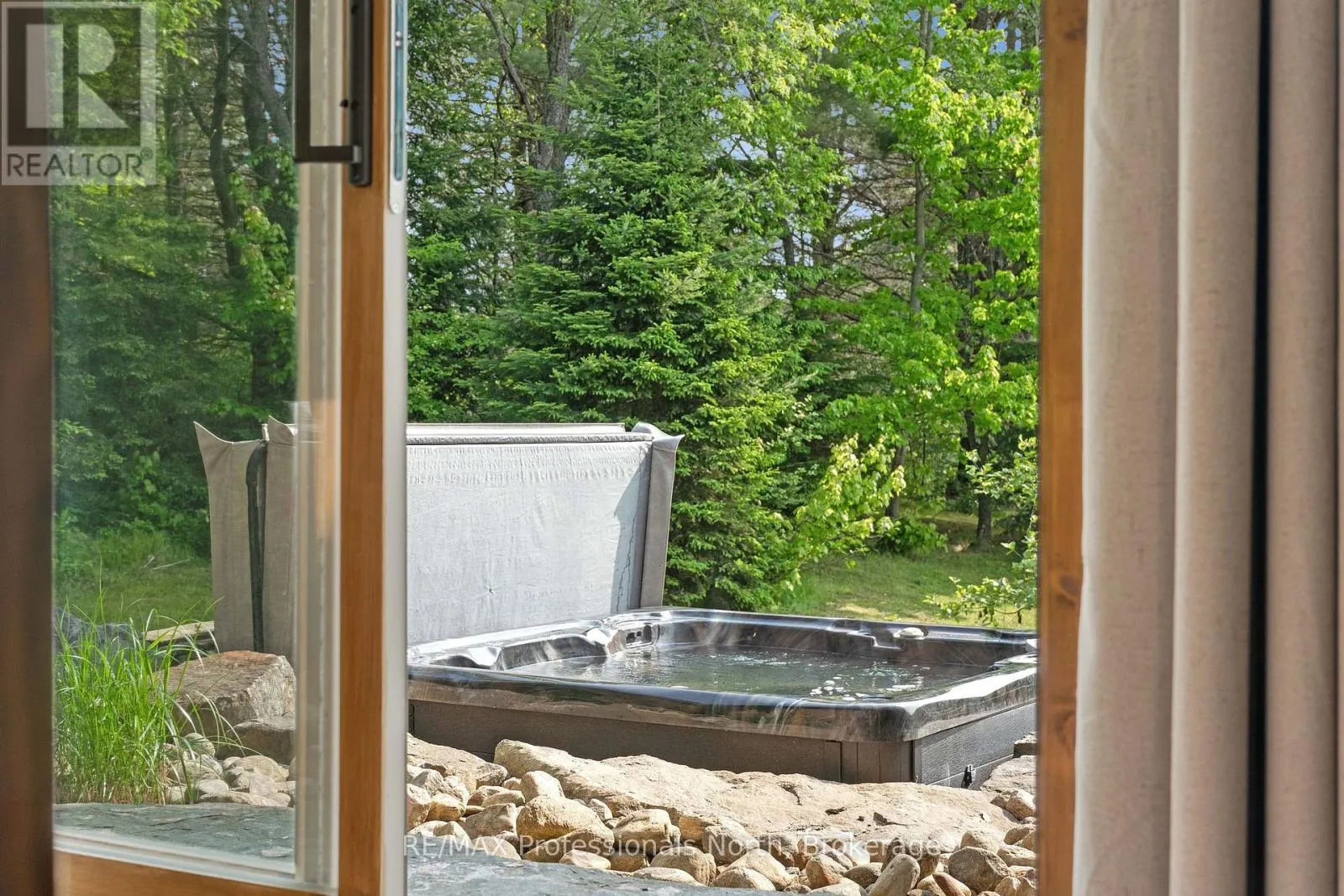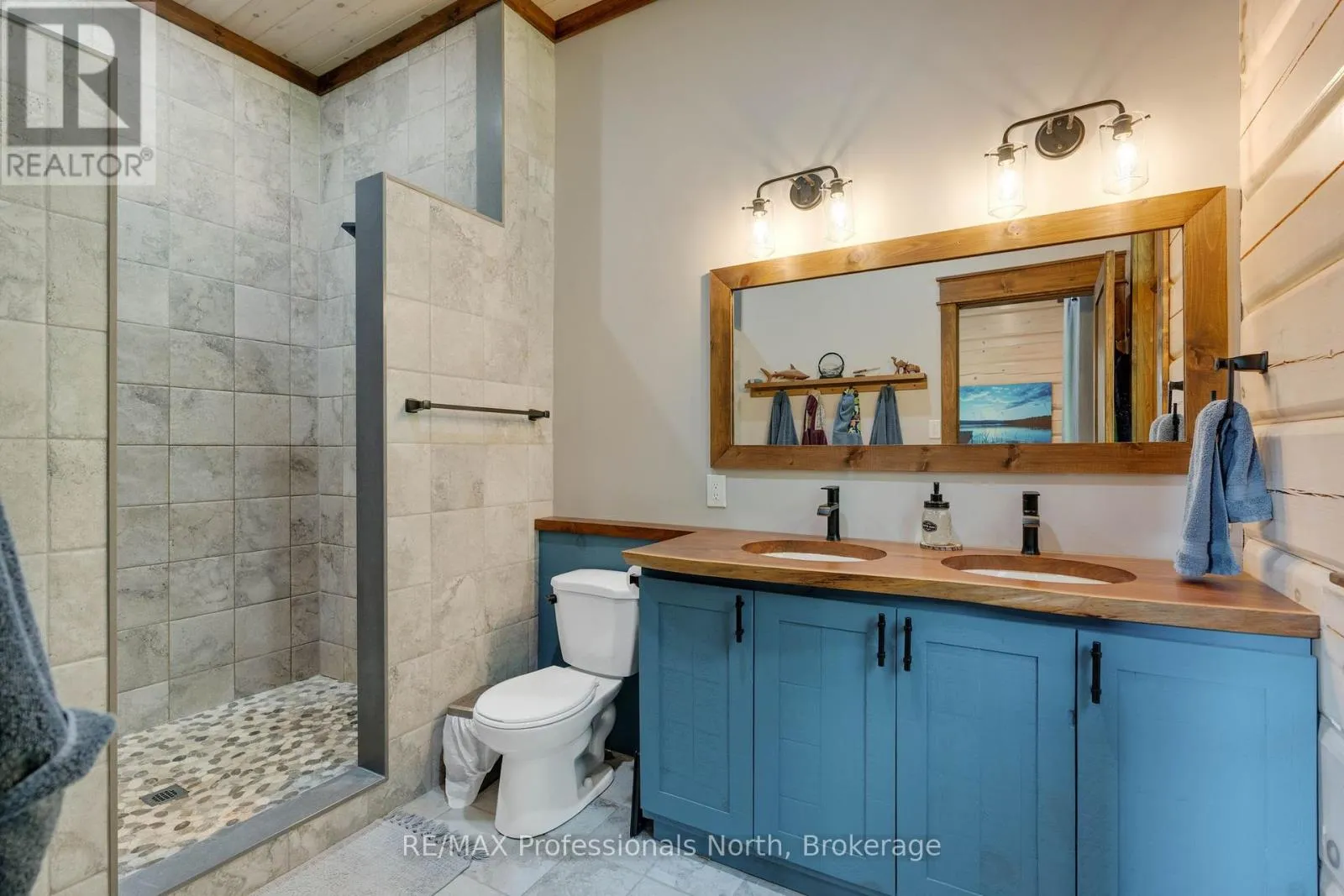 Cross Streets: Bonnell & Highfalls Road. ** Directions: HWY 11 to high falls road, left onto bonnel road, sop few houses in on left. Nestled along the pristine Muskoka River sitting on 1.37 acres and 215 feet of riverfront, just minutes from downtown Bracebridge renowned for its small town charm and as a gateway to the natural beauty of Muskoka this award-winning luxury custom log bungalow offers timeless elegance and modern convenience in a premium riverfront setting. Located just off Highway 11, the property delivers ideal accessibility while offering serene privacy that feels worlds away. Built in 2020, this meticulously crafted True North Log Home greets you with impressive curb appeal and thoughtful detail at every turn. Inside, the 8x12 white pine logs, soaring ceilings, white-washed pine accents, and rich dark wood beams set a warm and sophisticated tone. The open-concept layout features 3 spacious bedrooms and 2 full bathrooms, with radiant in-floor heating powered by a propane boiler, plus a forced-air furnace and central A/C ensuring year-round comfort. Maple flooring flows throughout, accented by granite stone and tile in the entryways and bathrooms. The chef-inspired kitchen with a 10'x5' island is perfect for entertaining gatherings of any size, while the great room showcases a stunning granite floor-to-ceiling wood burning fireplace. The Muskoka room offers a peaceful retreat to take in the sounds of nature. while the primary bedroom is a true sanctuary, complete with a walk-in closet, elegant ensuite, and a granite stone walkout to a private sunken 7x7 hot tub. Outside, professionally landscaped gardens feature natural granite, river rock, and cedar mulch. The fully insulated 26'x25' garage is not to be overlooked, offering in-floor heat, dual floor drains, 8'x9' automatic garage doors, and wired for an EV charger ideal for luxury vehicles or passionate hobbyists. (id:27476)