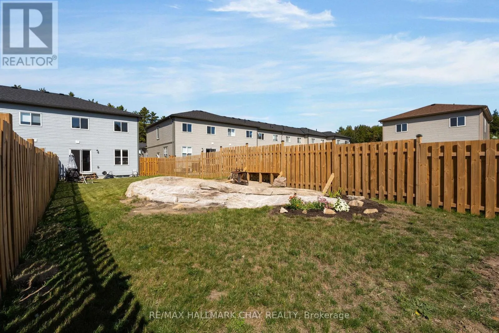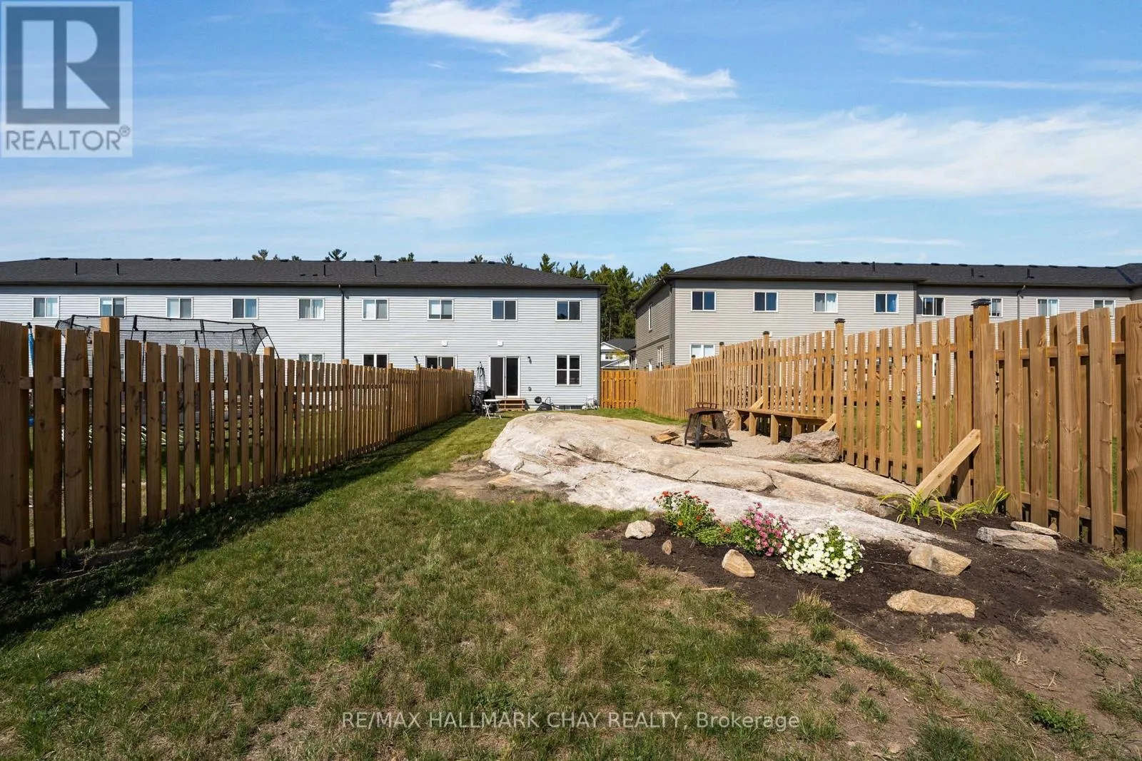 Cross Streets: Nicole Park / Quinn Forest. ** Directions: Manitoba to Quinn Forest to Nicole Park. This beautifully maintained 2-year-old, end-unit townhouse offers the perfect blend of modern comfort and family-friendly living in the heart of Muskoka. With over 1,300 sq. ft. of bright, open-concept space, this home features 3 spacious bedrooms and 3 bathrooms, thoughtfully designed for todays lifestyle. The main floor boasts a stylish kitchen with quality finishes, stainless steel appliances, and island with breakfast bar, all flowing seamlessly into the living room with a walkout to the backyard - perfect for kids, pets, or evening BBQs. Upstairs, the primary suite includes a private ensuite, while two additional bedrooms provide plenty of space for family, guests, or a home office. An attached garage adds everyday convenience. The separate side entrance to the basement is a standout feature, with a bathroom rough-in and egress window, making it easy to create an in-law suite or extra living space to suit your family's needs. The extra deep 25'x156' lot provides ample backyard space, with your own piece of the Canadian Shield adding that beloved Muskoka character. Located in a welcoming Bracebridge community, you'll love being close to schools, parks, shopping, and recreation. Whether its a Saturday morning downtown, a stroll by the Muskoka River, or a quick drive to nearby trails and lakes, this location has something for everyone. Don't miss your chance to move into a modern home in a family-oriented neighbourhood, where community, comfort, and Muskoka living come together. (id:27476)