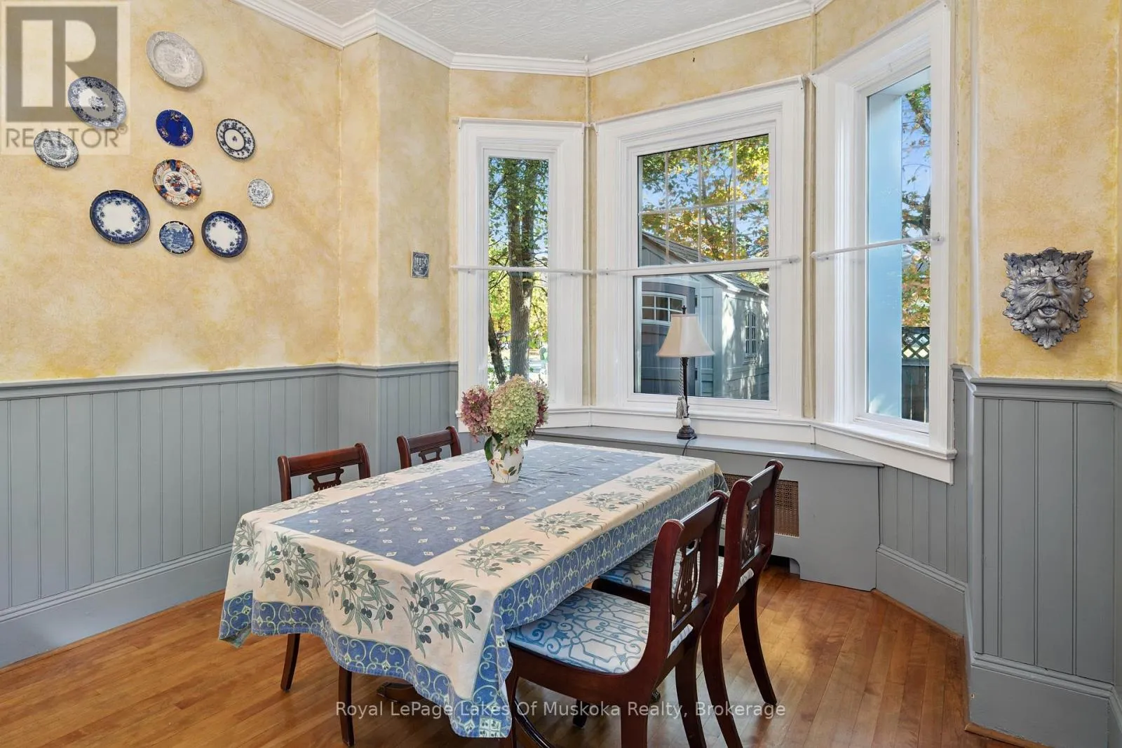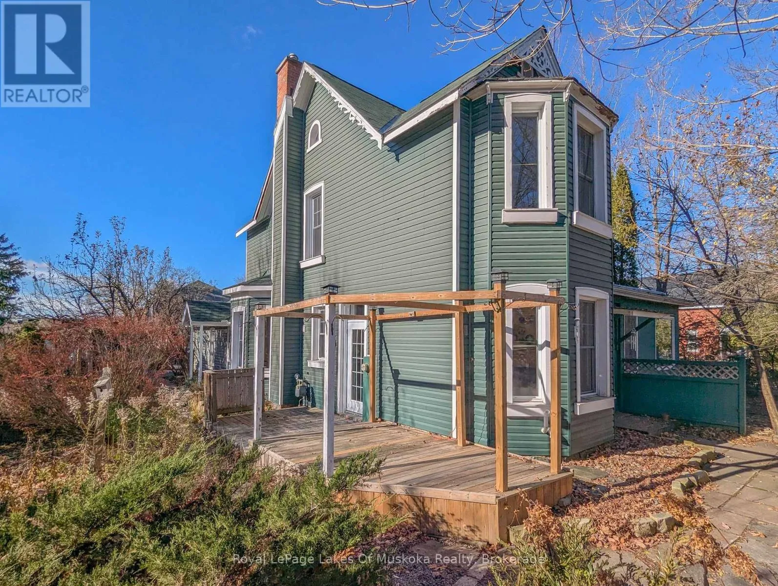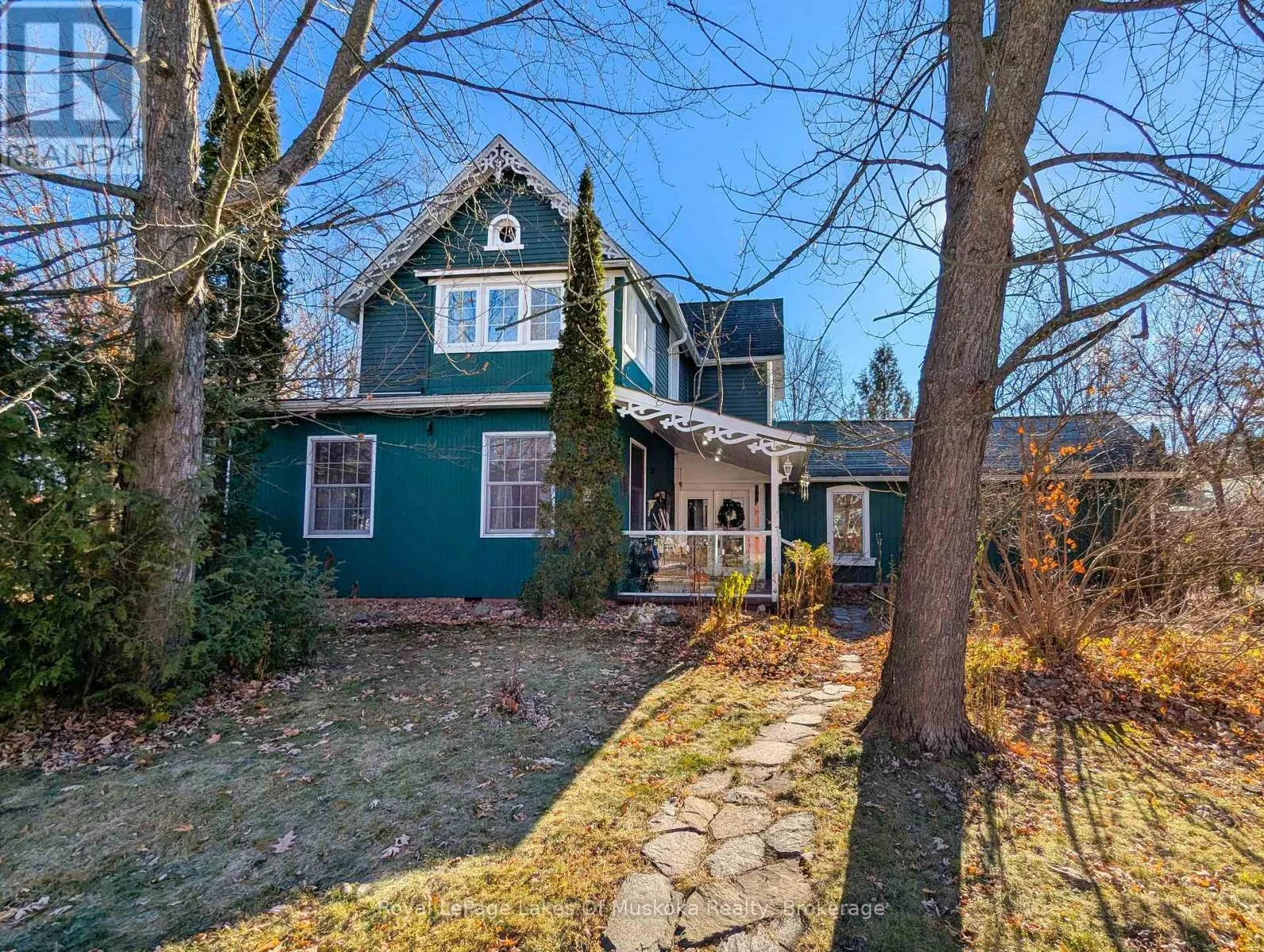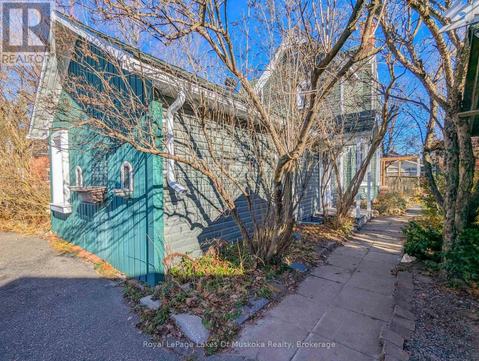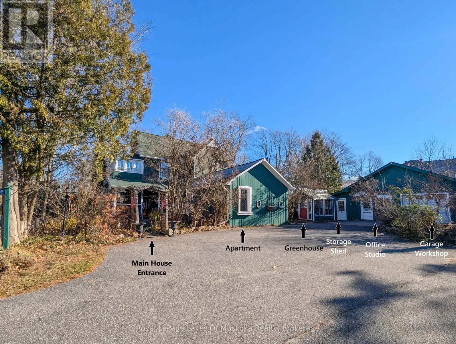 Cross Streets: Quebec & Kimberley. ** Directions: Corner of Quebec & Corner of Quebec & Kimberley. 3-BDRM HOME + 1-BDRM APARTMENT + SEPARATE 269 SQFT STUDIO/OFFICE + 23'x11' WORKSHOP/GARAGE. Step inside the main house through the covered sitting porch and convenient mudroom, then in to a large foyer with great storage. The main floor layout provides for a spacious kitchen/dining area (with direct access to the backyard deck for BBQing and relaxing), living room, family room with gas fireplace, and separate laundry room. Upstairs provides 3 bedrooms, a 4pc bathroom and cozy sunroom nestled among trees overlooking the front and side yards. Downstairs, an intact original stone basement completely spray foamed/sealed, offering 650+ sqft for storage or craft/workshop area. The attached LEGAL 400 SQFT APARTMENT offers 1-bedroom, a full kitchen combined with living area, a 4pc bathroom with clawfoot tub, and private entrance (with optional interior access to the Main House). Outside, the detached garage houses many opportunities including 162 sqft of storage in the shed space, 23x11 workshop/garage with loft storage, and 269 sqft studio/office space with propane fireplace and 2pc bath perfect for the artist or home-based business such as therapist, accountant, and B&B. A century home with traditional high ceilings throughout, timeless charm and character, an oasis of a backyard with beautiful gardens, mature trees, ornamental ponds, greenhouse, and additional shed on the east side of the home all found on a remarkably private property for an in-town corner lot. Only a 6-9 minute walk to dining, entertainment, shopping, swimming and walking trails around the Muskoka River. Book today to tour this Legal Duplex. (id:27476)