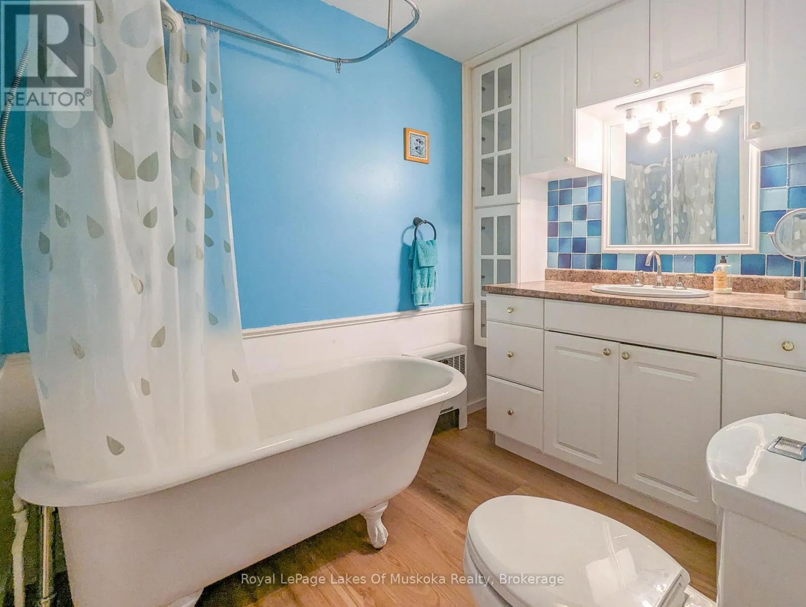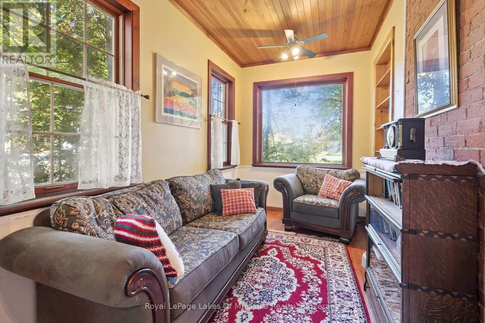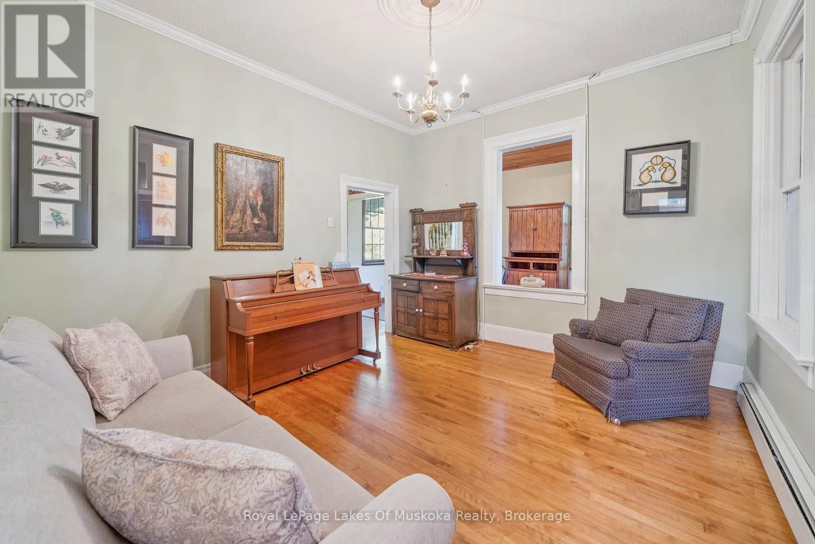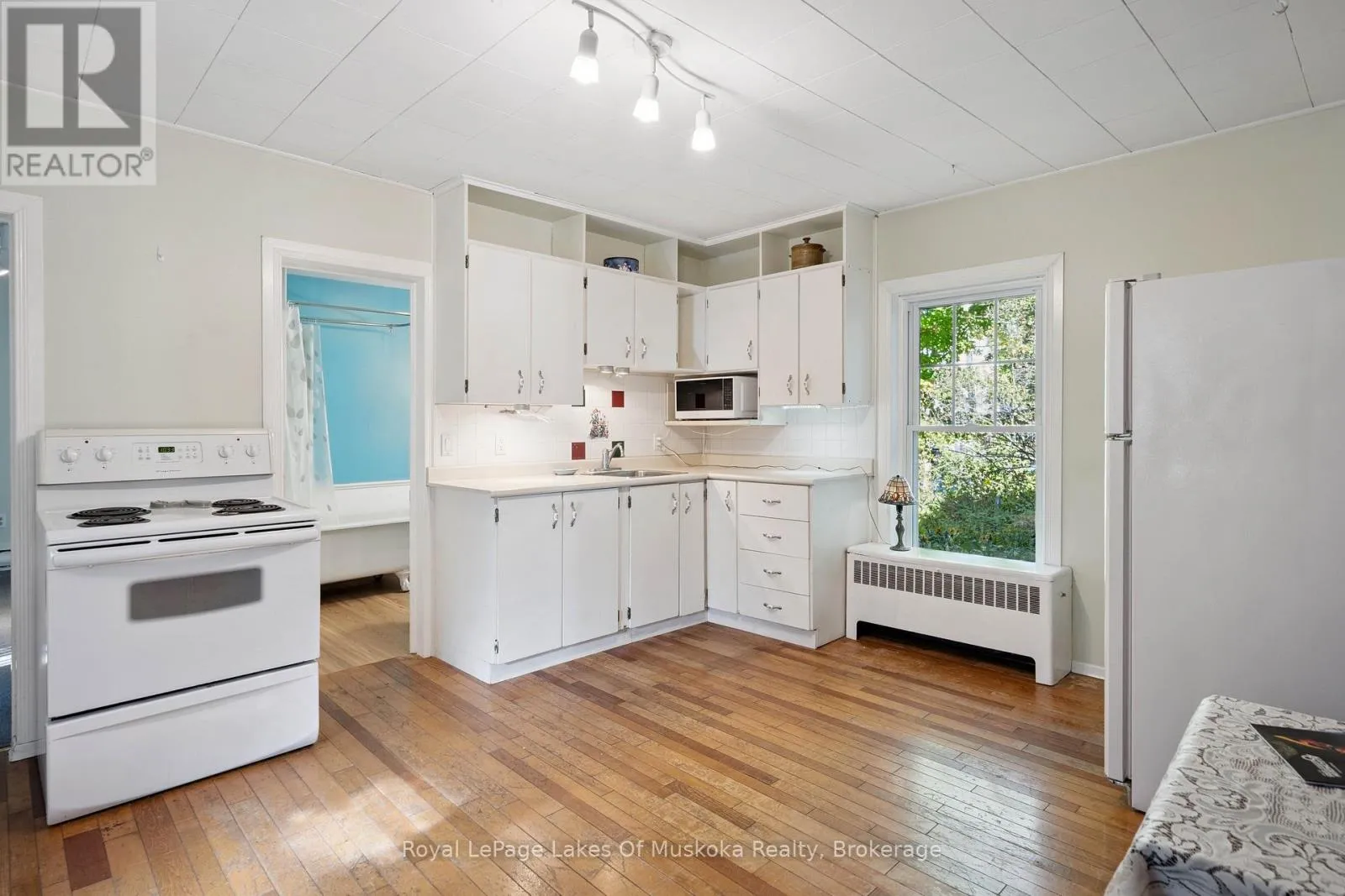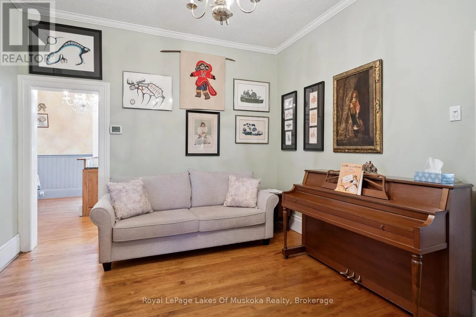 Cross Streets: Quebec & Kimberley. ** Directions: Corner of Quebec & Corner of Quebec & Kimberley. 3-BDRM HOME + 1-BDRM APARTMENT + SEPARATE 269 SQFT STUDIO/OFFICE + 23'x11' WORKSHOP/GARAGE. Step inside the main house through the covered sitting porch and convenient mudroom, then in to a large foyer with great storage. The main floor layout provides for a spacious kitchen/dining area (with direct access to the backyard deck for BBQing and relaxing), living room, family room with gas fireplace, and separate laundry room. Upstairs provides 3 bedrooms, a 4pc bathroom and cozy sunroom nestled among trees overlooking the front and side yards. Downstairs, an intact original stone basement completely spray foamed/sealed, offering 650+ sqft for storage or craft/workshop area. The attached LEGAL 400 SQFT APARTMENT offers 1-bedroom, a full kitchen combined with living area, a 4pc bathroom with clawfoot tub, and private entrance (with optional interior access to the Main House). Outside, the detached garage houses many opportunities including 162 sqft of storage in the shed space, 23x11 workshop/garage with loft storage, and 269 sqft studio/office space with propane fireplace and 2pc bath perfect for the artist or home-based business such as therapist, accountant, and B&B. A century home with traditional high ceilings throughout, timeless charm and character, an oasis of a backyard with beautiful gardens, mature trees, ornamental ponds, greenhouse, and additional shed on the east side of the home all found on a remarkably private property for an in-town corner lot. Only a 6-9 minute walk to dining, entertainment, shopping, swimming and walking trails around the Muskoka River. Book today to tour this Legal Duplex. (id:27476)
