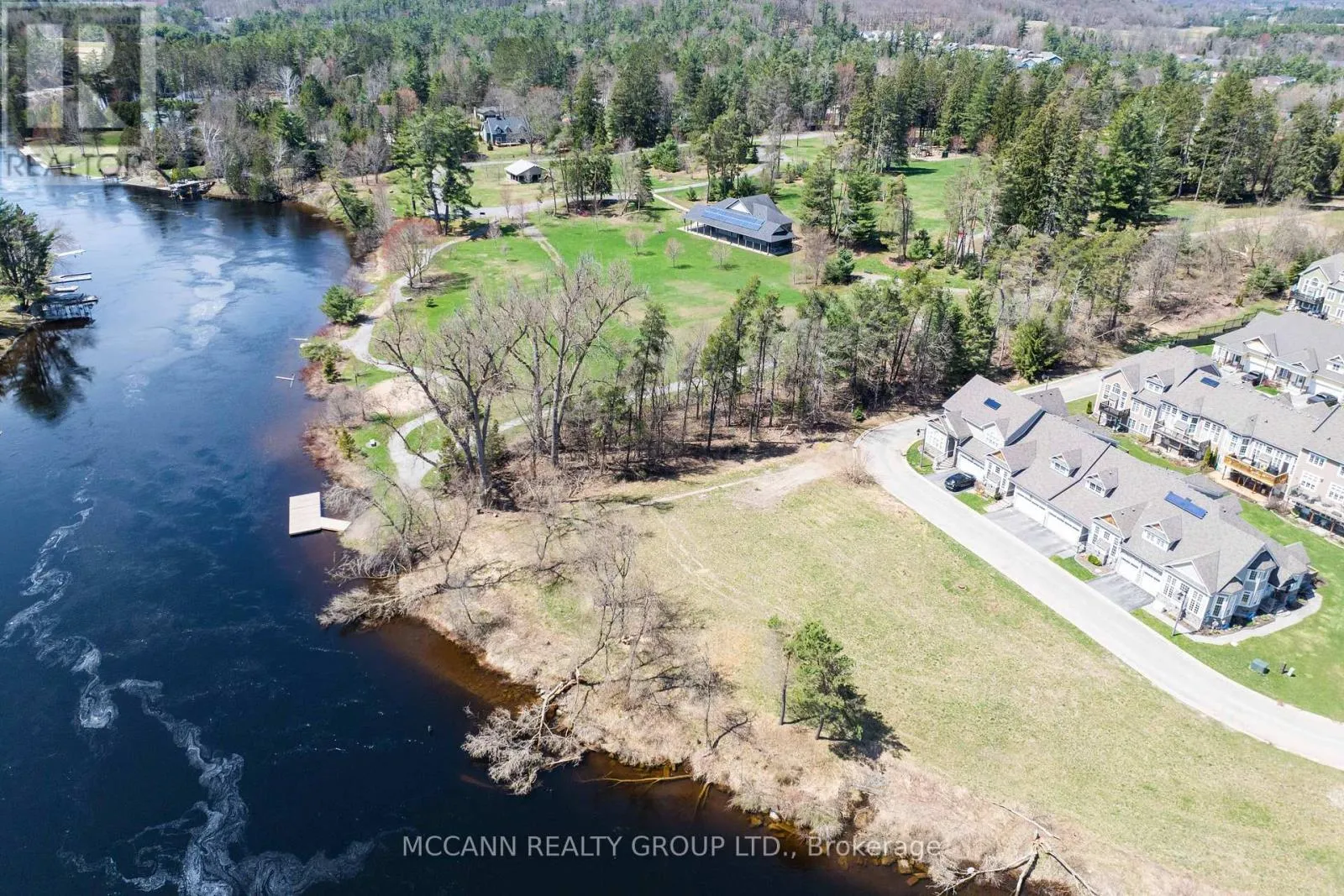 Cross Streets: Wellington & Santa's Village Road. ** Directions: Wellington and Santa's Village. Rare Waterfront Development Opportunity on the Muskoka River! This is one of only two blocks available in an exclusive development, build three attached homes. A unique chance to build your dream waterfront residences. Just steps to the water and a short walk to shops and restaurants this location checks all the boxes for lifestyle and convenience. Whether you're a builder, investor, or looking to collaborate with the builder who constructed the other stunning homes in the complex, this offering delivers exceptional flexibility and value. The property includes three premium parcels sold as one, all fronting directly on the serene Muskoka River ideal for luxury townhomes or a shared project between friends or family. Picture three individuals each purchasing a lot to build custom attached homes in a spectacular riverside setting. Don't miss this incredible opportunity to own and build on Muskoka waterfront. The common element condo corp includes lawn care in the summer and snow removal for your driveway is done in the winter. (id:27476)