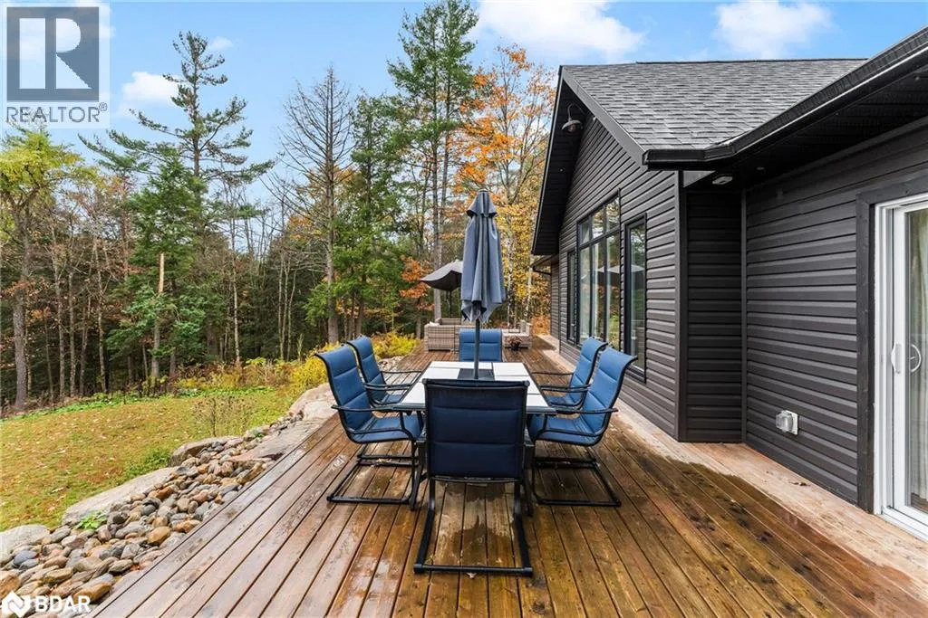 ON-11 to exit 182 towards ON-118 E. Keep right at fork and merge onto ON-118 E, right on to Germania Rd, right to stay on Germania Rd, continue straight onto Reay Rd. to 1698 on the left. Sign on property. Discover peaceful country living on nearly 10 private acres with this bright, thoughtfully designed 3-bedroom bungalow. With over 1,600 sq. ft. of living space and in-floor heating throughout, this home offers comfort and style year-round, whether as a full-time residence or weekend retreat. The spacious living room boasts a soaring cathedral ceiling and a cozy woodstove, creating a warm, inviting space to relax. The open-concept kitchen flows seamlessly to a massive deck, perfect for BBQs, morning coffee, or simply enjoying the serene surroundings. Retreat to the primary suite featuring a private walkout, walk-in closet, and a stylish 3-piece ensuite with a custom-tiled shower. Step outside to a covered front porch, a cleared yard with firepit, and a large storage shed â ideal for outdoor gear, tools, or hobbies. With ample parking, total privacy, and a prime location just minutes to Hwy 11, Bracebridge, and Gravenhurst, this property blends tranquility with convenience. Experience the Muskoka lifestyle youâve been dreaming of â where every day feels like a getaway. (id:27476)