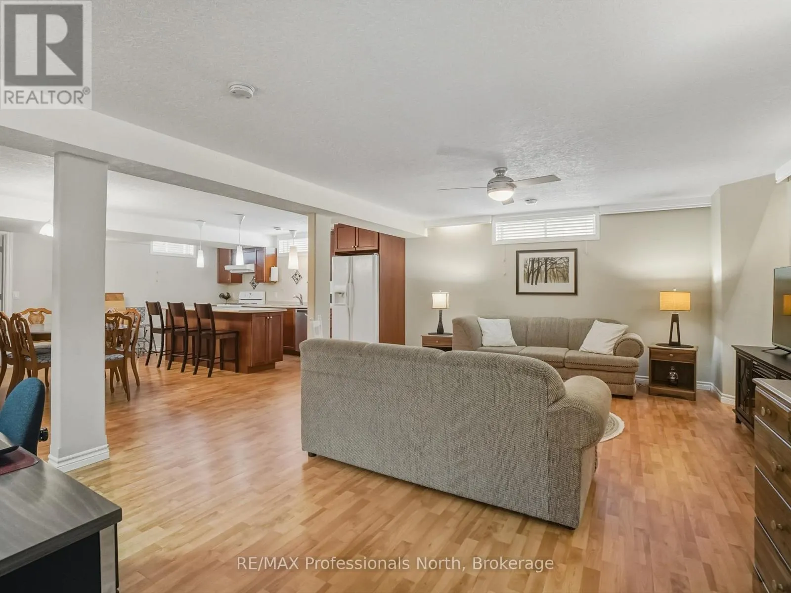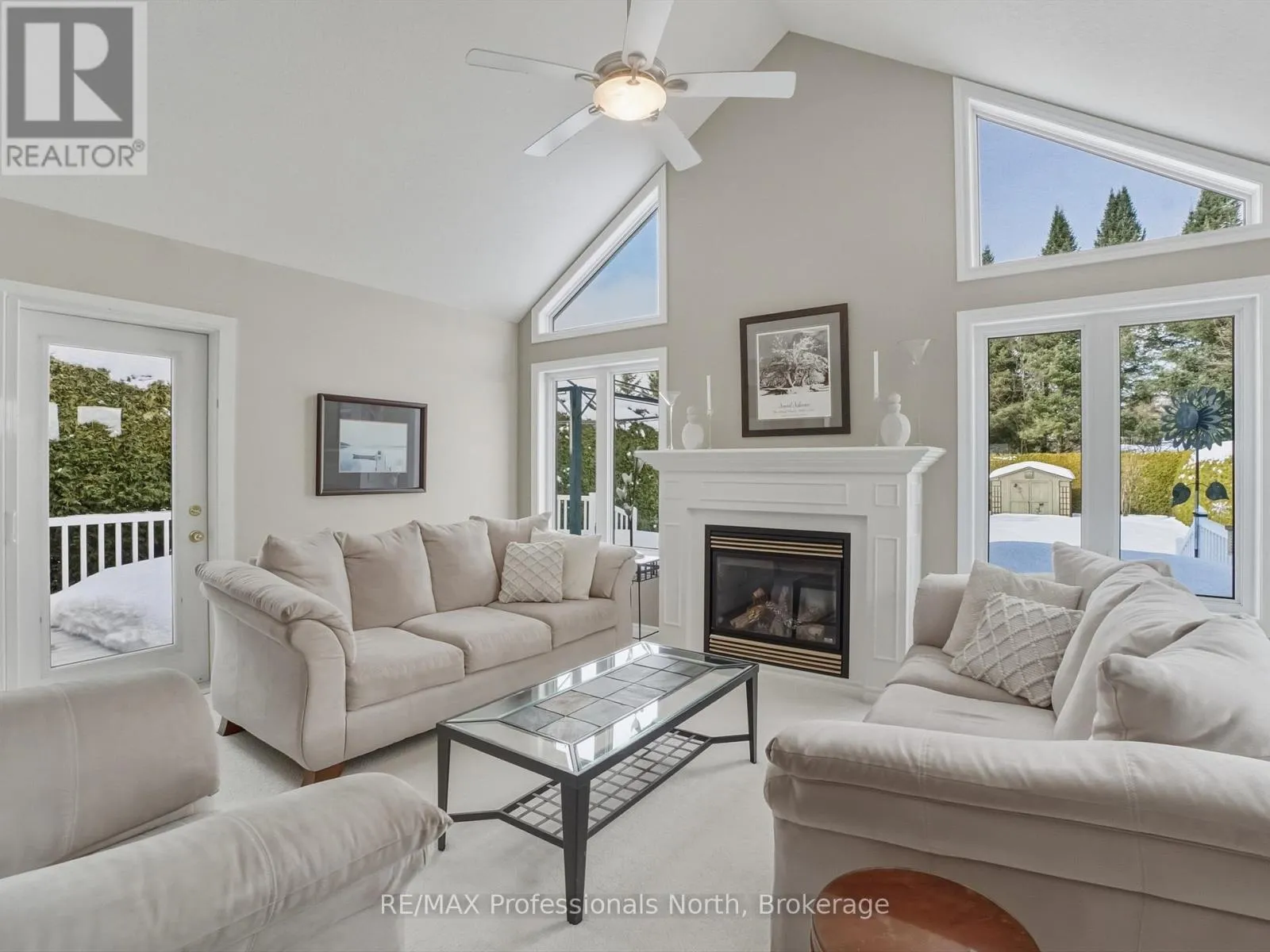 Cross Streets: Wellington & Dill. ** Directions: Wellington St. to Dill St. to Ewing St. to #77 (SOP). IMMACULATE and beautifully maintained, this 2+1 BDRM, 3 BTHRM BUNGALOW (approx 2300 sq ft total finished area) is ideally located in a HIGHLY SOUGHT AFTER, fully serviced neighbourhood of similar homes-CENTRALLY LOCATED within easy walking and biking distance to all the amenities of Bracebridge. The MAIN LEVEL offers a bright and airy 1,279 sq. ft. open-concept layout, highlighted by VAULTED CEILINGS and a natural GAS FIREPLACE anchoring the living and dining areas. Large windows frame the views of the exceptionally PRIVATE, well-landscaped backyard, completely enclosed by beautiful mature CEDAR HEDGES, charming pergola, two garden sheds and a walkout to a spacious and PRIVATE REAR DECK-perfect for outdoor entertaining or quiet relaxation. The main floor also features a well appointed kitchen with adjacent pantry/laundry, generous primary bedroom with 4-PC ENSUITE, a second bedroom or home office, and a main 2-piece bathroom. The FULLY FINISHED LOWER LEVEL expands the living space with a family room, kitchen w/large island, an additional bedroom, a 4-piece bathroom, and ample utility and storage space-ideal for guests, extended family, or IN LAW POTENTIAL. ADDITIONAL HIGHLIGHTS include hardwood, tile, carpet and laminate flooring, a covered front porch, double paved driveway, interlock brick walkways, high efficiency natural gas heating, AC, HRV and insulated/drywalled attached garage. This move-in-ready home offers low maintenance, comfort, privacy, and an unbeatable location-this is one you won't want to miss! (id:27476)