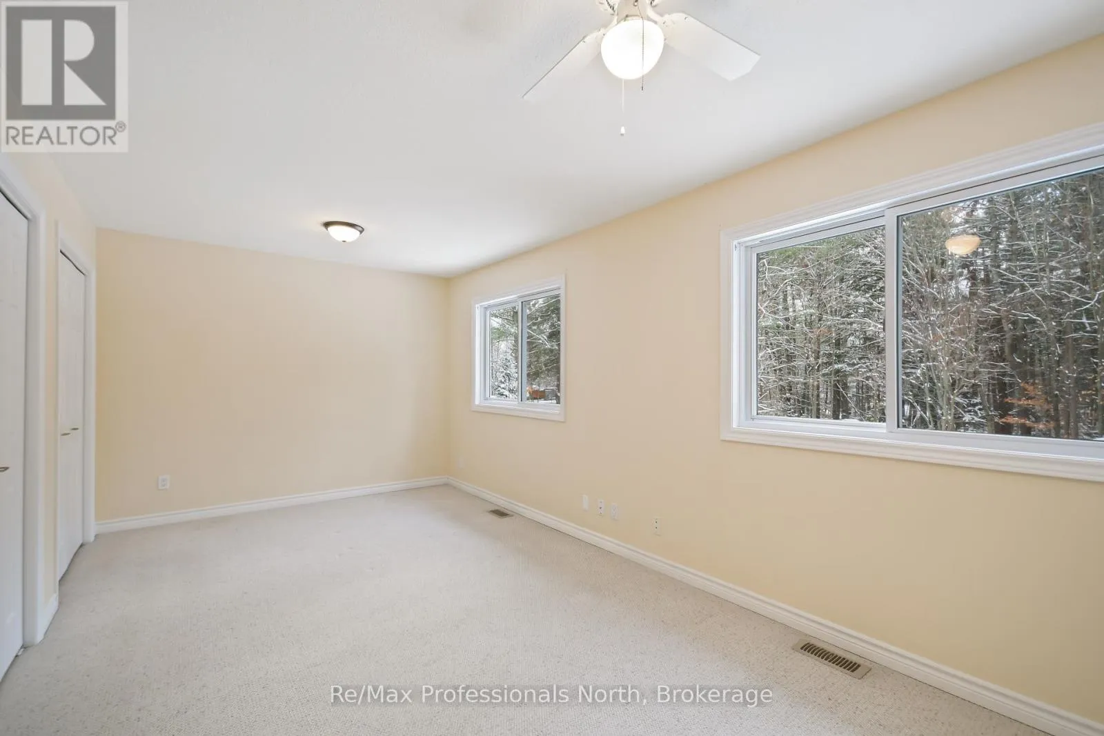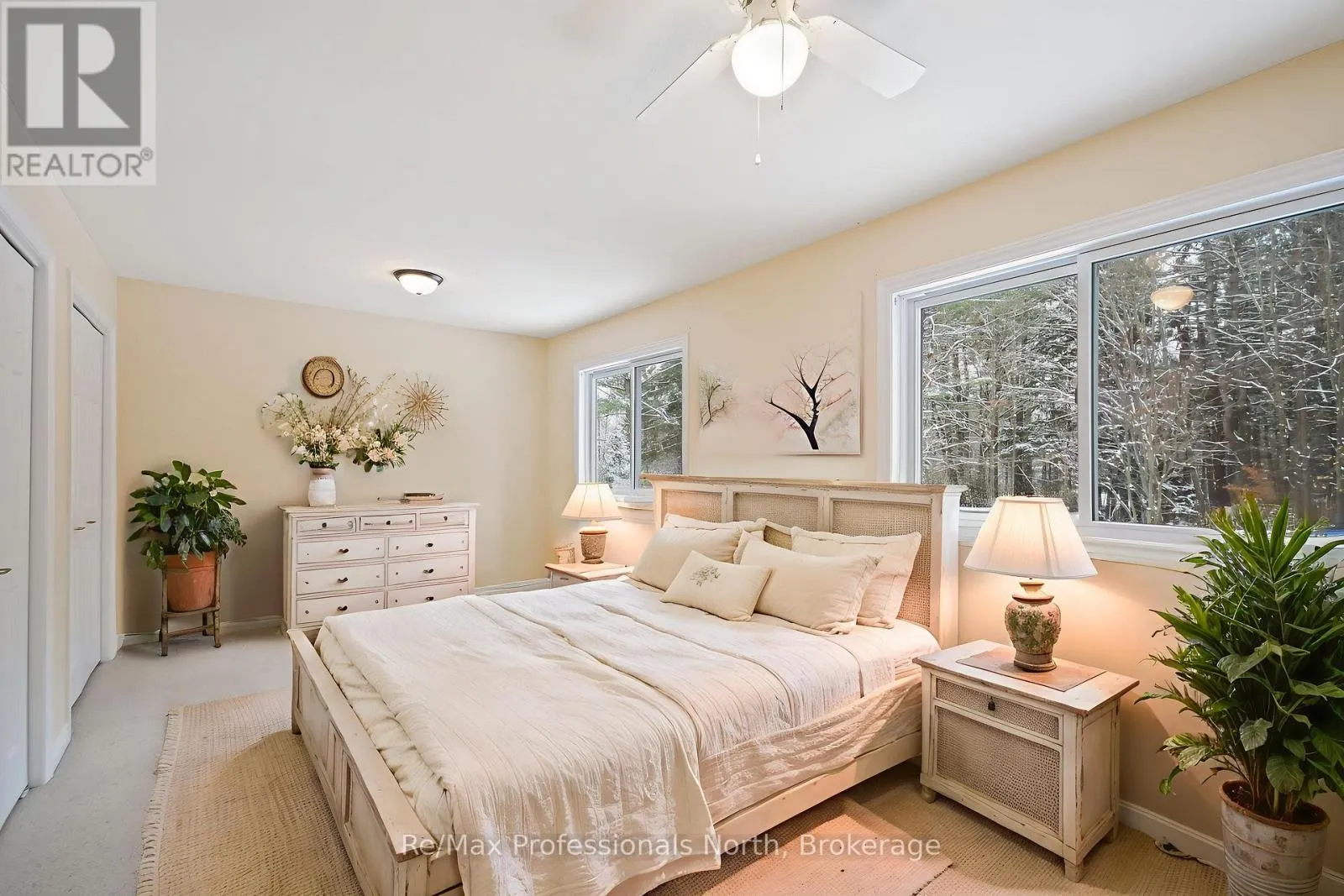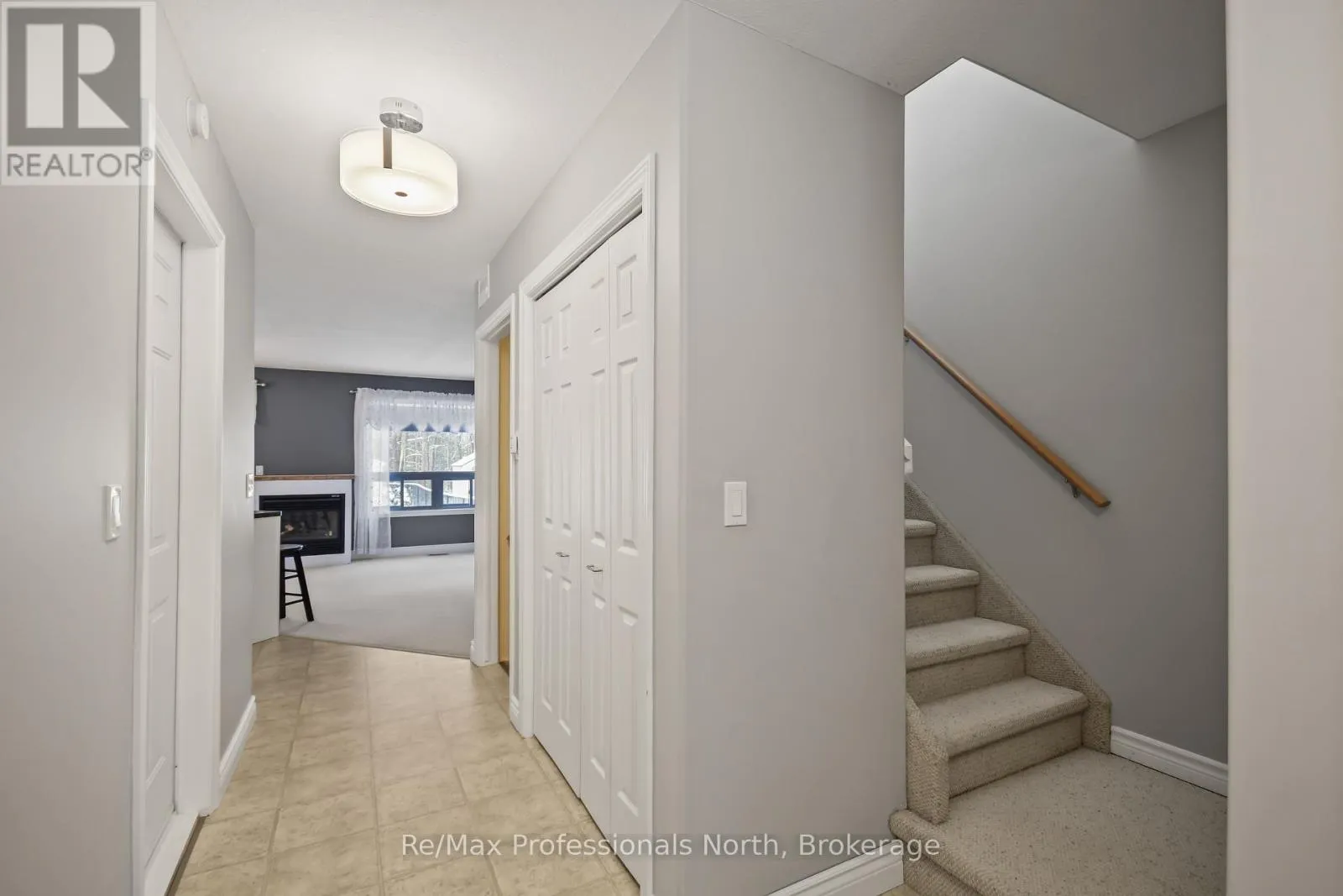 Cross Streets: Cedar Lane and Pine Street. ** Directions: Cedar Lane to Pine Street to S.O.P. Welcome to this beautifully maintained 1627 sqft freehold townhome with 2 bedrooms, 3 bathrooms and fully finished basement in the heart of Bracebridge. The main floor welcomes you with a bright, open-concept layout that seamlessly connects the living room, dining area, and kitchen. Enjoy a walkout to the back deck with views of the beautiful backyard-perfect for morning coffee or summer entertaining. The modern kitchen offers ample counter and cupboard space, ideal for everyday living, while a 2-piece powder room adds main-level convenience. Upstairs, you'll find a spacious primary bedroom overlooking the backyard and forest, along with a generous second bedroom and a large 4-piece bathroom. The fully finished basement provides excellent versatility, featuring a rec room, 3-piece bathroom, laundry area, utility room, and storage. The rec space can easily be converted into a third bedroom with its own ensuite, perfect for guests or extended family. Large windows throughout fill the home with natural light and offer views of mature trees and greenspace, creating a peaceful, Muskoka-like atmosphere right in town. Step out to the back deck and unwind beneath the charming covered pergola, surrounded by tranquil gardens.This home has been lovingly updated for low-maintenance living, with a new garage door, newer roof shingles (2020), newer paved driveway (2021), and a new shed/workshop roof (2025). Modern comforts include a new Ecobee smart thermostat with motion sensors, central air conditioning, and a cozy natural gas fireplace. Parking is generous, with space for two vehicles in the driveway and one in the garage, plus visitor parking right across the street. Outside, enjoy mature landscaped gardens, fully fenced, a large shed, covered deck, and fire pit area - perfect for cozy evenings outdoors. Located within walking distance to downtown shops, schools, trails, and local amenities, this clean move-in ready townhouse has pride of ownership! (id:27476)