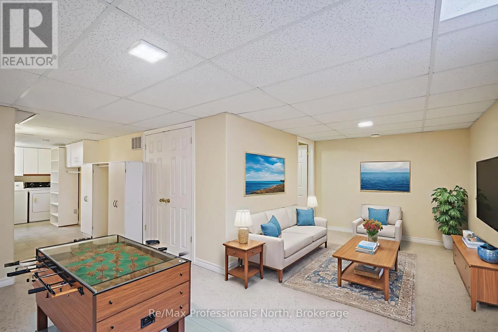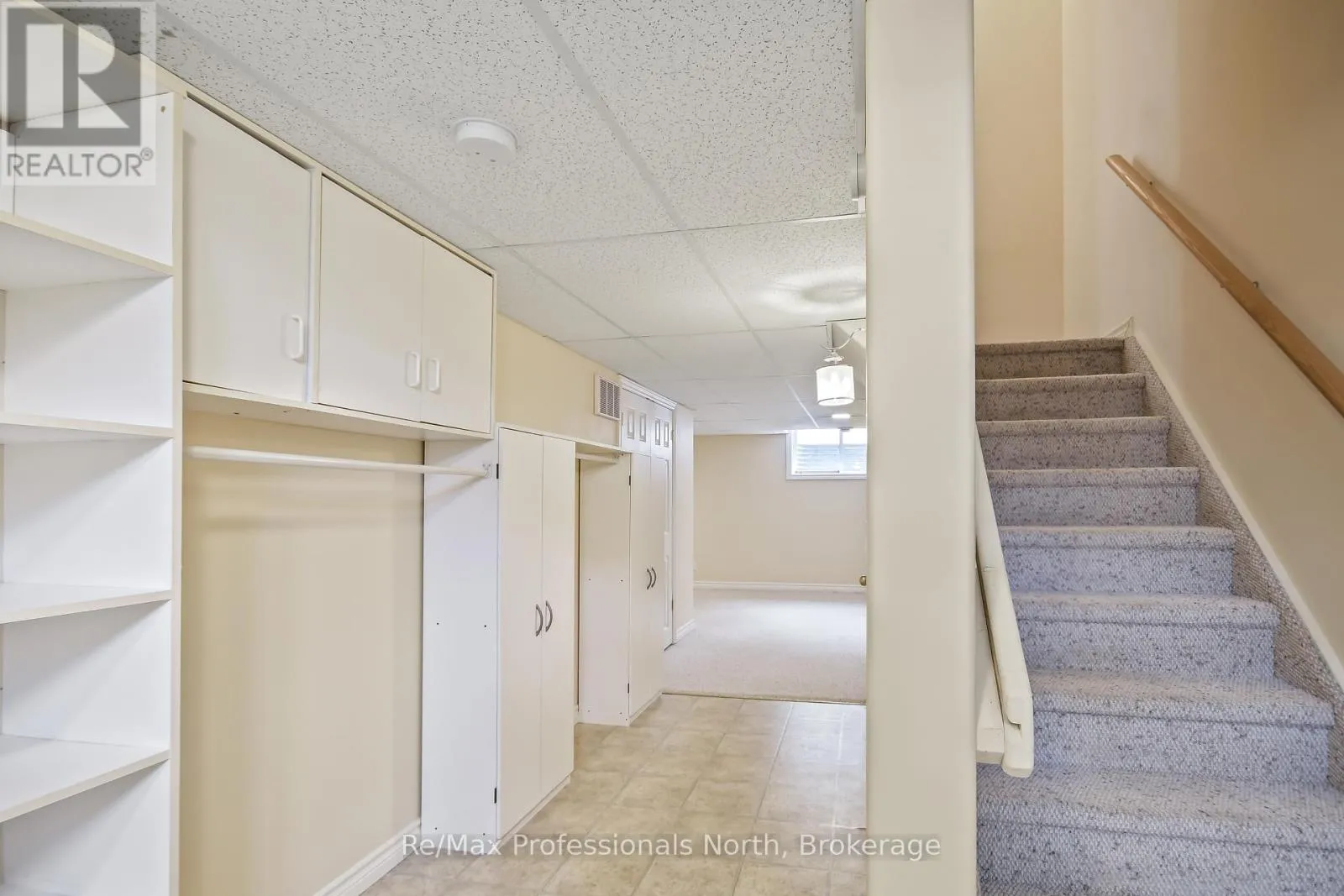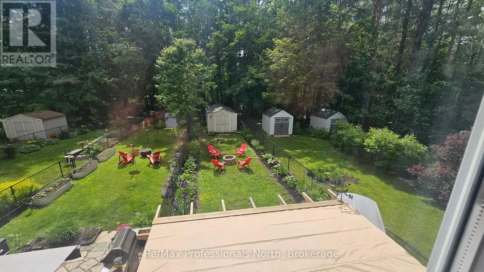 Cross Streets: Cedar Lane and Pine Street. ** Directions: Cedar Lane to Pine Street to S.O.P. Welcome to this beautifully maintained 1627 sqft freehold townhome with 2 bedrooms, 3 bathrooms and fully finished basement in the heart of Bracebridge. The main floor welcomes you with a bright, open-concept layout that seamlessly connects the living room, dining area, and kitchen. Enjoy a walkout to the back deck with views of the beautiful backyard-perfect for morning coffee or summer entertaining. The modern kitchen offers ample counter and cupboard space, ideal for everyday living, while a 2-piece powder room adds main-level convenience. Upstairs, you'll find a spacious primary bedroom overlooking the backyard and forest, along with a generous second bedroom and a large 4-piece bathroom. The fully finished basement provides excellent versatility, featuring a rec room, 3-piece bathroom, laundry area, utility room, and storage. The rec space can easily be converted into a third bedroom with its own ensuite, perfect for guests or extended family. Large windows throughout fill the home with natural light and offer views of mature trees and greenspace, creating a peaceful, Muskoka-like atmosphere right in town. Step out to the back deck and unwind beneath the charming covered pergola, surrounded by tranquil gardens.This home has been lovingly updated for low-maintenance living, with a new garage door, newer roof shingles (2020), newer paved driveway (2021), and a new shed/workshop roof (2025). Modern comforts include a new Ecobee smart thermostat with motion sensors, central air conditioning, and a cozy natural gas fireplace. Parking is generous, with space for two vehicles in the driveway and one in the garage, plus visitor parking right across the street. Outside, enjoy mature landscaped gardens, fully fenced, a large shed, covered deck, and fire pit area - perfect for cozy evenings outdoors. Located within walking distance to downtown shops, schools, trails, and local amenities, this clean move-in ready townhouse has pride of ownership! (id:27476)