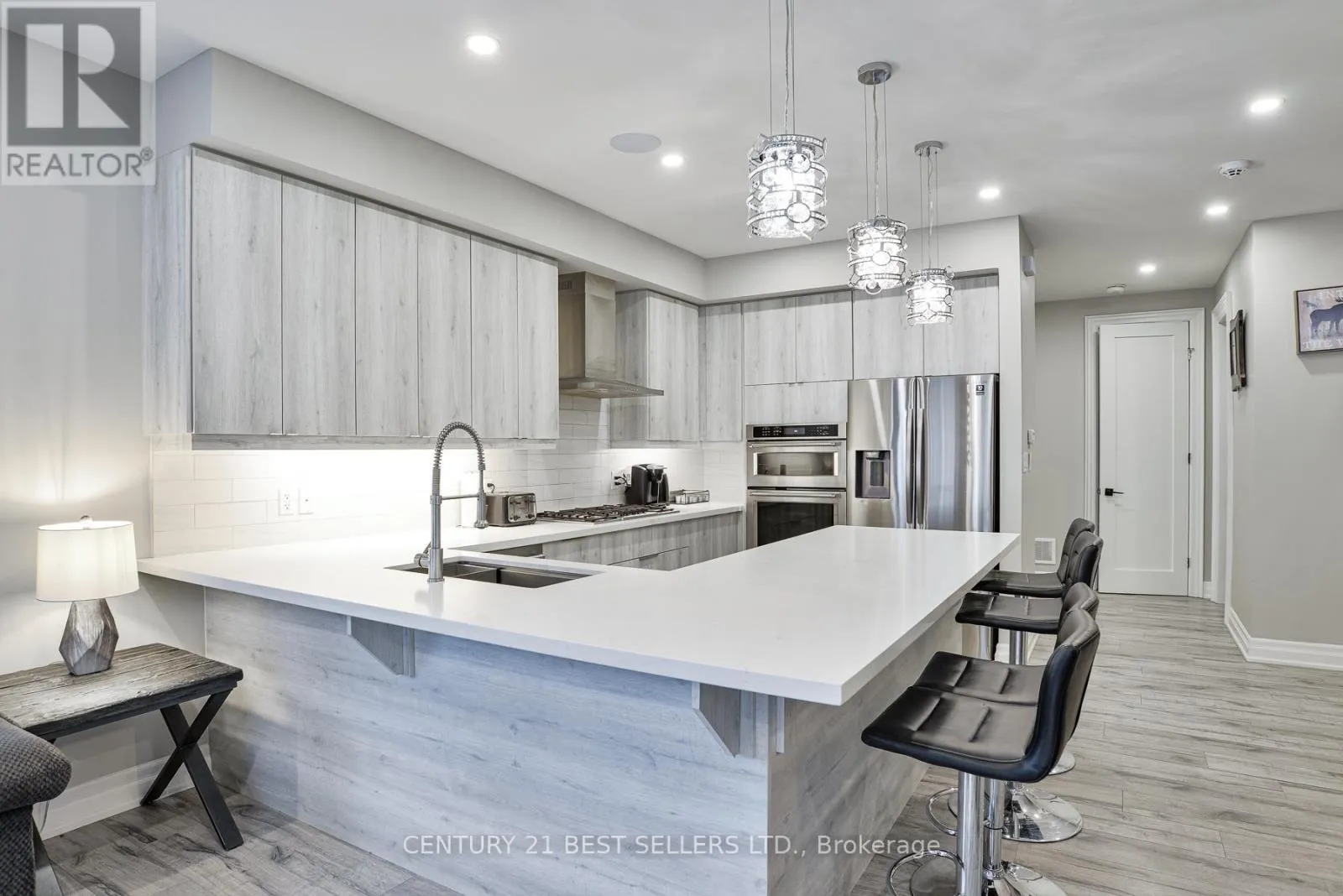 Ecclestone and Shaw One of a kind, Spectacular End Corner Unit Townhome! In the beautiful Bracebridge you'll find yourself living the Muskoka Dream. Public water access to the Muskoka river. This reputable builder has made his mark, with his luxury end finishes. This corner unit stands with 9 Ft ceilings throughout the home. 4 Bedrooms & 5 Bathrooms includes a separate entrance from the garage to the finished lower level for guests, family or potential rental income. The backyard Oasis consists of a fully fenced yard covered patio, 6 monitor camera systems, ceiling speakers, alarm systems and door code for easy access. Don't miss this opportunity to own this once of a kind home in Bracebridge Muskoka!! (id:27476)