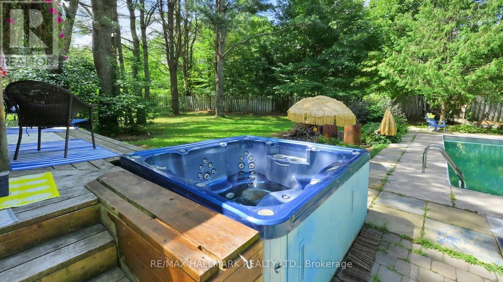 Manitoba St to McNabb to Sellens Tucked away from the road, this charming three-bedroom side split offers privacy and comfort in a family-friendly neighbourhood. Ideally located near the Bracebridge Sportsplex and High School, it's perfect for active families. The home sits on over half an acre, featuring beautiful gardens and a spacious, fenced backyard. Enjoy summer days in the in-ground saltwater pool or relax year-round in the six-seater hot tub. A single attached garage and a separate double detached garage provide ample storage and parking.The open-concept main floor includes a cozy living room with a stone fireplace, a large kitchen, and a dining area with a walk-out to the covered deck and backyard. Two generous bedrooms and a 4-piece bathroom complete the main level. Upstairs, the private third bedroom includes a luxurious 5-piece ensuite with heated floors. The basement is partially finished with a bright playroom, a laundry room, and a utility room, offering great potential for further customization.The home is on a septic system, with the tank replaced in 2017 for added peace of mind. This well-maintained property combines function, comfort, and outdoor enjoyment. Its an ideal home for families looking to settle in a welcoming community. (id:27476)