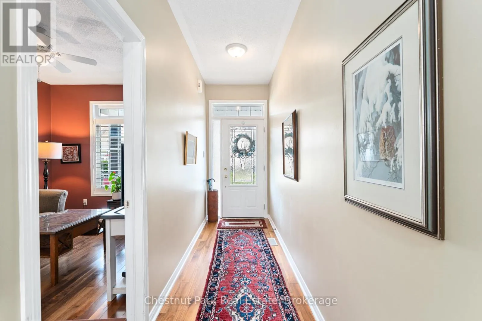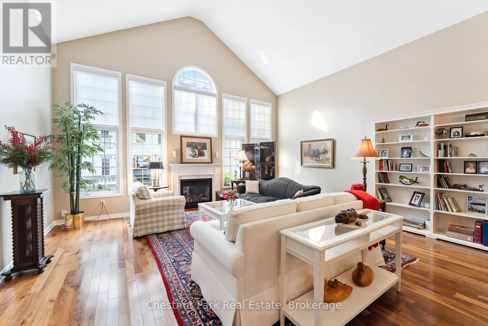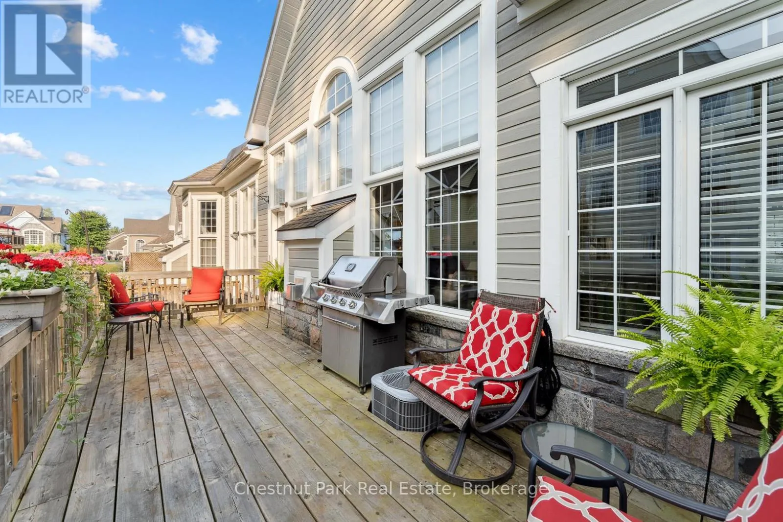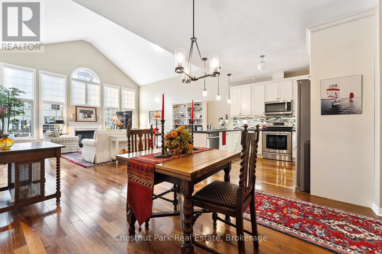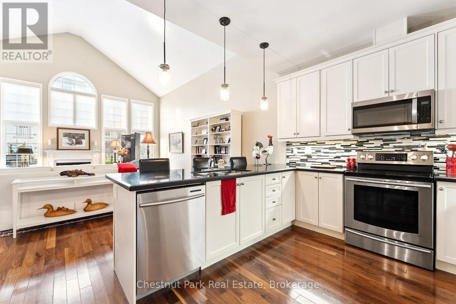 Cross Streets: Wellington St/Santas Village Road. ** Directions: Wellington St to Spencer St to 9 Stormont Cres. Nestled in the sought after Waterways Community in Bracebridge this beautifully upgraded two bedroom, two bathroom Townhome offers the perfect blend of comfort, style and location. Situated on a quiet cul-de-sac close to scenic Annie William's Park this home is ideal for those seeking a peaceful lifestyle with nature at your doorstep. Step inside to discover rich walnut floors that flow throughout the open concept living, kitchen and dining area, creating a warm and inviting atmosphere. The chef inspired kitchen is both functional and elegant boasting modern appliances, extended cabinetry, granite countertops and tons of storage-perfect for entertaining or quiet evenings in. The Living Room boasts cathedral ceilings, a gas fireplace and a wall of windows which bathe the space in natural light. The spacious Primary Suite features a luxurious four piece ensuite with all the comforts you deserve. A second full bathroom, guest bedroom/den and main floor laundry complete this thoughtfully designed layout. The front porch is the perfect place to relax and connect with neighbours or step outside to your expansive back deck where you'll enjoy privacy and stunning views of mature trees-a rare peaceful backdrop that truly sets this home apart. The large unfinished basement offers ample storage and is bursting with potential for those looking to increase living space, while the 1.5 Car Garage and driveway offer ample parking for yourself and your guests. Next door Annie William's Park offers walking paths, beach/dock areas and a multitude of Summer events including the famous Muskoka Arts and Crafts Show. Great access to the Muskoka River where you can enjoy kayaking, swimming or simply sit and take in the beautiful views. Whether you are downsizing, retiring or simply looking for a low maintenance lifestyle in one of Bracebridge's most picturesque communities this home delivers exceptional living in the heart of Muskoka. (id:27476)