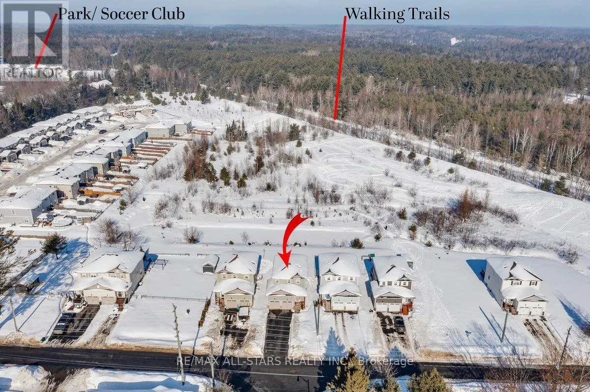 Cross Streets: Douglas Dr./Clearbrook Trail. ** Directions: End of Clearbrook Tr & Douglas Dr. This property captures cottage country energy while offering the everyday convenience of in town living. Backing onto open space with no rear neighbours and direct access to beautiful forested walking trails, this move in ready home offers an exceptional blend of convenience, functionality and location.The bright, open concept main floor is thoughtfully designed for modern family living. A spacious kitchen with stainless steel appliances flows seamlessly into the living and dining areas, creating an inviting space perfect for both daily life and entertaining. A walkout to the backyard extends your living space outdoors, while convenient inside entry from the double attached garage ensures year round comfort and practicality. Upstairs, the generous primary bedroom is complete with a 4 piece ensuite and walk in closet. Two additional bedrooms with ample closet storage, along with a 4 piece family bath that provides flexibility for growing families and guests.The finished basement further enhances the home's versatility, featuring an additional 4 piece bathroom and a spacious area ideal for a recreation room, gym, home office, or easily converted fourth bedroom. Step outside to enjoy peaceful, open backyard views, a rare and highly desirable feature that enhances both privacy and tranquility. Perfectly positioned for active families, the home is just steps from the Sports Complex (pool, gymnastics facility, gym, playground and more), the local high school and scenic trail systems. All of this is just minutes from downtown Bracebridge's charming shops, exceptional restaurants, waterfront parks and beaches. Experience the very best of the Bracebridge lifestyle - where privacy, nature, community and convenience come together in one exceptional property. (id:27476)