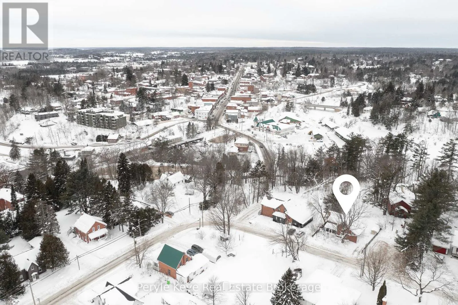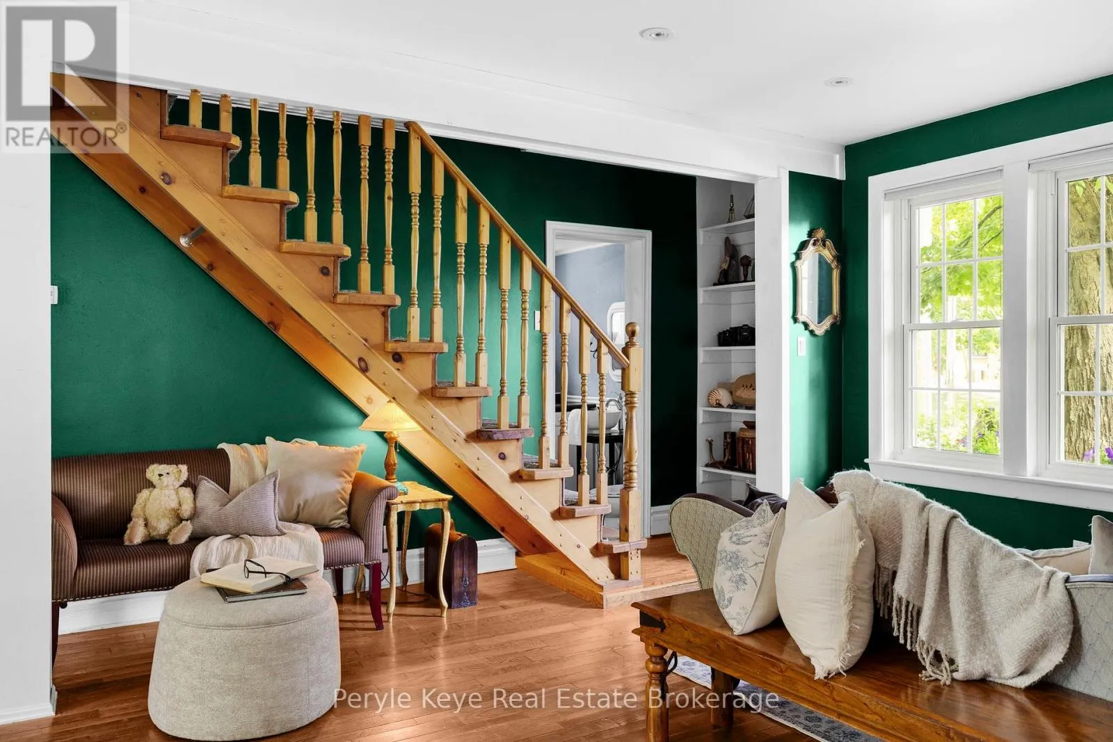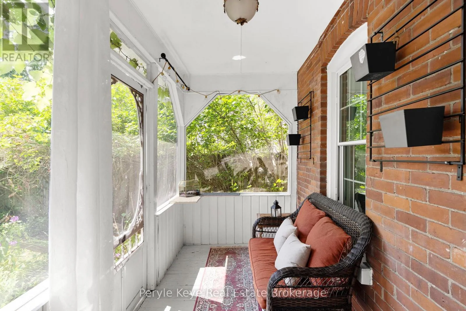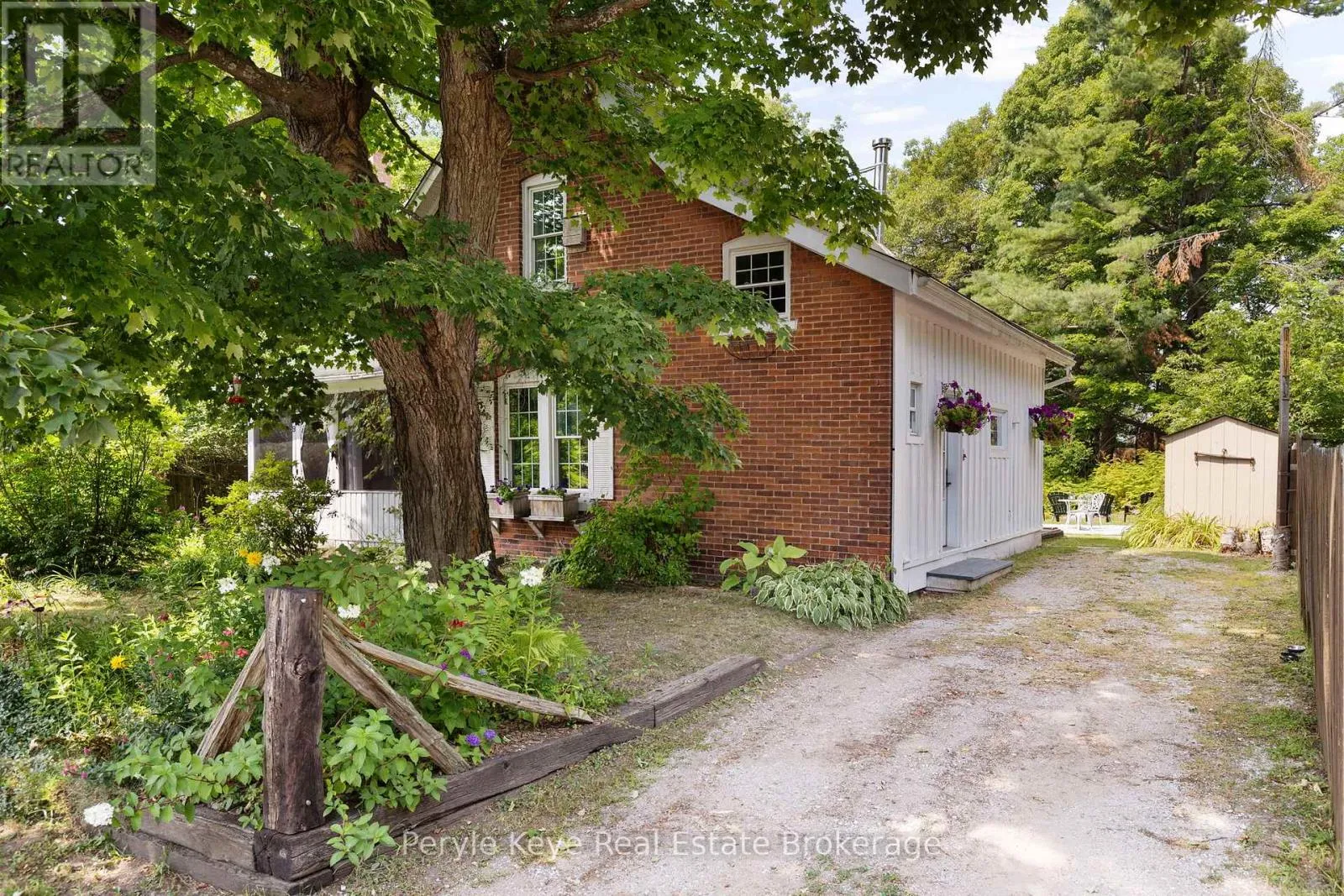 Cross Streets: Muskoka Road & King Street. ** Directions: Manitoba Street Entrance Drive Muskoka Road King Street SOP. Every so often, something truly special shows up.This is one of those times. Set on a peaceful cul-de-sac, with green space and wooded trails right at your back door, 9 King Street offers a rare balance of character, privacy, and walkability. Coffee downtown in the morning. A swim in the river by afternoon. Life here keeps it all within reach. As you arrive, the brick exterior framed by a towering tree sets the tone. Step inside and the story deepens: warmth, light, and timeless character at every turn. The sleek black kitchen makes its statement with a butcher block countertop, stainless steel appliances, and soft pot lighting. A wood fireplace anchors the living room, surrounded by windows that frame the seasons. Its a place for slow reads and long talks.The dining room invites connection. Evenings begin around the table, then drift to the screened-in porch, where conversation lingers long after the plates are cleared. A Muskoka room offers another place to pause, the perfect spot to rest after tending the gardens. A 2 pc guest bath and laundry complete the main level. Upstairs, a spacious primary bedroom and a comfortable guest room offer quiet retreats. The spa-inspired 4 pc bath features a glass shower a clawfoot tub. Plus, two tucked-away nooks - right now they are closets, but with a little creativity? They could be so much more. Think an entry with a hidden bookcase door or a dormer that turns it into your next favourite room. Inside, the world slows. Outside, it opens up-private, well-treed, and spacious. Picture a bonfire glowing under the stars or afternoons spent unwinding in natures embrace. Here, fires crackle, garden beds bloom, and you feel worlds away from the pace of town. Historic charm matters everyday convenience with full municipal services, natural gas heat, and high-speed internet available. Art, nature, and community-all right here.This is where town meets quiet. Where history meets possibility. And where life-finally-feels like it fits. (id:27476)