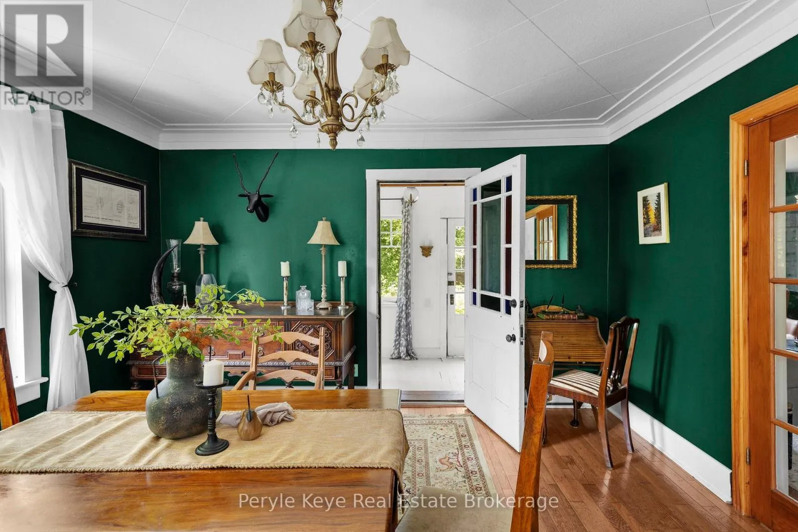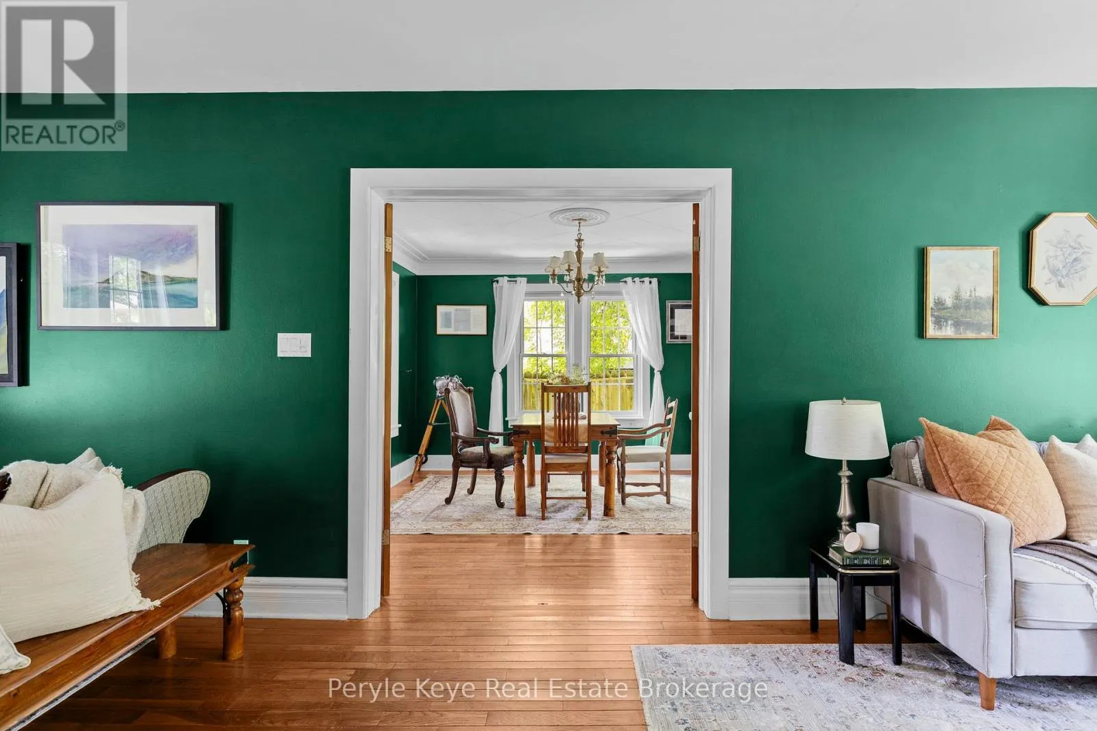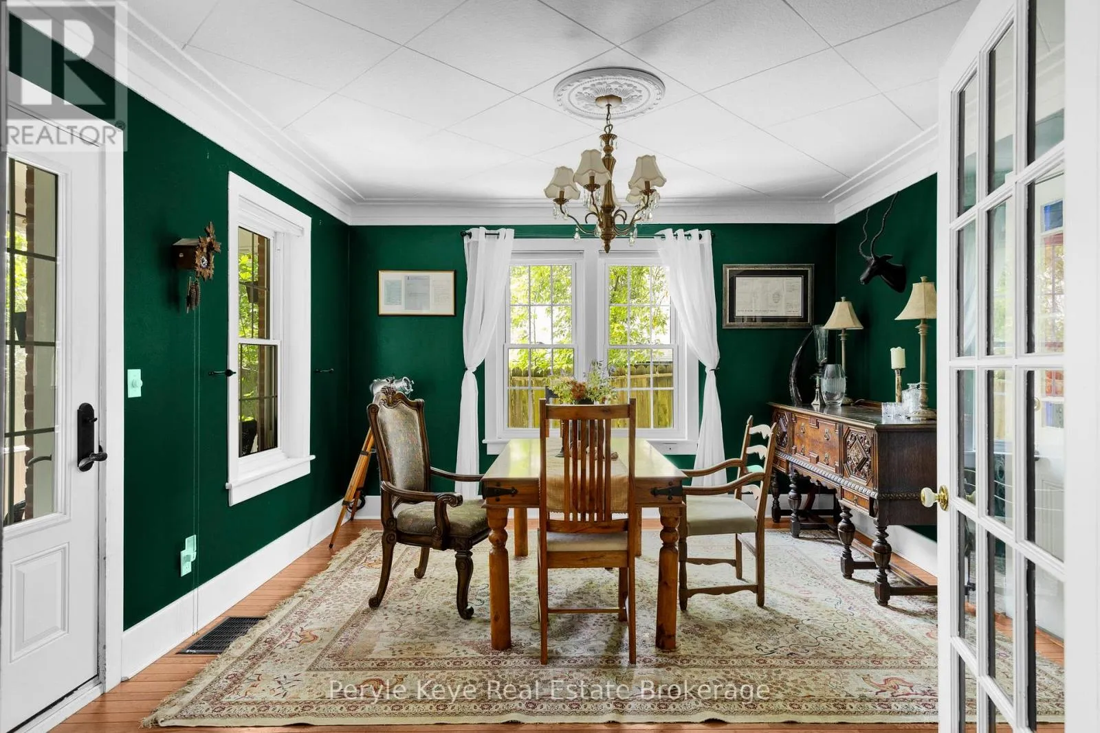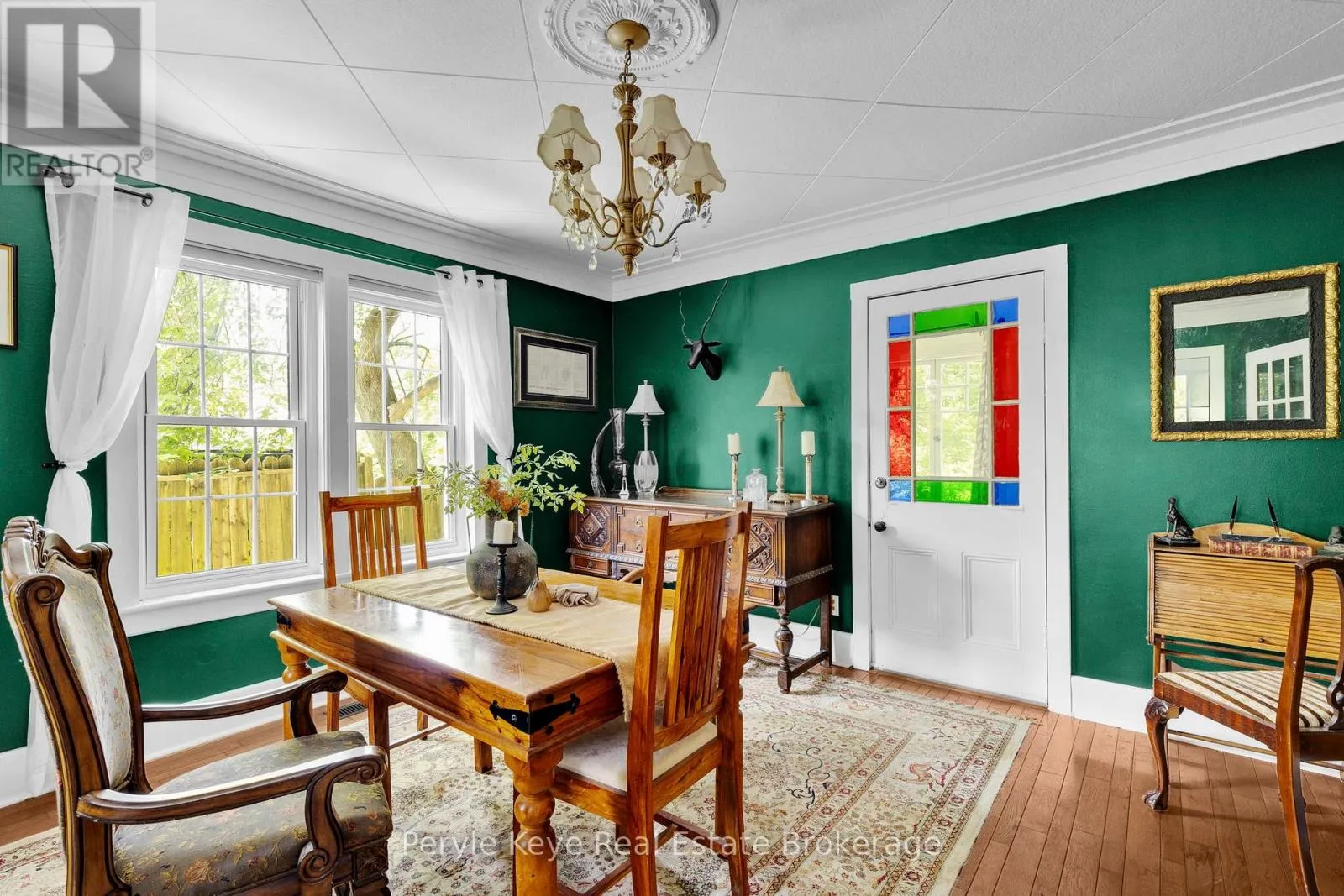 Cross Streets: Muskoka Road & King Street. ** Directions: Manitoba Street Entrance Drive Muskoka Road King Street SOP. Every so often, something truly special shows up.This is one of those times. Set on a peaceful cul-de-sac, with green space and wooded trails right at your back door, 9 King Street offers a rare balance of character, privacy, and walkability. Coffee downtown in the morning. A swim in the river by afternoon. Life here keeps it all within reach. As you arrive, the brick exterior framed by a towering tree sets the tone. Step inside and the story deepens: warmth, light, and timeless character at every turn. The sleek black kitchen makes its statement with a butcher block countertop, stainless steel appliances, and soft pot lighting. A wood fireplace anchors the living room, surrounded by windows that frame the seasons. Its a place for slow reads and long talks.The dining room invites connection. Evenings begin around the table, then drift to the screened-in porch, where conversation lingers long after the plates are cleared. A Muskoka room offers another place to pause, the perfect spot to rest after tending the gardens. A 2 pc guest bath and laundry complete the main level. Upstairs, a spacious primary bedroom and a comfortable guest room offer quiet retreats. The spa-inspired 4 pc bath features a glass shower a clawfoot tub. Plus, two tucked-away nooks - right now they are closets, but with a little creativity? They could be so much more. Think an entry with a hidden bookcase door or a dormer that turns it into your next favourite room. Inside, the world slows. Outside, it opens up-private, well-treed, and spacious. Picture a bonfire glowing under the stars or afternoons spent unwinding in natures embrace. Here, fires crackle, garden beds bloom, and you feel worlds away from the pace of town. Historic charm matters everyday convenience with full municipal services, natural gas heat, and high-speed internet available. Art, nature, and community-all right here.This is where town meets quiet. Where history meets possibility. And where life-finally-feels like it fits. (id:27476)