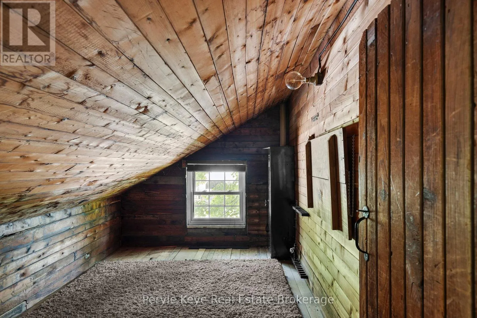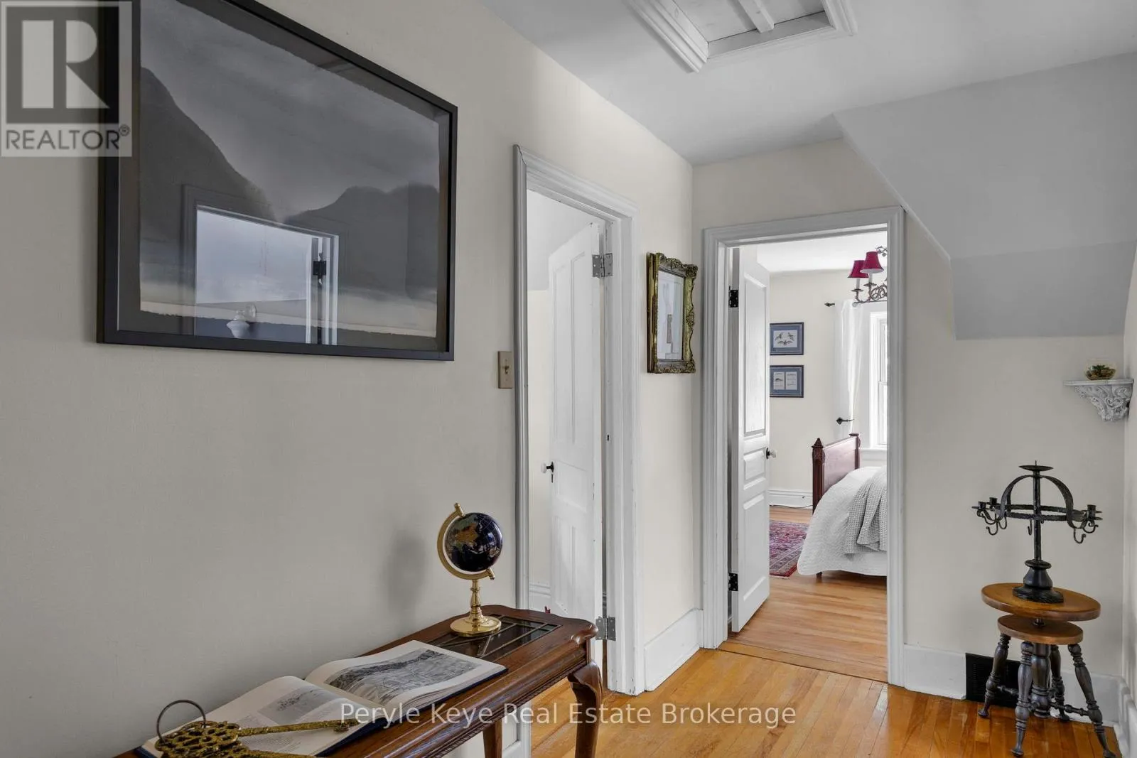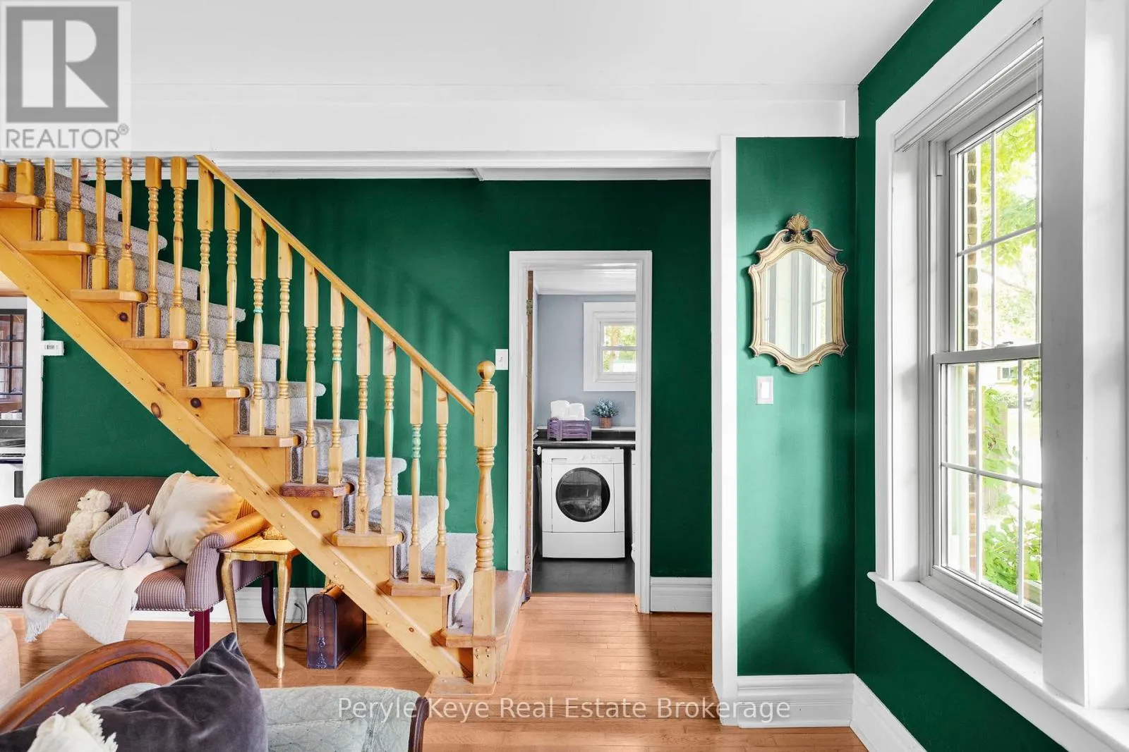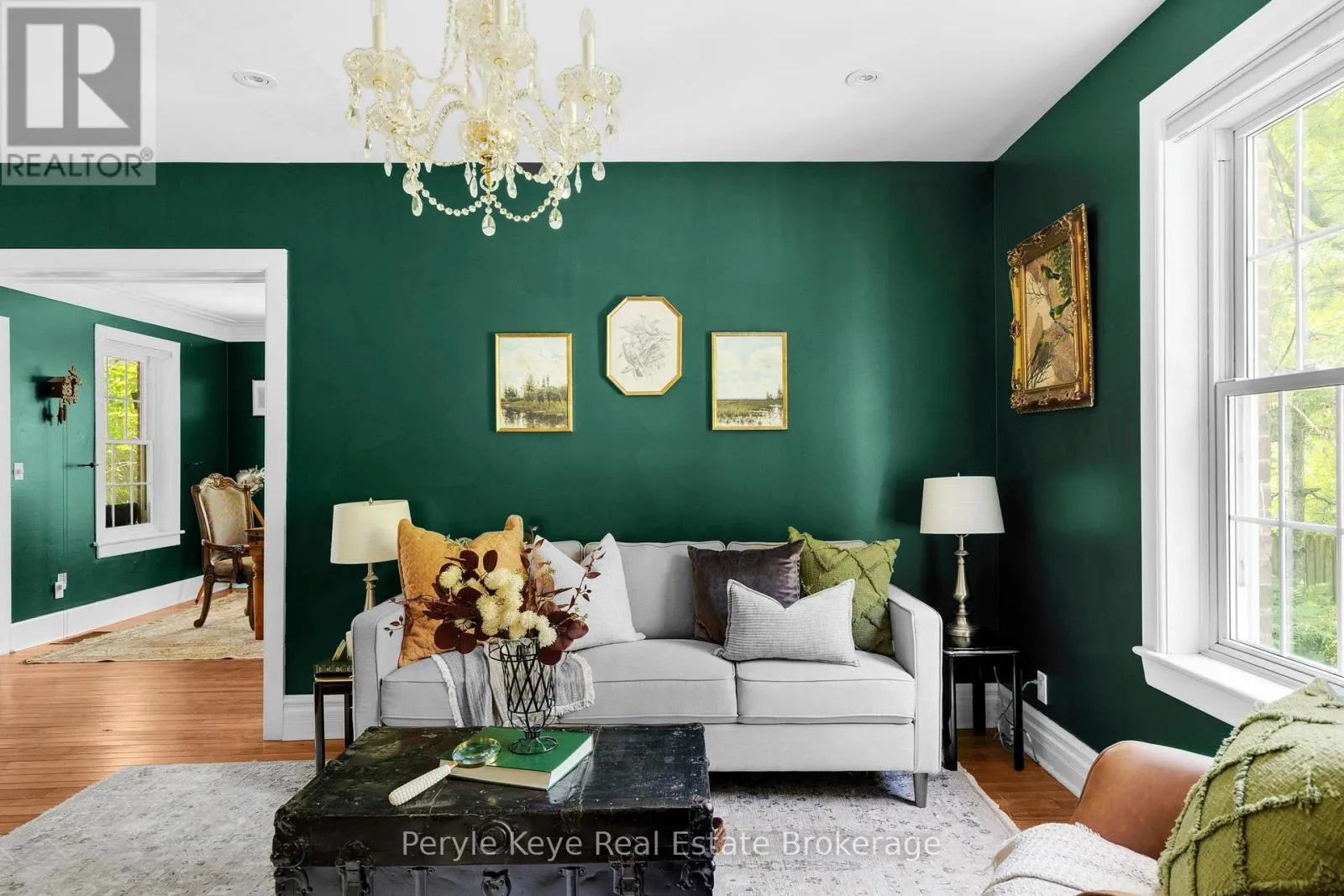 Cross Streets: Muskoka Road & King Street. ** Directions: Manitoba Street Entrance Drive Muskoka Road King Street SOP. Every so often, something truly special shows up.This is one of those times. Set on a peaceful cul-de-sac, with green space and wooded trails right at your back door, 9 King Street offers a rare balance of character, privacy, and walkability. Coffee downtown in the morning. A swim in the river by afternoon. Life here keeps it all within reach. As you arrive, the brick exterior framed by a towering tree sets the tone. Step inside and the story deepens: warmth, light, and timeless character at every turn. The sleek black kitchen makes its statement with a butcher block countertop, stainless steel appliances, and soft pot lighting. A wood fireplace anchors the living room, surrounded by windows that frame the seasons. Its a place for slow reads and long talks.The dining room invites connection. Evenings begin around the table, then drift to the screened-in porch, where conversation lingers long after the plates are cleared. A Muskoka room offers another place to pause, the perfect spot to rest after tending the gardens. A 2 pc guest bath and laundry complete the main level. Upstairs, a spacious primary bedroom and a comfortable guest room offer quiet retreats. The spa-inspired 4 pc bath features a glass shower a clawfoot tub. Plus, two tucked-away nooks - right now they are closets, but with a little creativity? They could be so much more. Think an entry with a hidden bookcase door or a dormer that turns it into your next favourite room. Inside, the world slows. Outside, it opens up-private, well-treed, and spacious. Picture a bonfire glowing under the stars or afternoons spent unwinding in natures embrace. Here, fires crackle, garden beds bloom, and you feel worlds away from the pace of town. Historic charm matters everyday convenience with full municipal services, natural gas heat, and high-speed internet available. Art, nature, and community-all right here.This is where town meets quiet. Where history meets possibility. And where life-finally-feels like it fits. (id:27476)