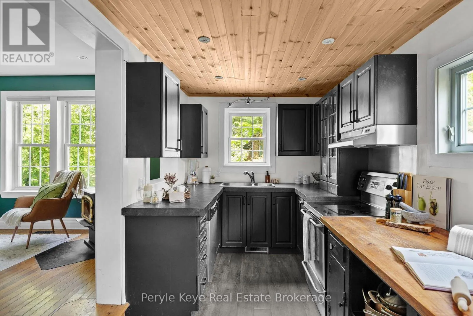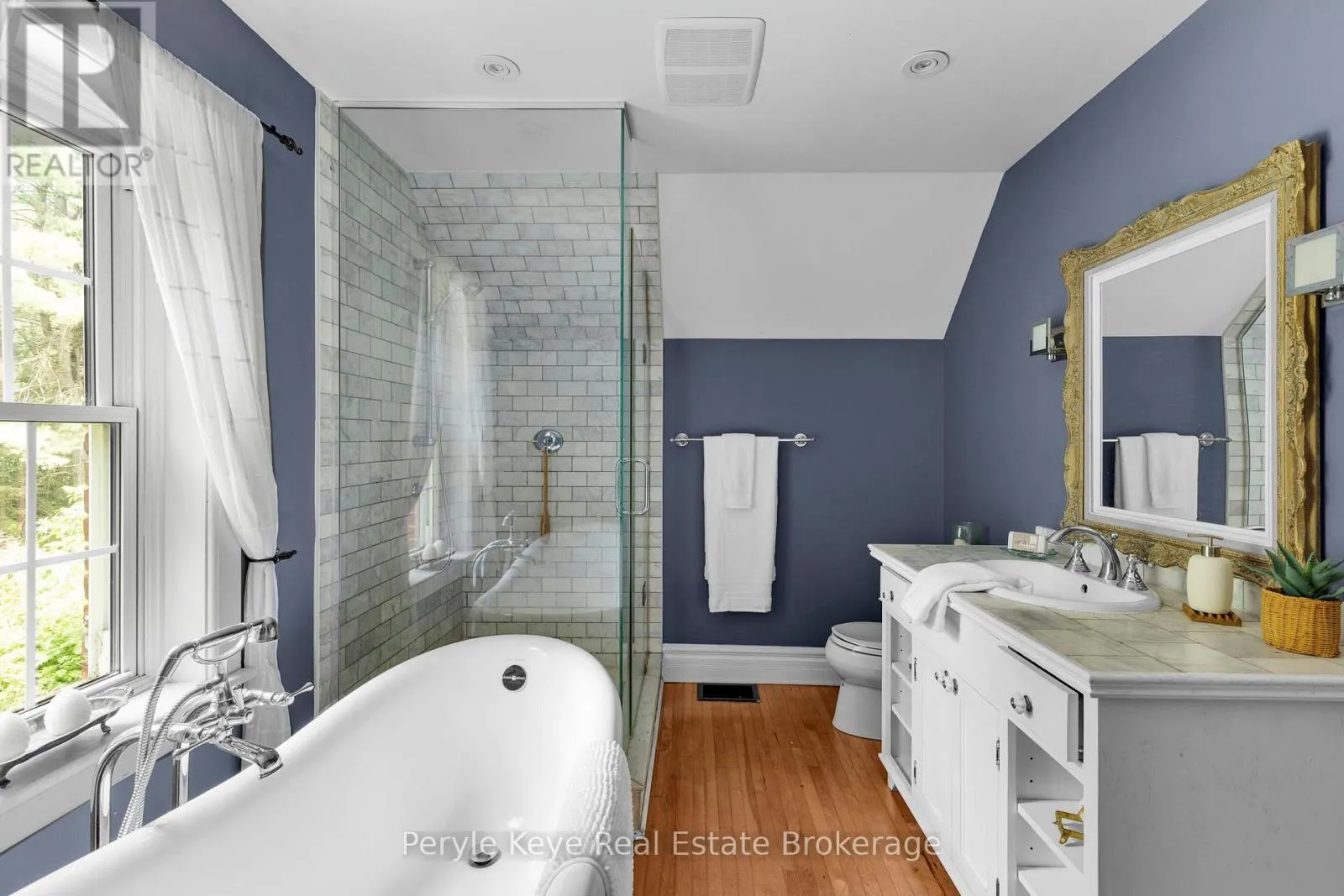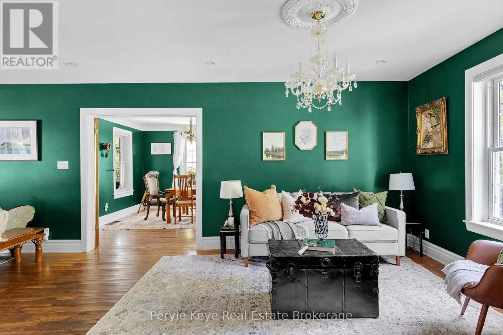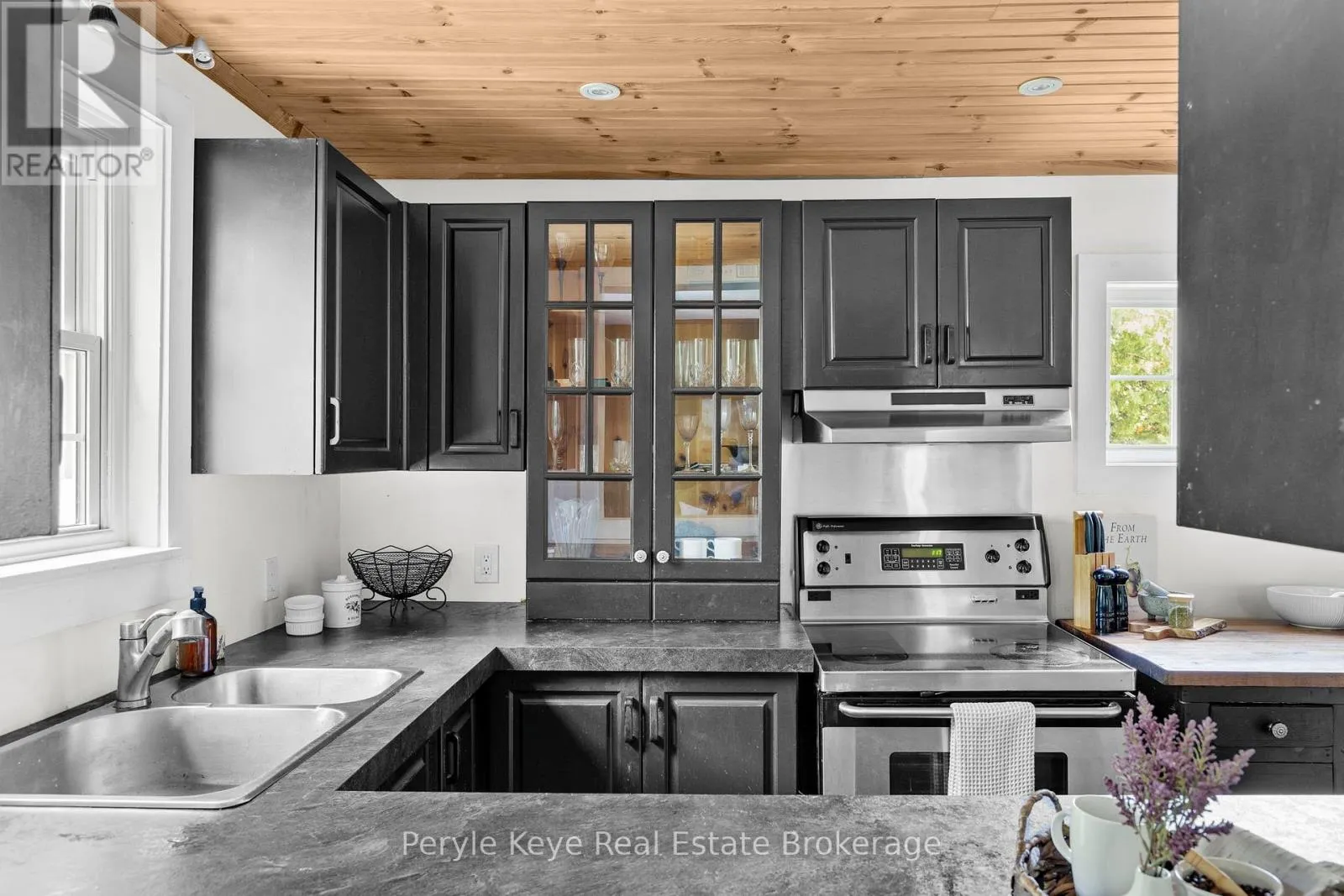 Cross Streets: Muskoka Road & King Street. ** Directions: Manitoba Street Entrance Drive Muskoka Road King Street SOP. Every so often, something truly special shows up.This is one of those times. Set on a peaceful cul-de-sac, with green space and wooded trails right at your back door, 9 King Street offers a rare balance of character, privacy, and walkability. Coffee downtown in the morning. A swim in the river by afternoon. Life here keeps it all within reach. As you arrive, the brick exterior framed by a towering tree sets the tone. Step inside and the story deepens: warmth, light, and timeless character at every turn. The sleek black kitchen makes its statement with a butcher block countertop, stainless steel appliances, and soft pot lighting. A wood fireplace anchors the living room, surrounded by windows that frame the seasons. Its a place for slow reads and long talks.The dining room invites connection. Evenings begin around the table, then drift to the screened-in porch, where conversation lingers long after the plates are cleared. A Muskoka room offers another place to pause, the perfect spot to rest after tending the gardens. A 2 pc guest bath and laundry complete the main level. Upstairs, a spacious primary bedroom and a comfortable guest room offer quiet retreats. The spa-inspired 4 pc bath features a glass shower a clawfoot tub. Plus, two tucked-away nooks - right now they are closets, but with a little creativity? They could be so much more. Think an entry with a hidden bookcase door or a dormer that turns it into your next favourite room. Inside, the world slows. Outside, it opens up-private, well-treed, and spacious. Picture a bonfire glowing under the stars or afternoons spent unwinding in natures embrace. Here, fires crackle, garden beds bloom, and you feel worlds away from the pace of town. Historic charm matters everyday convenience with full municipal services, natural gas heat, and high-speed internet available. Art, nature, and community-all right here.This is where town meets quiet. Where history meets possibility. And where life-finally-feels like it fits. (id:27476)