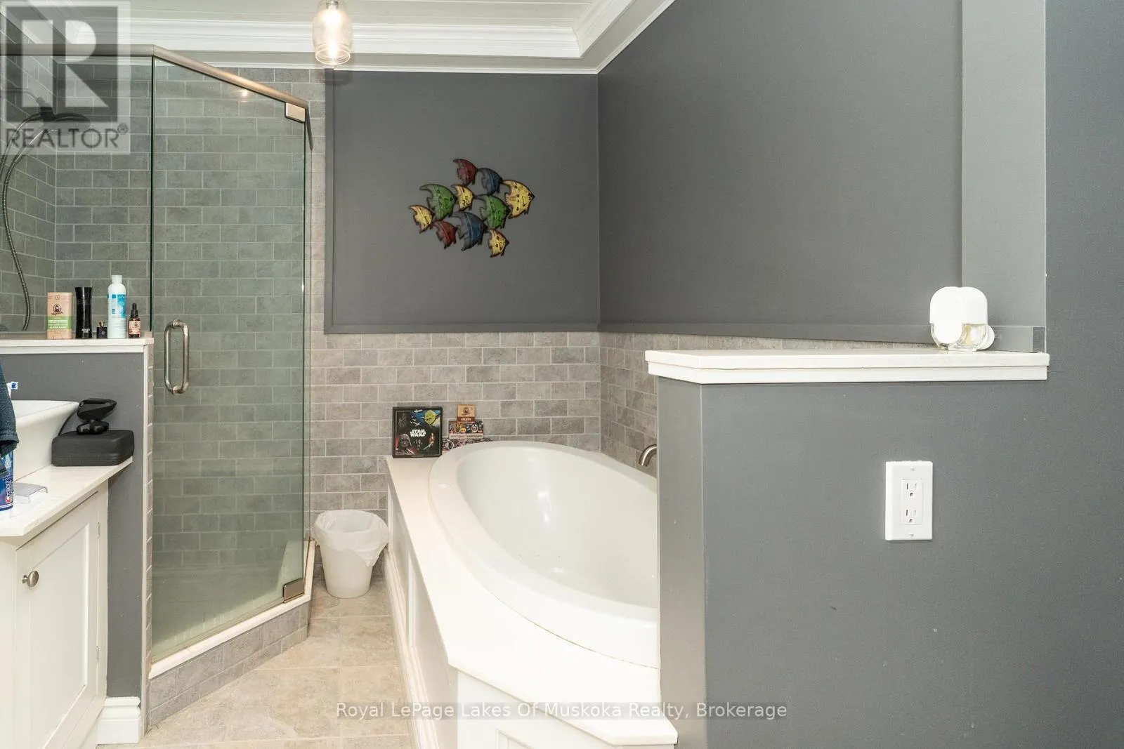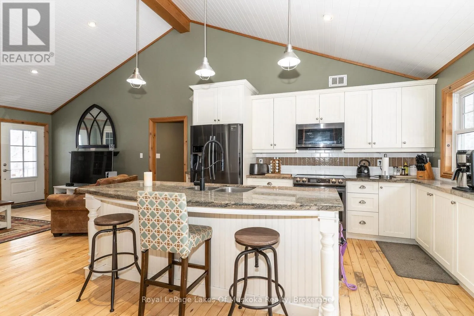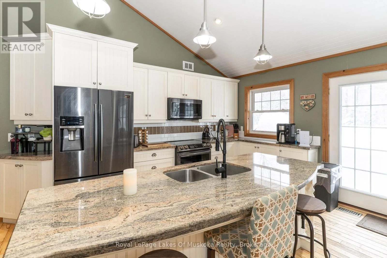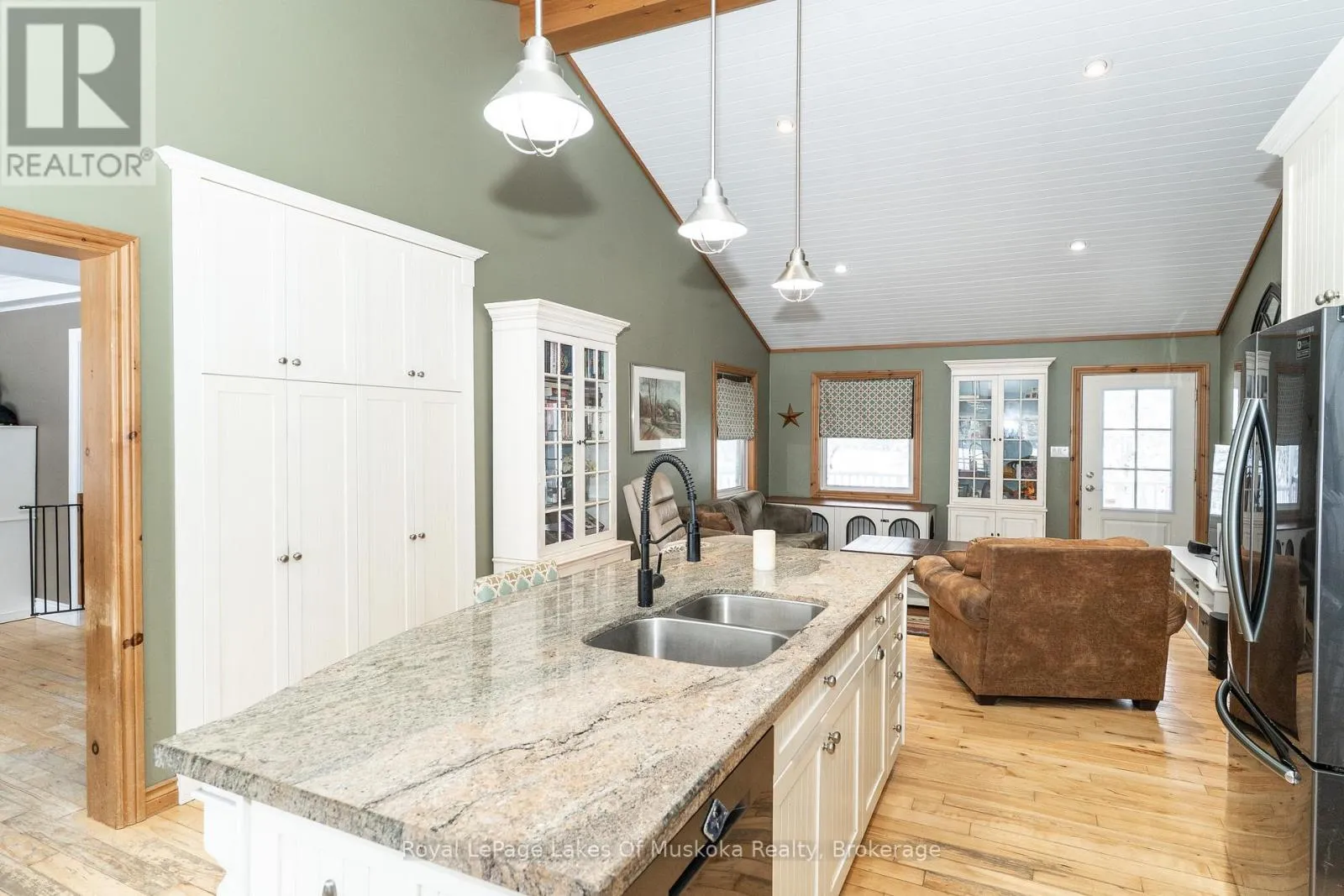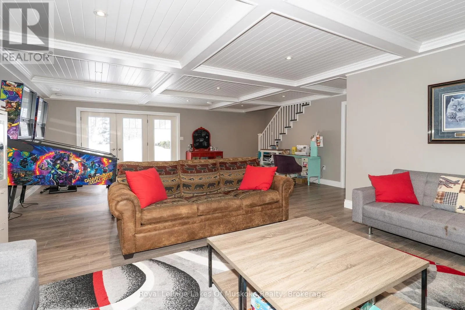 Cross Streets: Manitoba St. ** Directions: Manitoba St to Falkenburg. Discover the perfect blend of comfort, space, and country charm just minutes from the heart of Bracebridge. This beautifully maintained 3+1 bedroom, 4 bathroom raised bungalow sits on a stunning 6.7-acre property, offering exceptional privacy and picturesque surroundings just outside of town. Thoughtfully designed for both everyday living and entertaining, the home features a bright, spacious layout with vaulted ceilings, a large loft, and elegant finishes throughout. Enjoy year-round comfort with heated floors, while the fully finished walk-out basement provides additional living space and coffered ceilings-perfect for guests, extended family, or a recreation area. Above the double car garage, a versatile loft space offers incredible potential as a guest suite, studio, or playroom. Outdoor living is where this property truly shines. The excellent, spacious back porch is perfect for entertaining and hosting family BBQs, while the large yard offers endless possibilities-room for dogs to roam, family picnics, four wheelers, or even a future volleyball court. A large covered front porch with gate adds charm and functionality, and the chicken coop make this an ideal setup for a hobby farm lifestyle. With beautiful natural surroundings, exceptional privacy, and close proximity to town amenities, this property offers the best of Muskoka living-space, serenity, and flexibility all in one remarkable package. (id:27476)