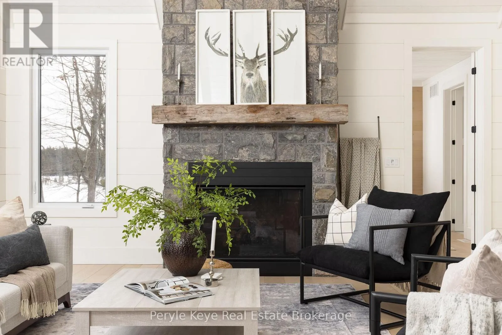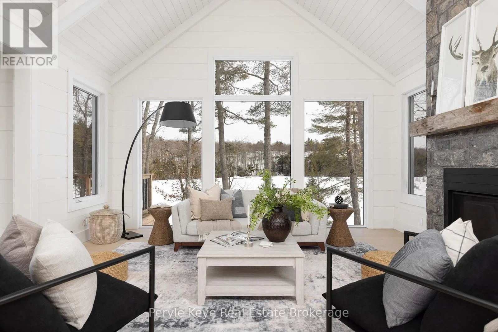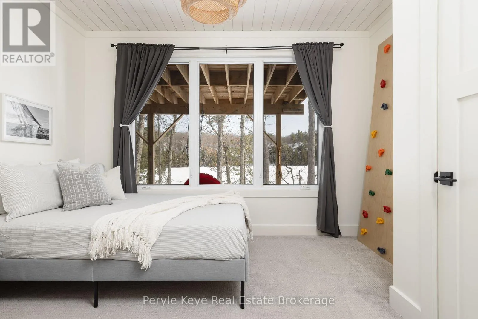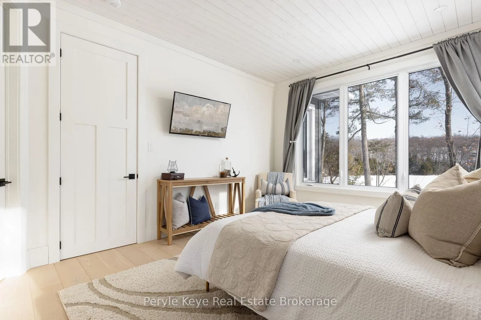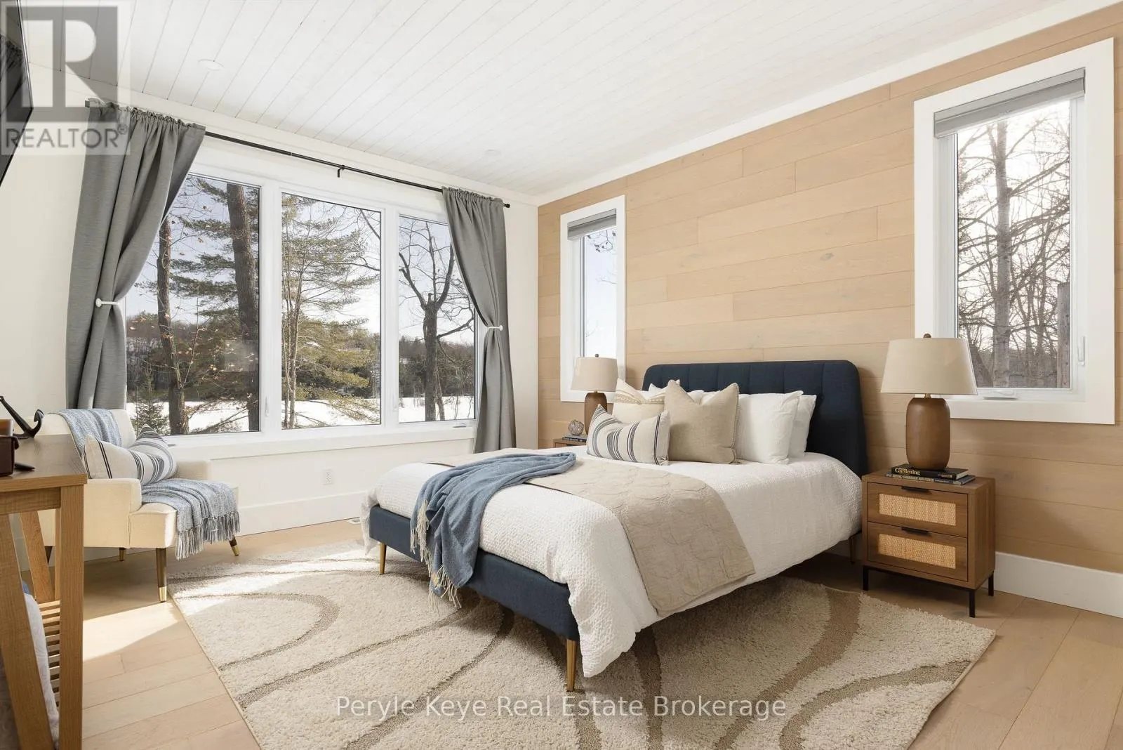 Cross Streets: Fredrick Street - Spence Lake Drive. ** Directions: HWY 11 - Fredrick Street - Spence Lake Drive. Five minutes from downtown Bracebridge, at the end of a quiet road, there's a lake many people don't even realize exists. And when you're standing here looking across the water, it's hard to believe you're this close to town. Welcome to Spence Lake! Set along approx 180' of shoreline, the water wraps gently around the property. A beautiful mix of sandy beach, natural rock, shallow entry for swimming, and deeper water off the dock. The bay feels quiet and protected, and it's a gentle lot with stone steps leading to both the beach and the dock. This is the kind of shoreline every family hopes to find, and a place where great memories naturally unfold. Built in 2019, the home itself is a gorgeous custom bungalow designed to work beautifully as either a year-round home or a four-season cottage. Year-round access, an extended and widened driveway, and a high-quality septic system mean the practical pieces are already in place. Inside, the design really takes advantage of the setting. Large windows frame the lake making the views a natural focal point. The layout brings together a show-stopping living room with fireplace, a well-appointed kitchen, and a four-season sunroom opening to the back deck. Engineered white oak flooring flows throughout. The main-floor primary suite features a walk-in closet and ensuite. Downstairs offers flexibility with three more bedrooms and a full guest bathroom. One bedroom mirrors the main floor primary and offers a rough-in for a future ensuite. Here the lake views continue, creating the perfect space for movie nights, or simply spreading out. When summer arrives, it's paddle boards and boats on the water, sandcastles, BBQs with friends, and evenings lost in the hot tub or around the fire. Soffit lighting, soundproofed interior walls, ICF on the lower-level, AC, & a GenerLink highlight the quality of features here. Experiencing a place like this in person changes the way you see waterfront living. This might just be the one! (id:27476)