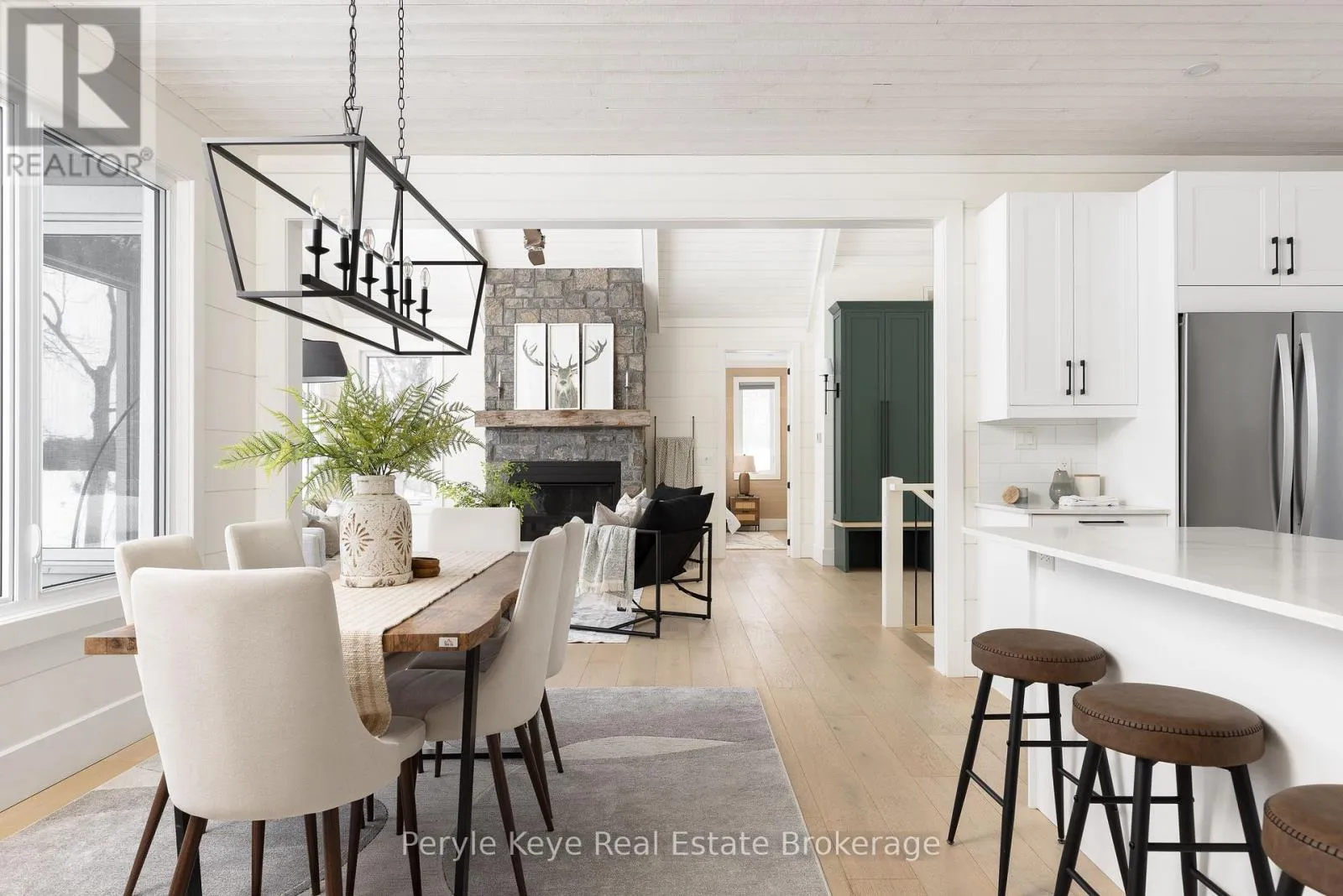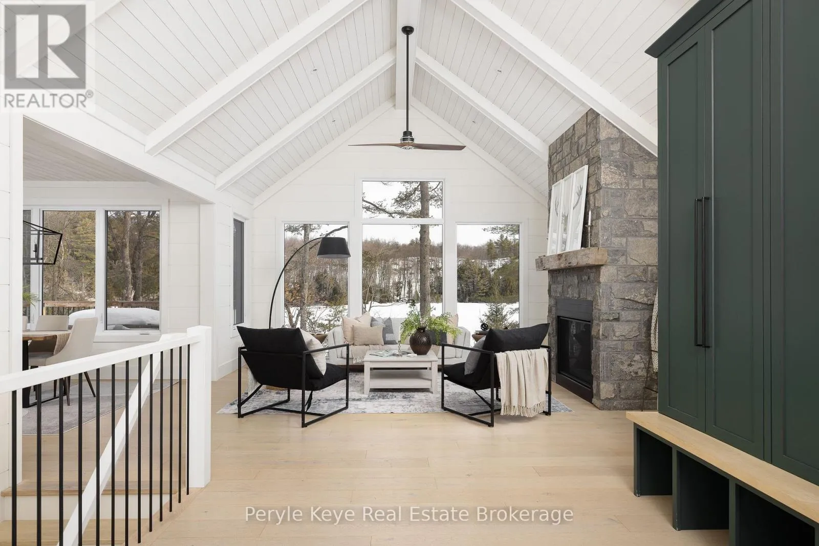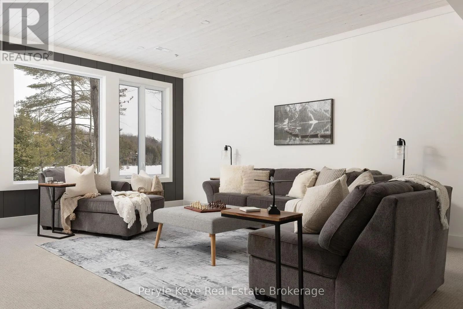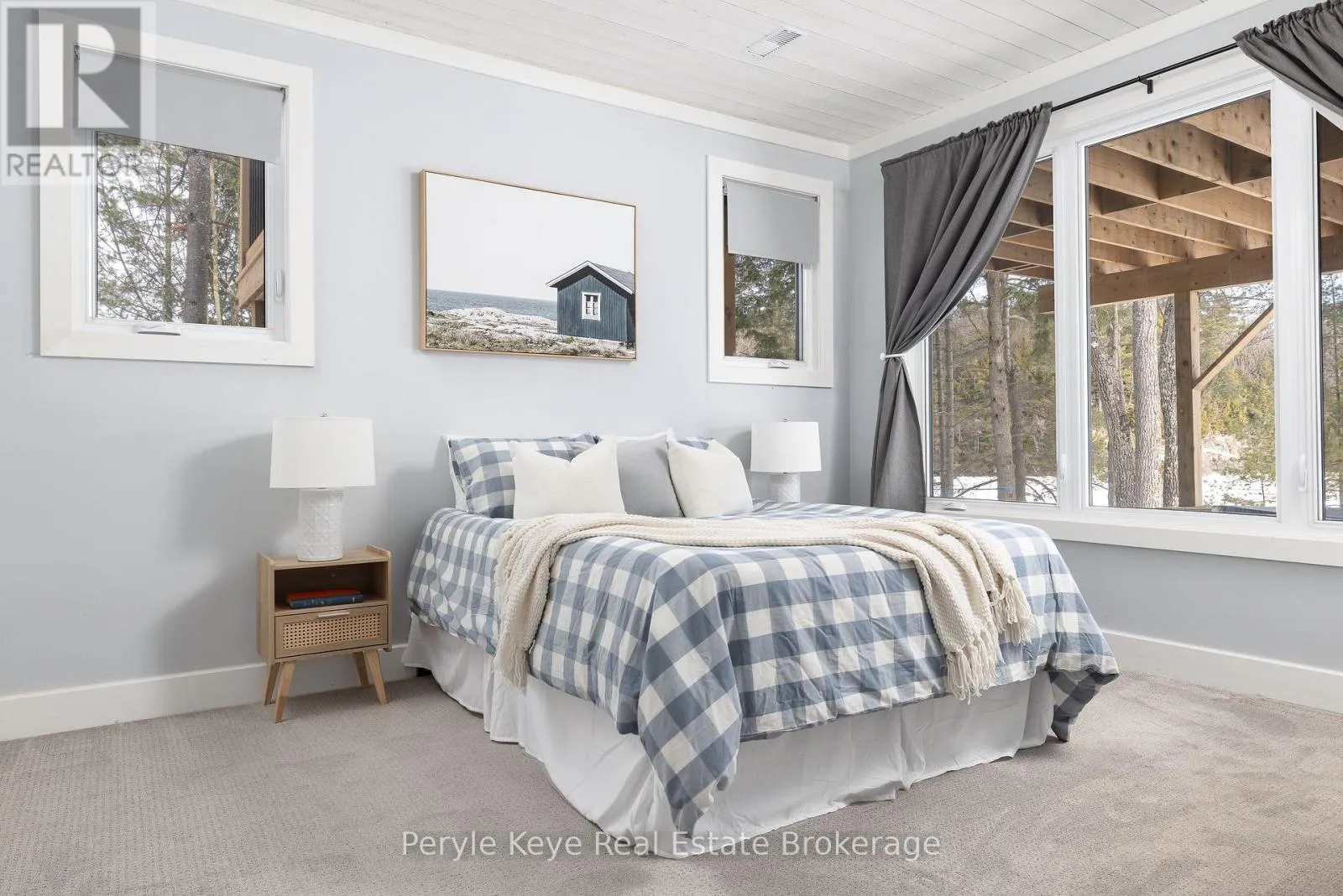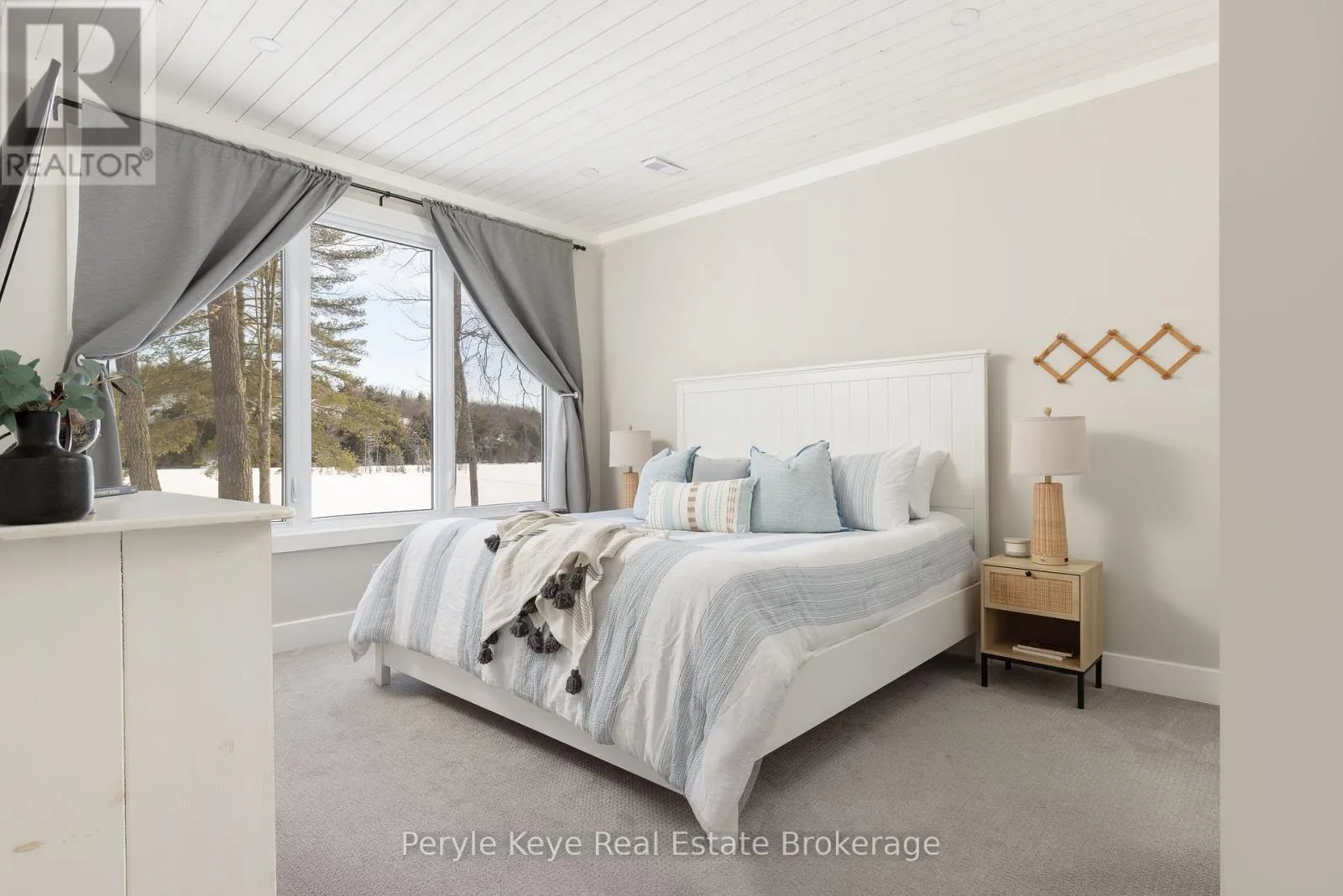 Cross Streets: Fredrick Street - Spence Lake Drive. ** Directions: HWY 11 - Fredrick Street - Spence Lake Drive. Five minutes from downtown Bracebridge, at the end of a quiet road, there's a lake many people don't even realize exists. And when you're standing here looking across the water, it's hard to believe you're this close to town. Welcome to Spence Lake! Set along approx 180' of shoreline, the water wraps gently around the property. A beautiful mix of sandy beach, natural rock, shallow entry for swimming, and deeper water off the dock. The bay feels quiet and protected, and it's a gentle lot with stone steps leading to both the beach and the dock. This is the kind of shoreline every family hopes to find, and a place where great memories naturally unfold. Built in 2019, the home itself is a gorgeous custom bungalow designed to work beautifully as either a year-round home or a four-season cottage. Year-round access, an extended and widened driveway, and a high-quality septic system mean the practical pieces are already in place. Inside, the design really takes advantage of the setting. Large windows frame the lake making the views a natural focal point. The layout brings together a show-stopping living room with fireplace, a well-appointed kitchen, and a four-season sunroom opening to the back deck. Engineered white oak flooring flows throughout. The main-floor primary suite features a walk-in closet and ensuite. Downstairs offers flexibility with three more bedrooms and a full guest bathroom. One bedroom mirrors the main floor primary and offers a rough-in for a future ensuite. Here the lake views continue, creating the perfect space for movie nights, or simply spreading out. When summer arrives, it's paddle boards and boats on the water, sandcastles, BBQs with friends, and evenings lost in the hot tub or around the fire. Soffit lighting, soundproofed interior walls, ICF on the lower-level, AC, & a GenerLink highlight the quality of features here. Experiencing a place like this in person changes the way you see waterfront living. This might just be the one! (id:27476)