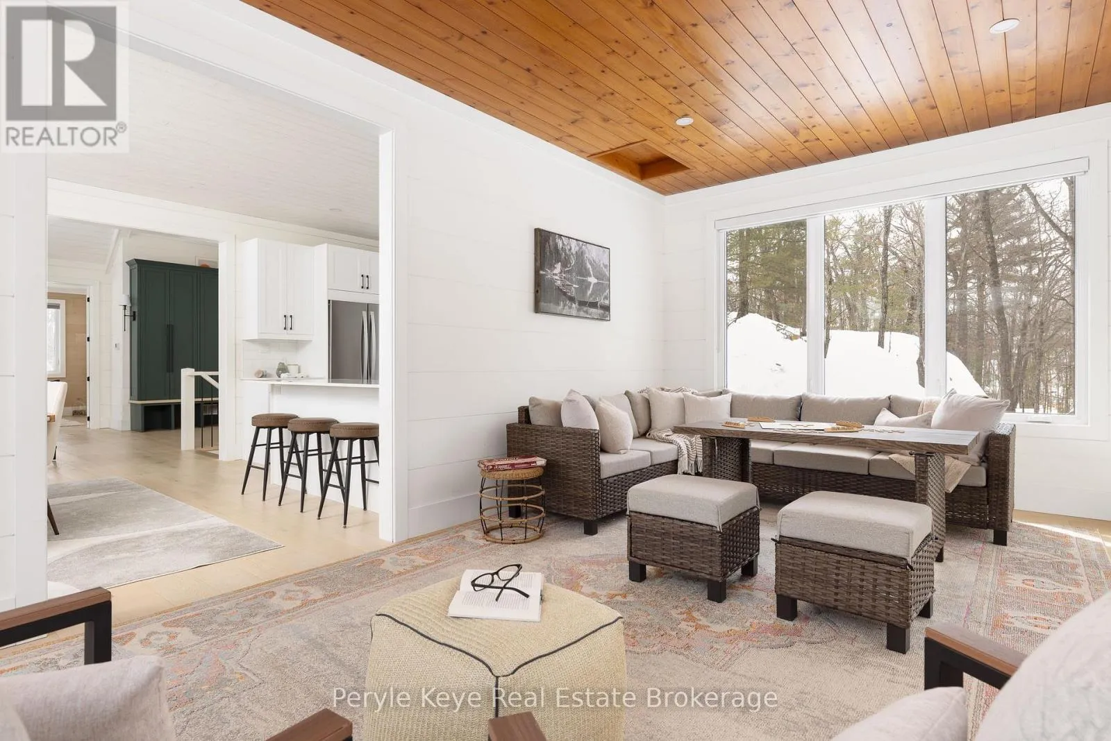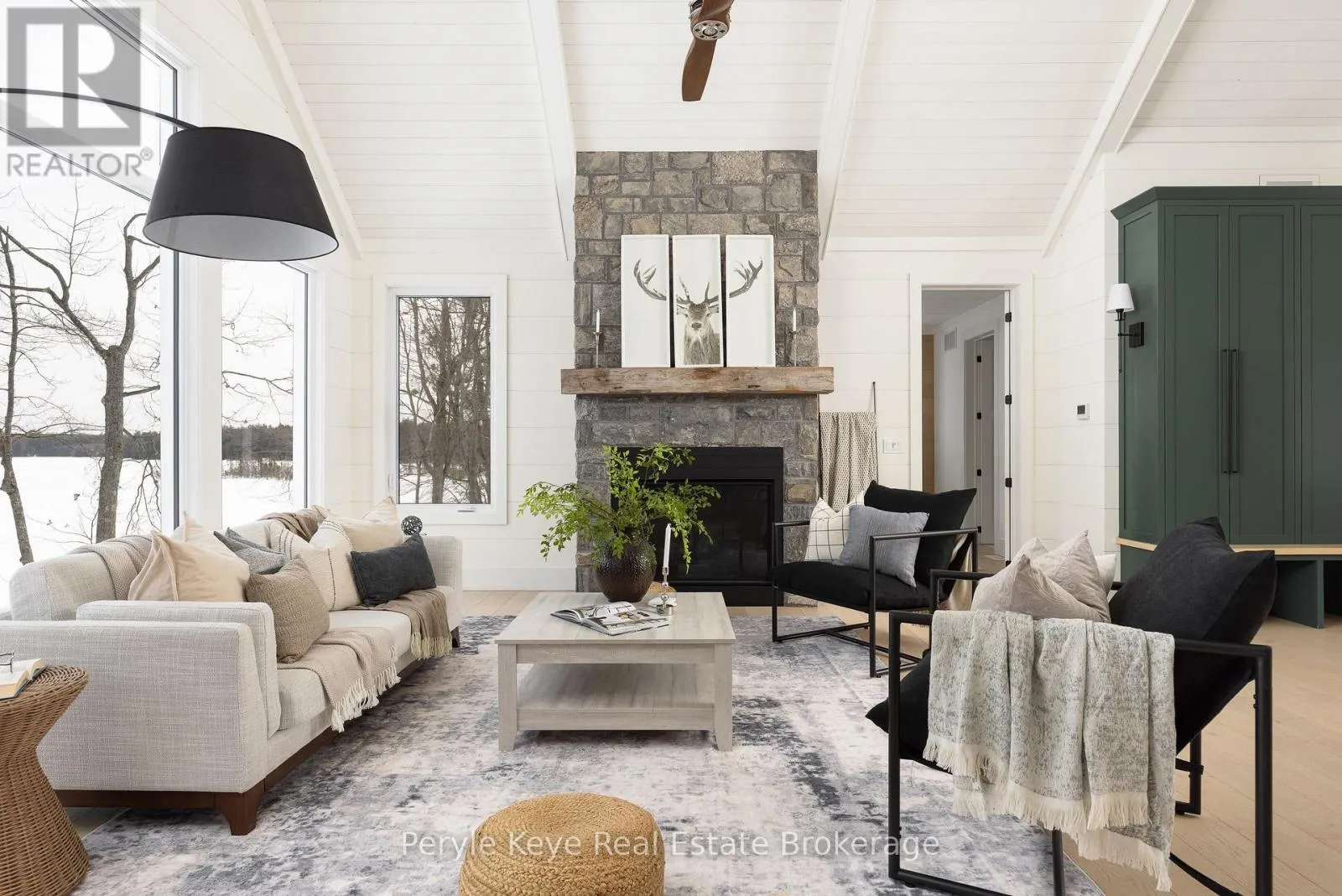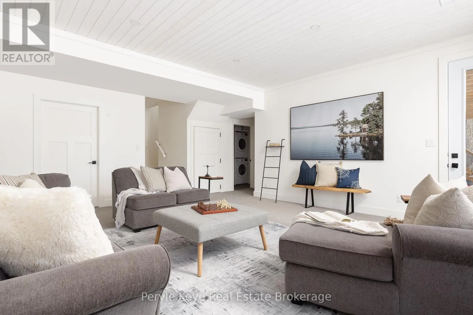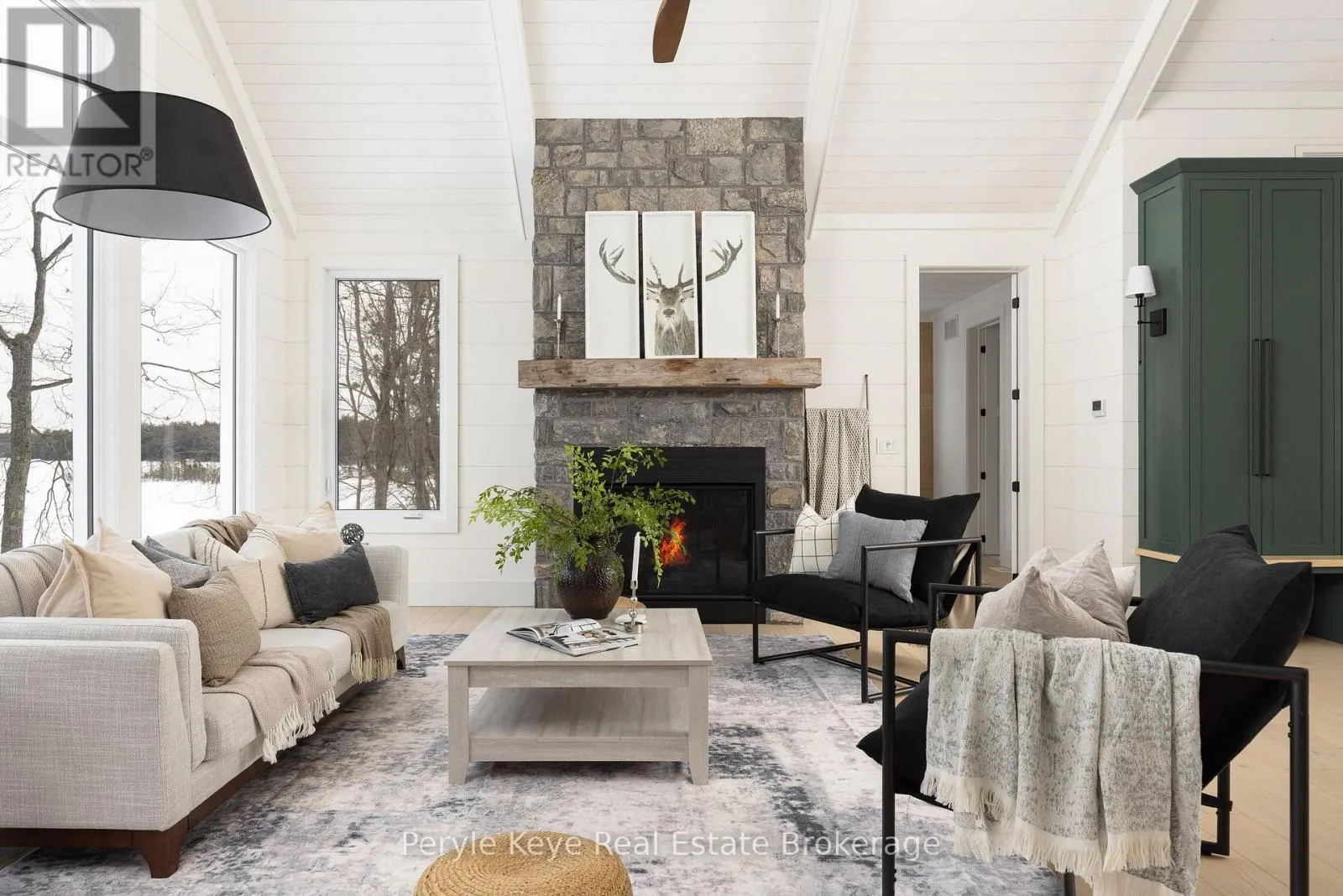 Cross Streets: Fredrick Street - Spence Lake Drive. ** Directions: HWY 11 - Fredrick Street - Spence Lake Drive. Five minutes from downtown Bracebridge, at the end of a quiet road, there's a lake many people don't even realize exists. And when you're standing here looking across the water, it's hard to believe you're this close to town. Welcome to Spence Lake! Set along approx 180' of shoreline, the water wraps gently around the property. A beautiful mix of sandy beach, natural rock, shallow entry for swimming, and deeper water off the dock. The bay feels quiet and protected, and it's a gentle lot with stone steps leading to both the beach and the dock. This is the kind of shoreline every family hopes to find, and a place where great memories naturally unfold. Built in 2019, the home itself is a gorgeous custom bungalow designed to work beautifully as either a year-round home or a four-season cottage. Year-round access, an extended and widened driveway, and a high-quality septic system mean the practical pieces are already in place. Inside, the design really takes advantage of the setting. Large windows frame the lake making the views a natural focal point. The layout brings together a show-stopping living room with fireplace, a well-appointed kitchen, and a four-season sunroom opening to the back deck. Engineered white oak flooring flows throughout. The main-floor primary suite features a walk-in closet and ensuite. Downstairs offers flexibility with three more bedrooms and a full guest bathroom. One bedroom mirrors the main floor primary and offers a rough-in for a future ensuite. Here the lake views continue, creating the perfect space for movie nights, or simply spreading out. When summer arrives, it's paddle boards and boats on the water, sandcastles, BBQs with friends, and evenings lost in the hot tub or around the fire. Soffit lighting, soundproofed interior walls, ICF on the lower-level, AC, & a GenerLink highlight the quality of features here. Experiencing a place like this in person changes the way you see waterfront living. This might just be the one! (id:27476)