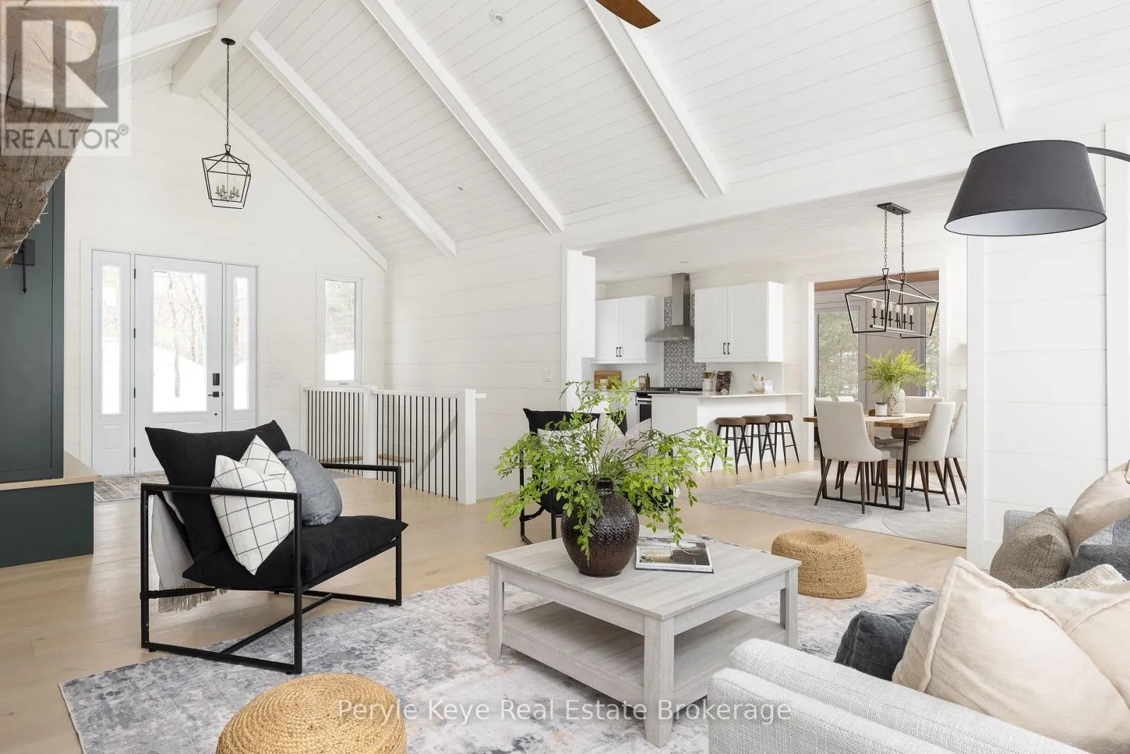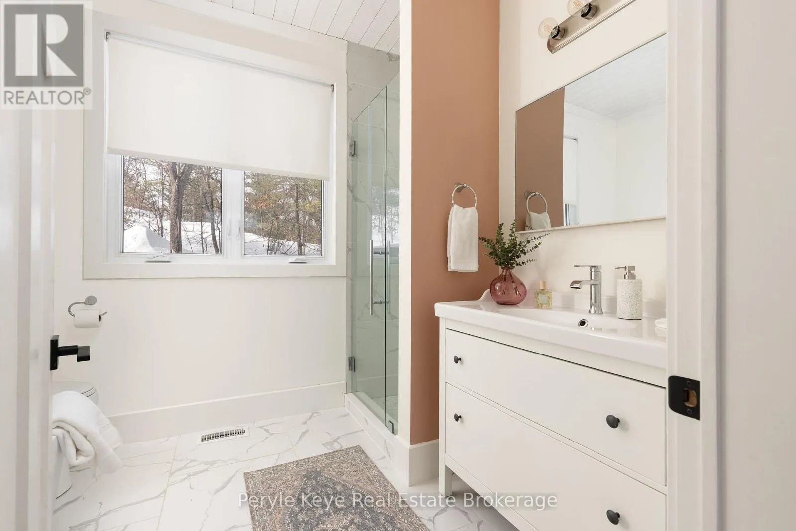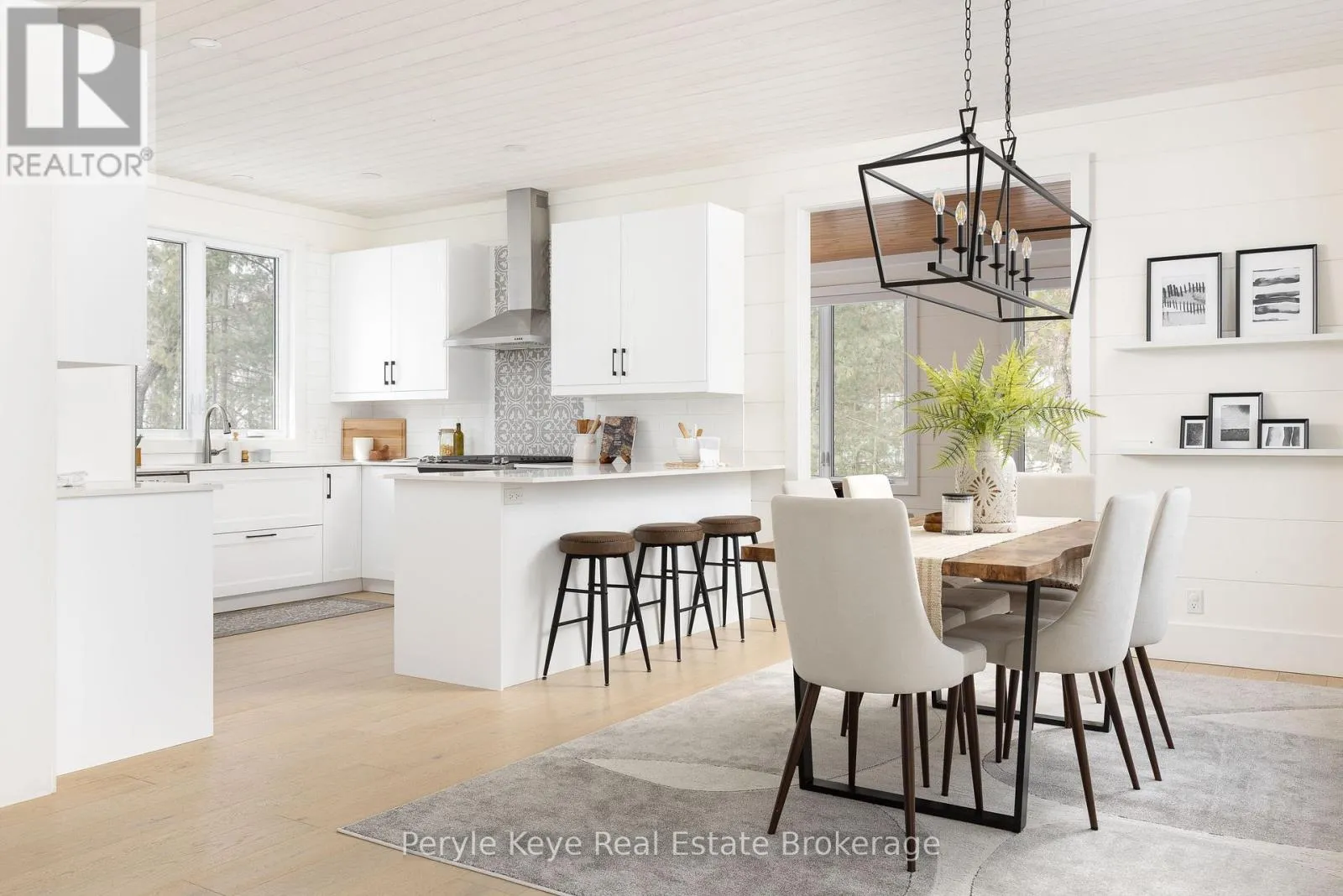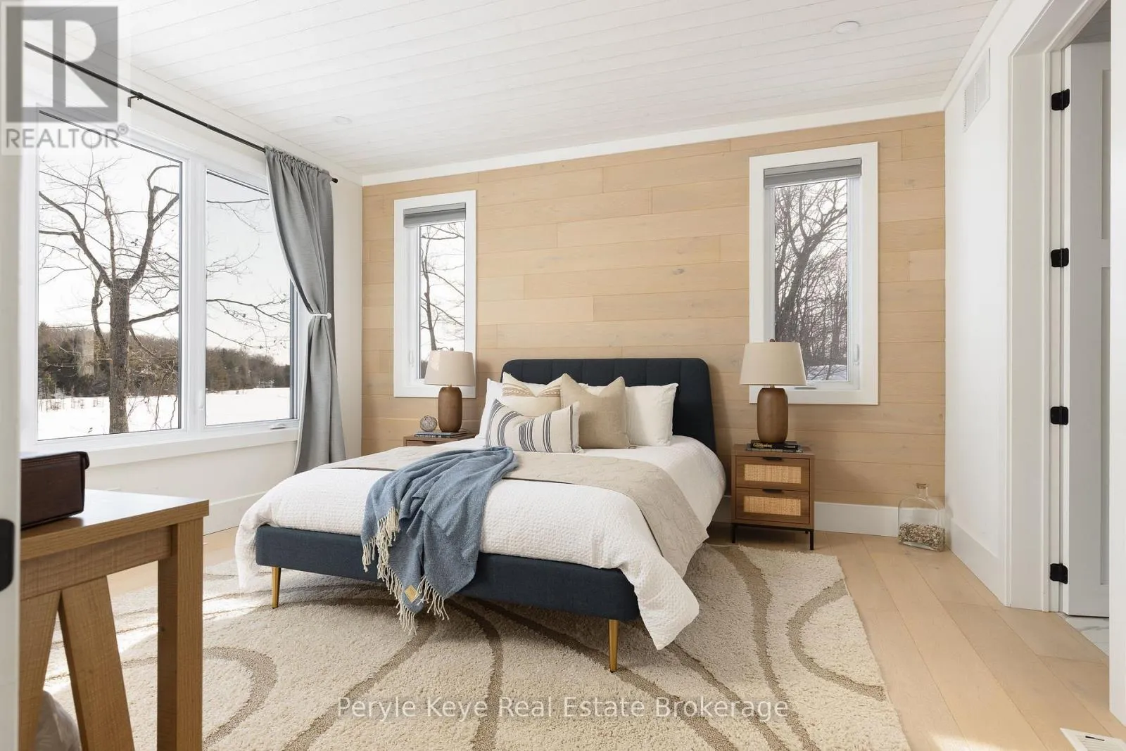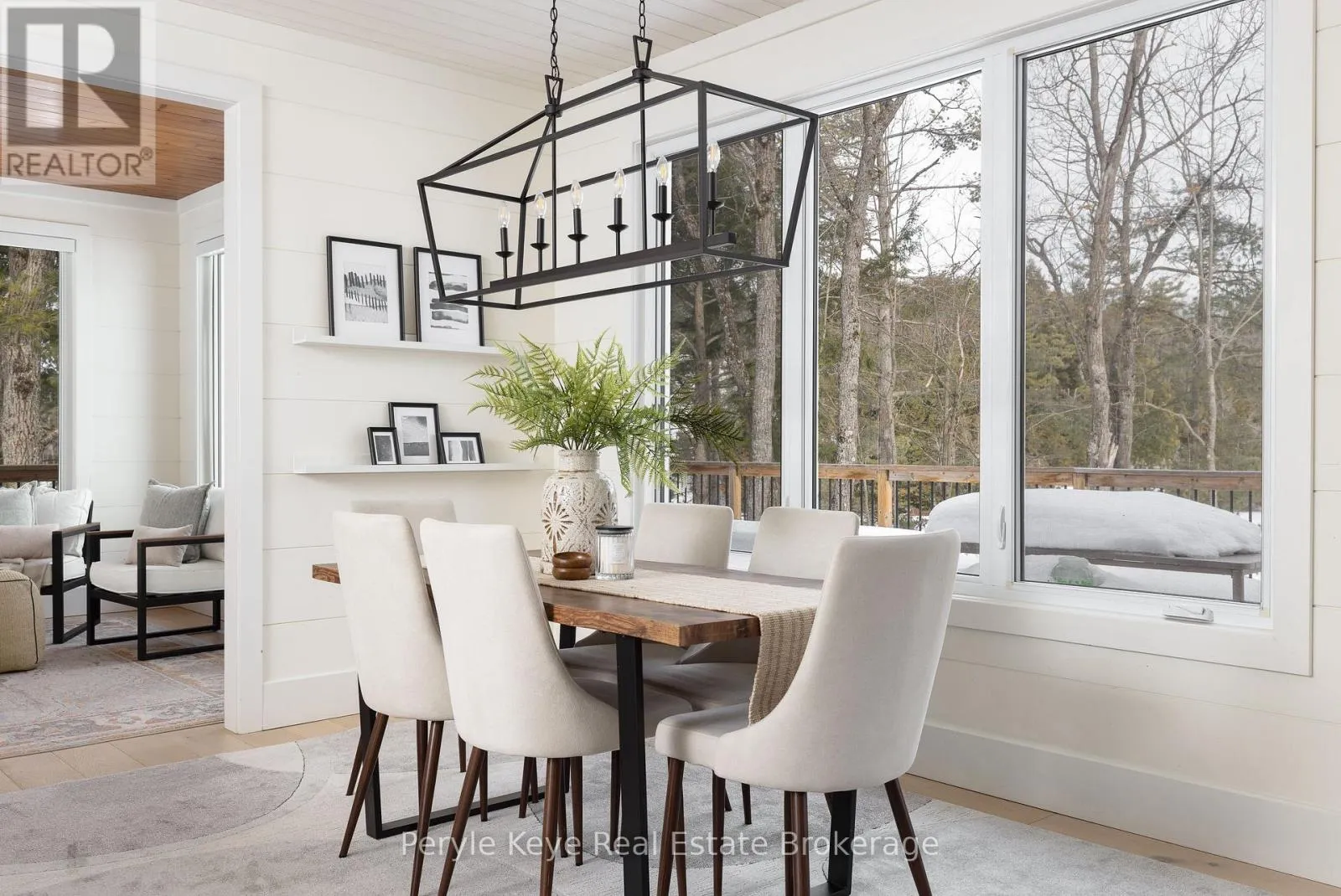Cross Streets: Fredrick Street - Spence Lake Drive. ** Directions: HWY 11 - Fredrick Street - Spence Lake Drive. Five minutes from downtown Bracebridge, at the end of a quiet road, there's a lake many people don't even realize exists. And when you're standing here looking across the water, it's hard to believe you're this close to town. Welcome to Spence Lake! Set along approx 180' of shoreline, the water wraps gently around the property. A beautiful mix of sandy beach, natural rock, shallow entry for swimming, and deeper water off the dock. The bay feels quiet and protected, and it's a gentle lot with stone steps leading to both the beach and the dock. This is the kind of shoreline every family hopes to find, and a place where great memories naturally unfold. Built in 2019, the home itself is a gorgeous custom bungalow designed to work beautifully as either a year-round home or a four-season cottage. Year-round access, an extended and widened driveway, and a high-quality septic system mean the practical pieces are already in place. Inside, the design really takes advantage of the setting. Large windows frame the lake making the views a natural focal point. The layout brings together a show-stopping living room with fireplace, a well-appointed kitchen, and a four-season sunroom opening to the back deck. Engineered white oak flooring flows throughout. The main-floor primary suite features a walk-in closet and ensuite. Downstairs offers flexibility with three more bedrooms and a full guest bathroom. One bedroom mirrors the main floor primary and offers a rough-in for a future ensuite. Here the lake views continue, creating the perfect space for movie nights, or simply spreading out. When summer arrives, it's paddle boards and boats on the water, sandcastles, BBQs with friends, and evenings lost in the hot tub or around the fire. Soffit lighting, soundproofed interior walls, ICF on the lower-level, AC, & a GenerLink highlight the quality of features here. Experiencing a place like this in person changes the way you see waterfront living. This might just be the one! (id:27476)