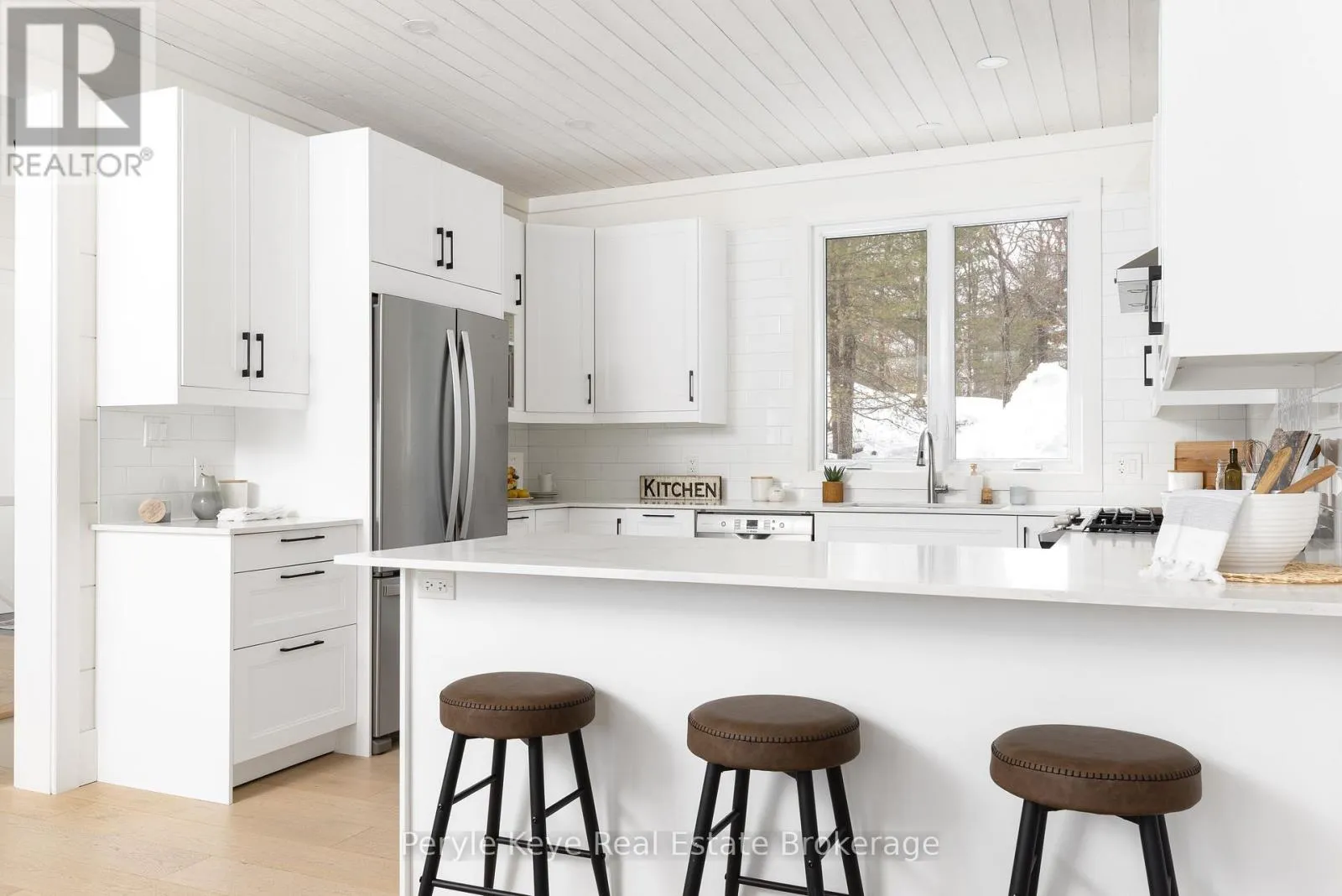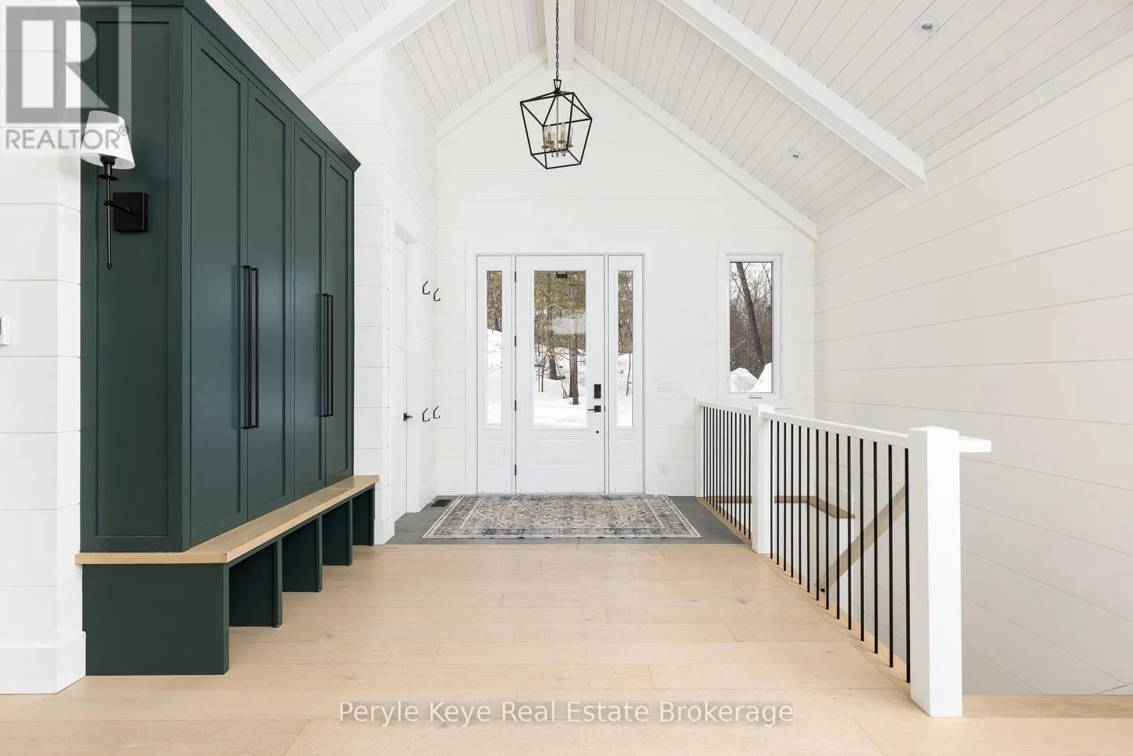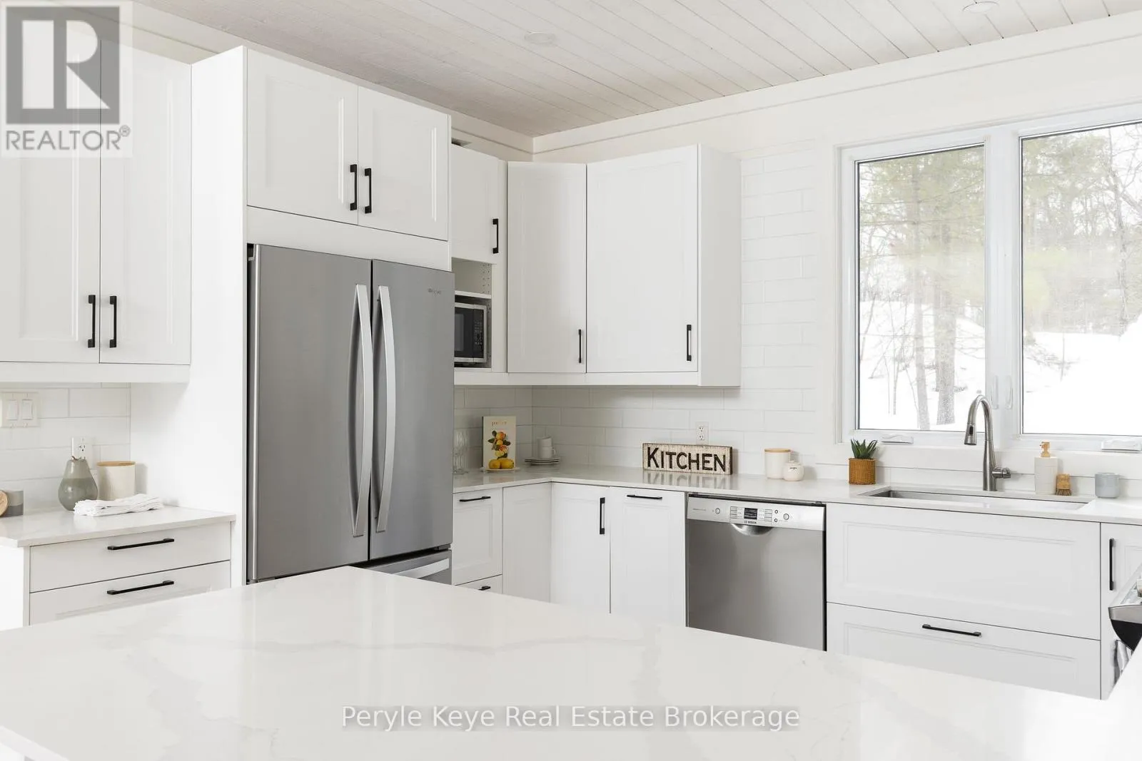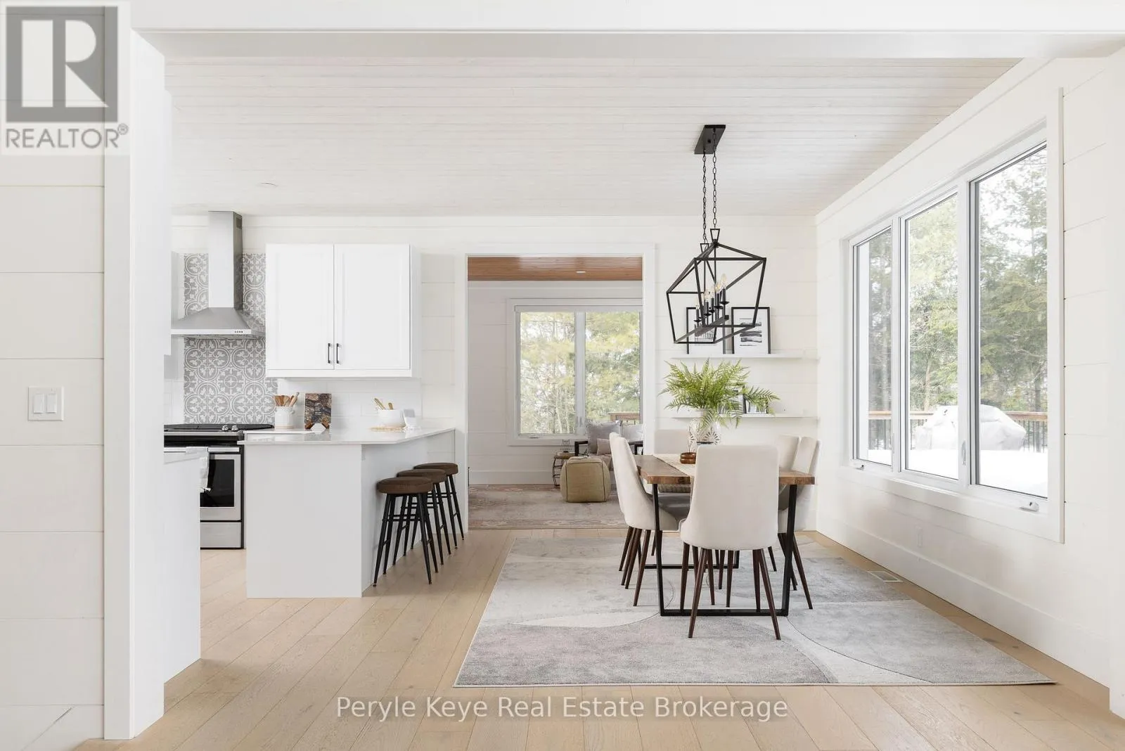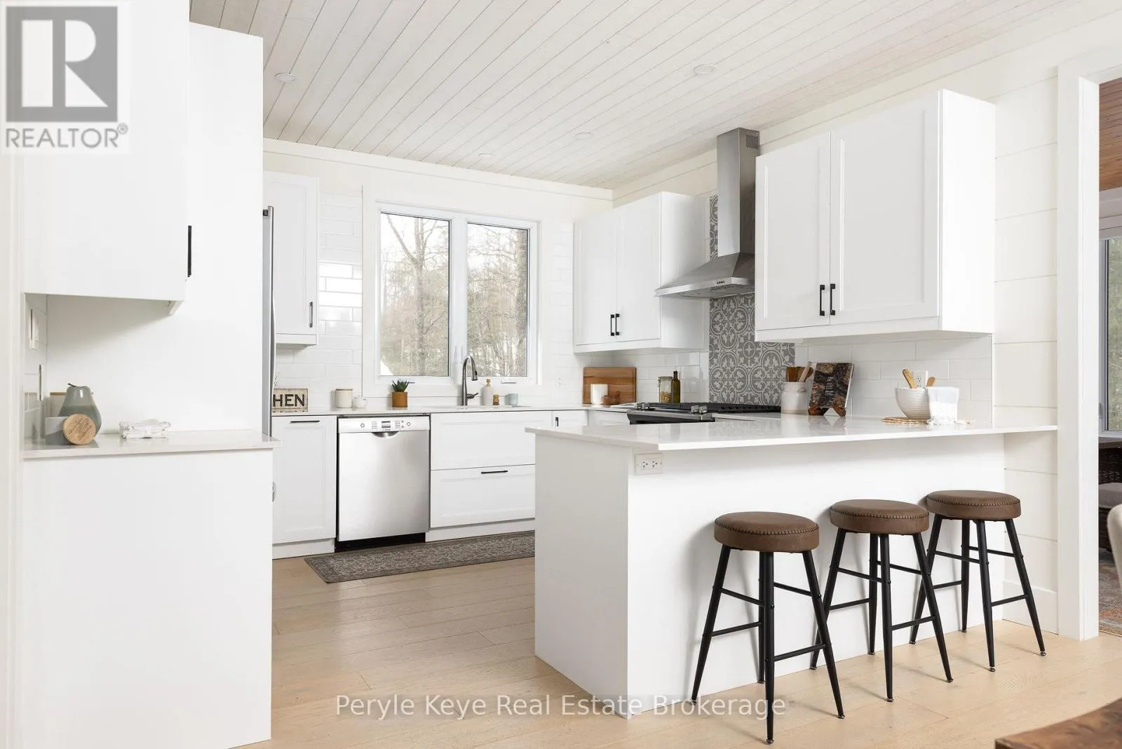 Cross Streets: Fredrick Street - Spence Lake Drive. ** Directions: HWY 11 - Fredrick Street - Spence Lake Drive. Five minutes from downtown Bracebridge, at the end of a quiet road, there's a lake many people don't even realize exists. And when you're standing here looking across the water, it's hard to believe you're this close to town. Welcome to Spence Lake! Set along approx 180' of shoreline, the water wraps gently around the property. A beautiful mix of sandy beach, natural rock, shallow entry for swimming, and deeper water off the dock. The bay feels quiet and protected, and it's a gentle lot with stone steps leading to both the beach and the dock. This is the kind of shoreline every family hopes to find, and a place where great memories naturally unfold. Built in 2019, the home itself is a gorgeous custom bungalow designed to work beautifully as either a year-round home or a four-season cottage. Year-round access, an extended and widened driveway, and a high-quality septic system mean the practical pieces are already in place. Inside, the design really takes advantage of the setting. Large windows frame the lake making the views a natural focal point. The layout brings together a show-stopping living room with fireplace, a well-appointed kitchen, and a four-season sunroom opening to the back deck. Engineered white oak flooring flows throughout. The main-floor primary suite features a walk-in closet and ensuite. Downstairs offers flexibility with three more bedrooms and a full guest bathroom. One bedroom mirrors the main floor primary and offers a rough-in for a future ensuite. Here the lake views continue, creating the perfect space for movie nights, or simply spreading out. When summer arrives, it's paddle boards and boats on the water, sandcastles, BBQs with friends, and evenings lost in the hot tub or around the fire. Soffit lighting, soundproofed interior walls, ICF on the lower-level, AC, & a GenerLink highlight the quality of features here. Experiencing a place like this in person changes the way you see waterfront living. This might just be the one! (id:27476)