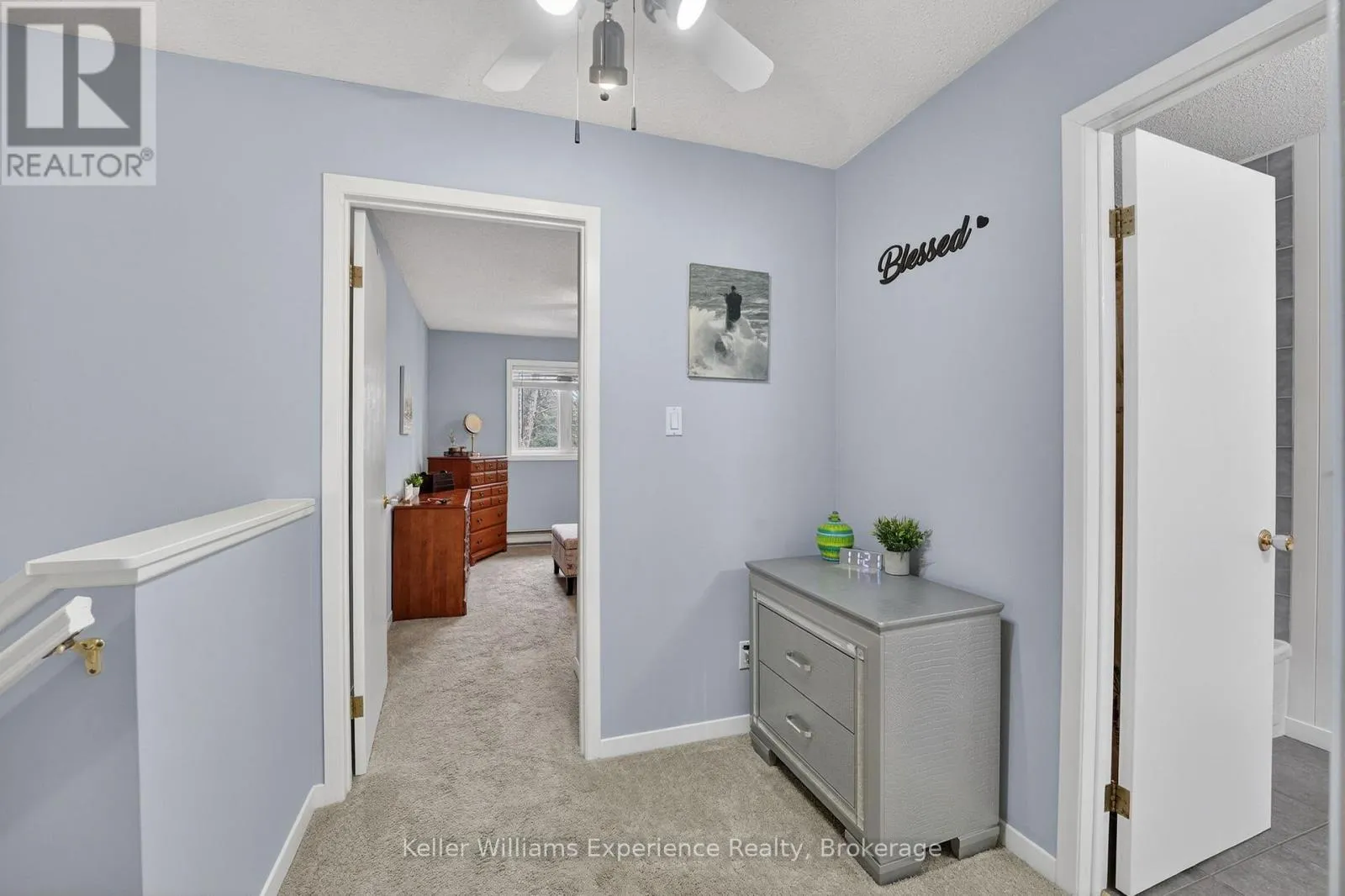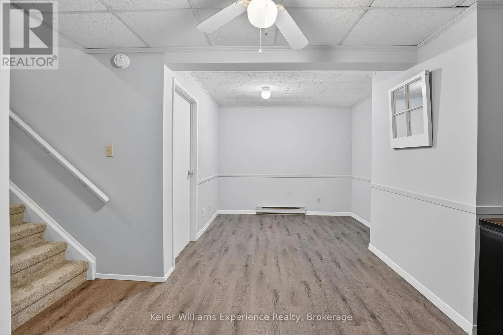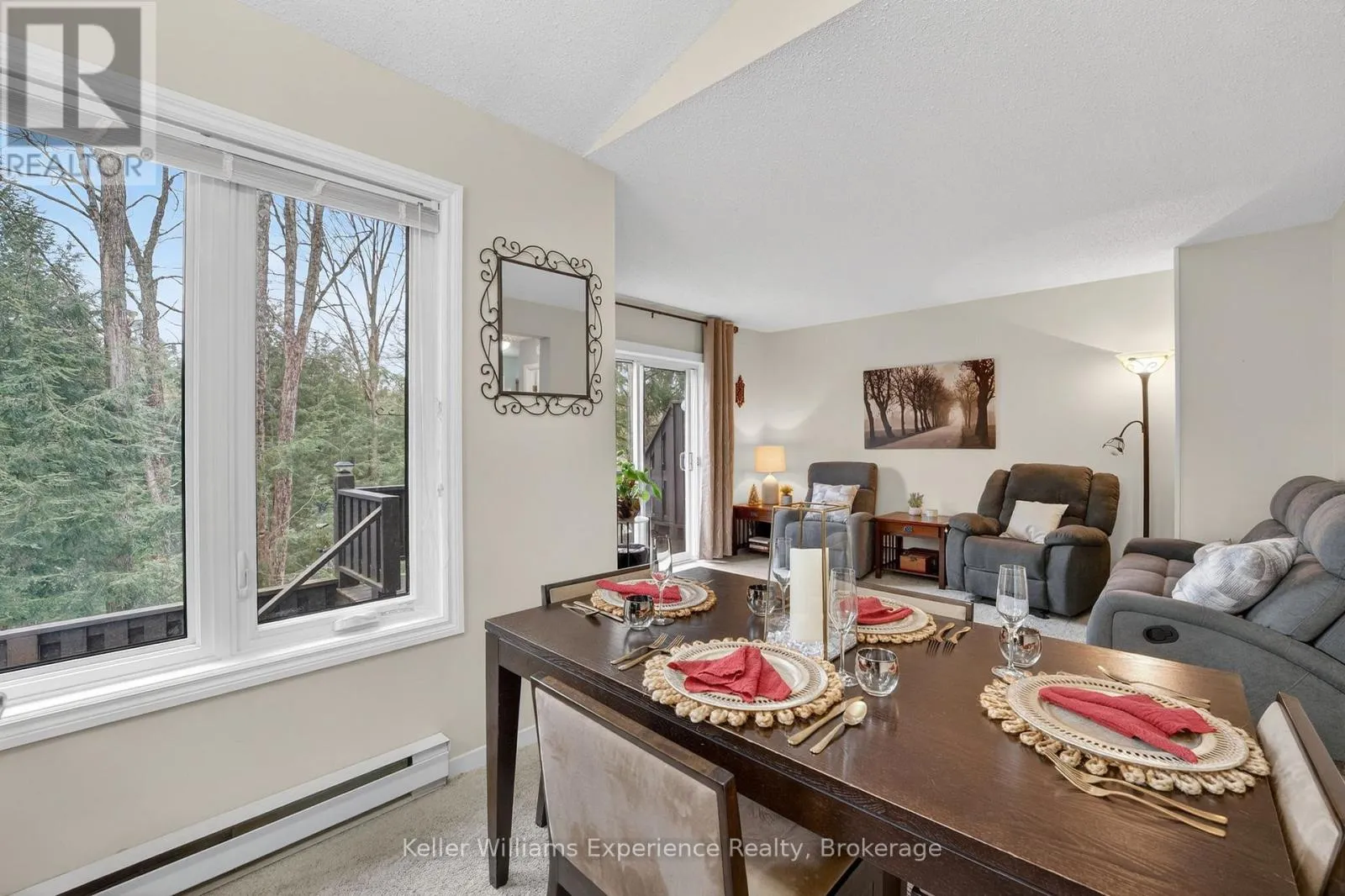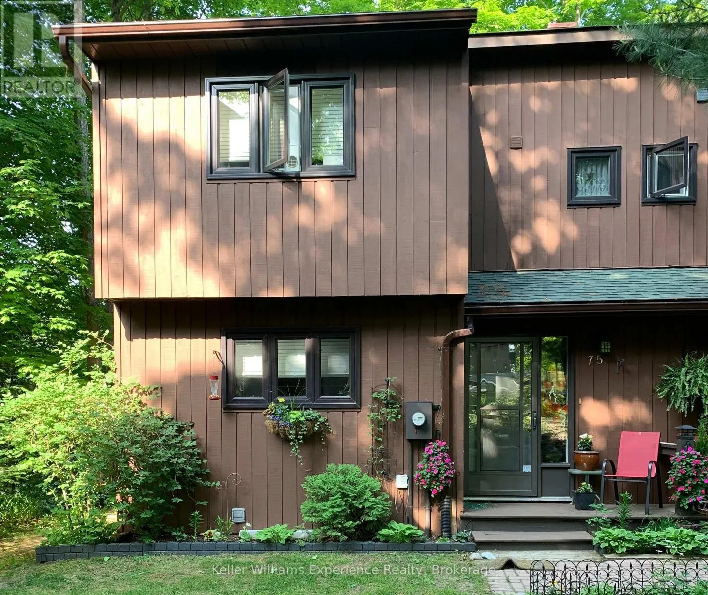 Cross Streets: Ecclestone/Southbank Dr. ** Directions: Ecclestone Drive to Southbank to #75. Riverfront Living, for a GREAT price!! End-unit Townhome near to Downtown Bracebridge. 2 bedrooms, 2 bathrooms on the Muskoka River. Experience the Muskoka lifestyle in this peaceful end-unit townhouse overlooking the river. With direct water access, a sandy shoreline, and a private dock exclusive to the condo building, your next adventure is just steps away. Relax on one of two decks or head inside to a bright, open kitchen featuring a breakfast bar. The upper level offers two bedrooms with double closets, while the finished basement provides extra living space and a second shower. Best of all, you're minutes from the shops and dining of downtown Bracebridge. Enjoy a worry-free lifestyle, as exterior maintenance is covered by the $425/month common element fees. (id:27476)